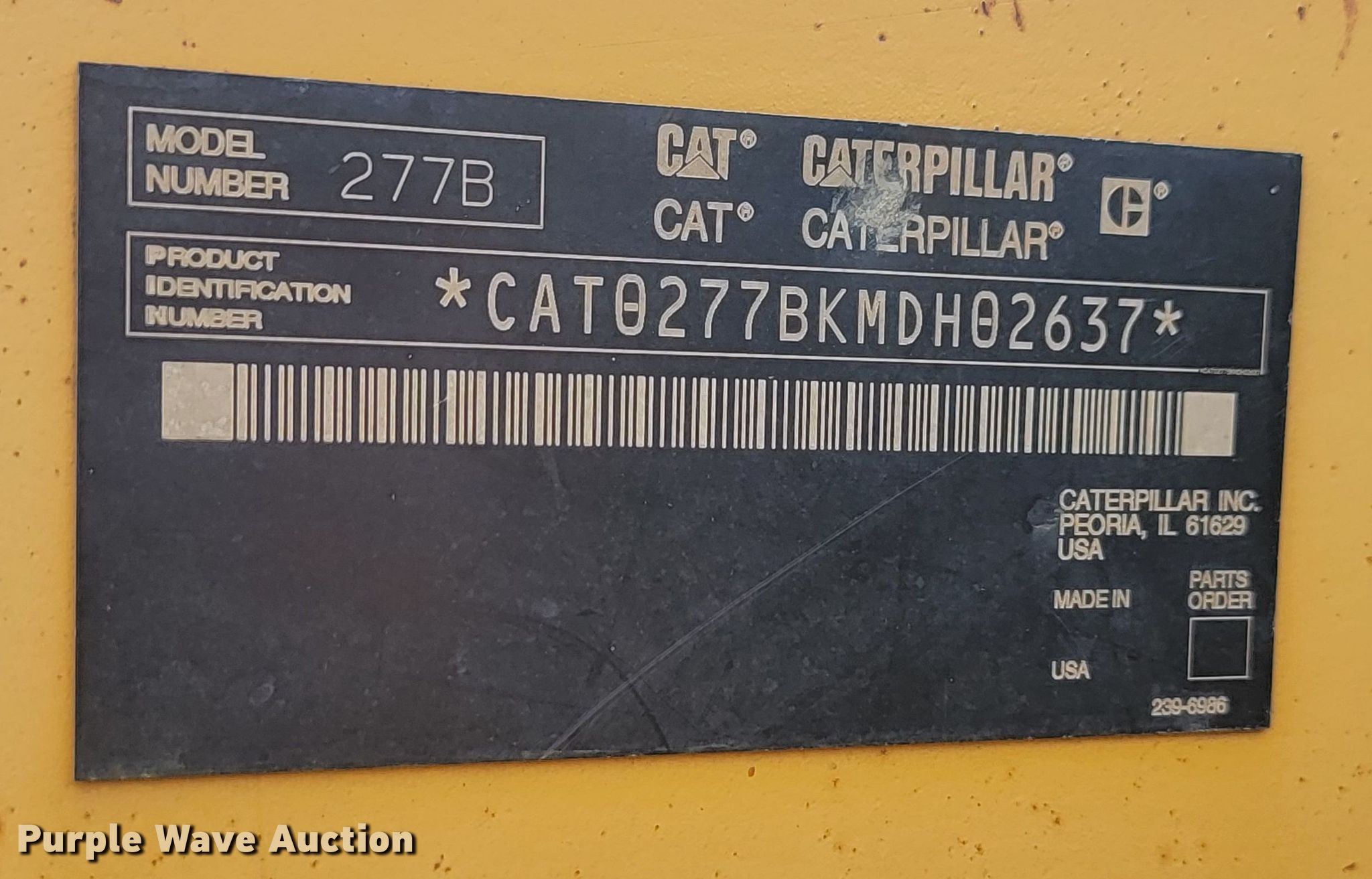 Purple Wave is selling a used Tracked Skid Steer Loader in South Dakota. This item is a 2005 Caterpillar 277B tracked skid steer loader with the following: Hours: Unknown, Serial: CAT0227BKMDH02637