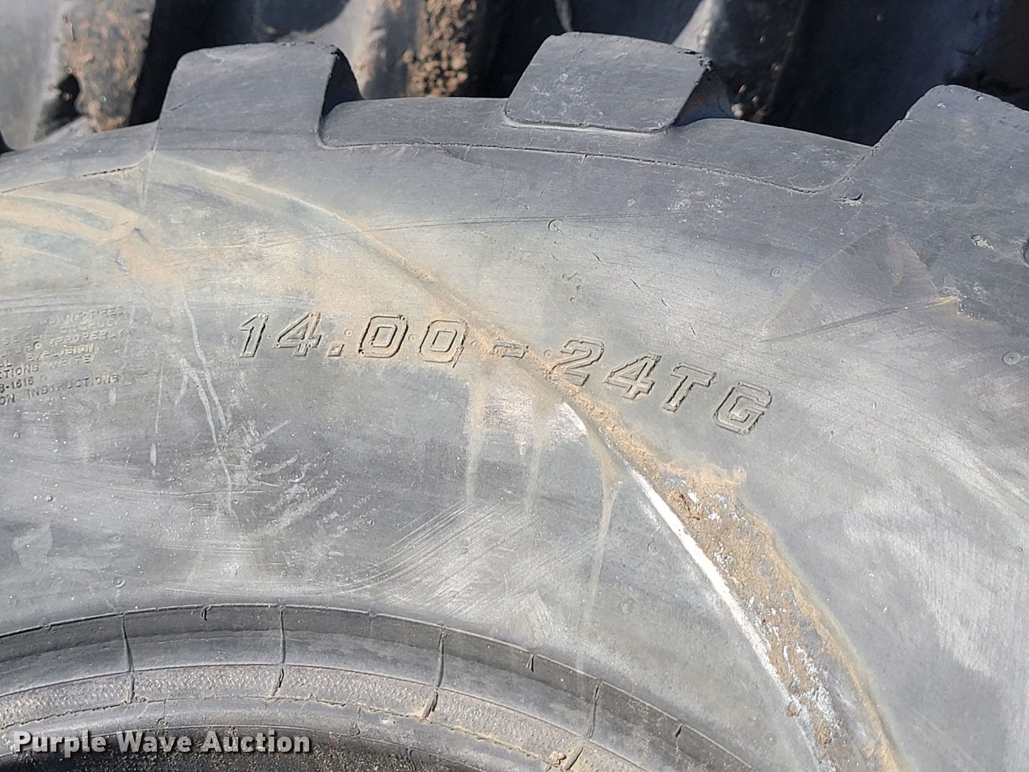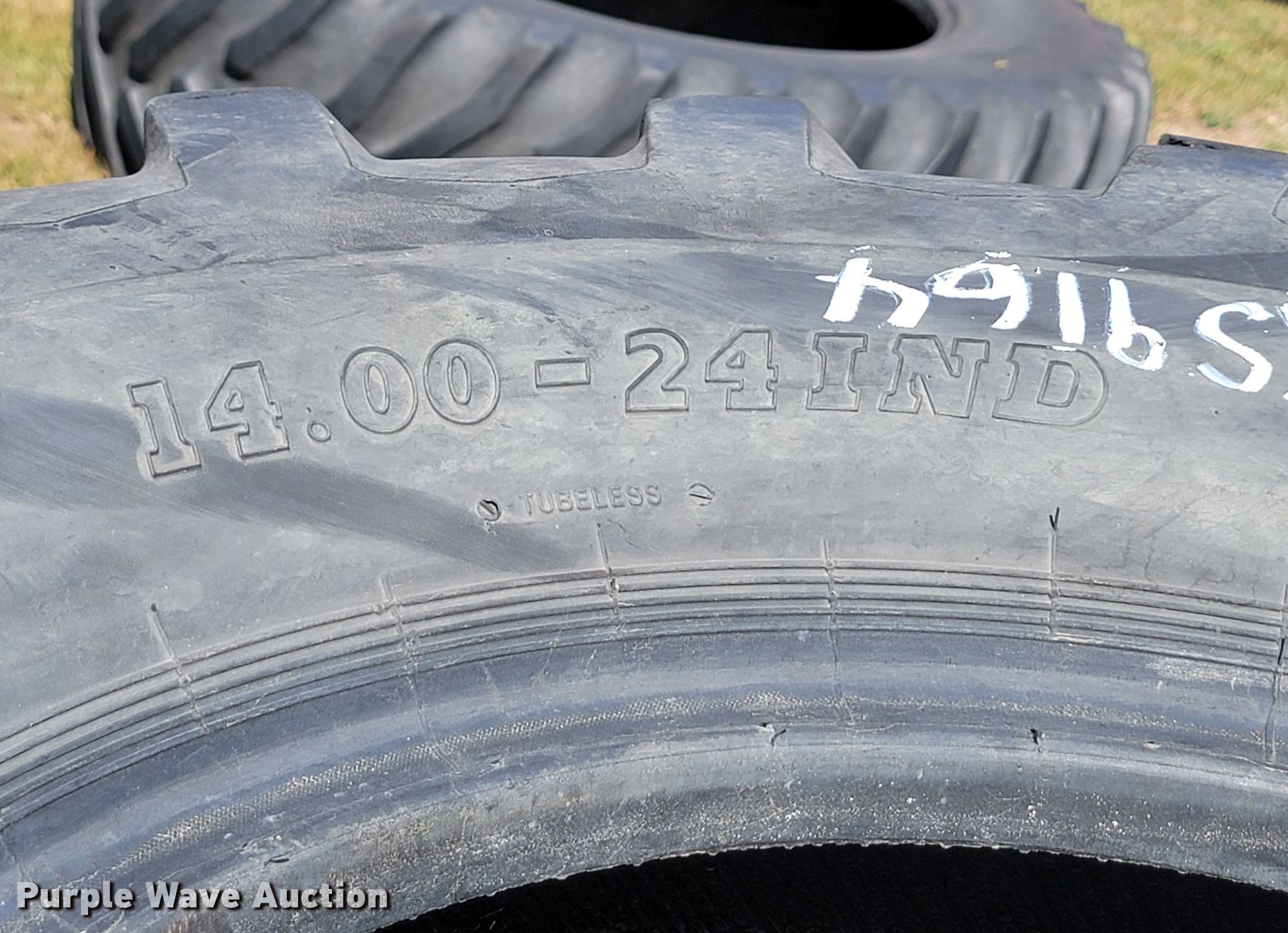 Purple Wave is selling a used Industrial Tires or Tracks in North Dakota. This item is a (8) 14.00-24 tires with the following: (8) 14.00-24 tires. Guthmiller and Son Dirtworks, Inc. 3401 Majestic St. Bismarck, ND 58504