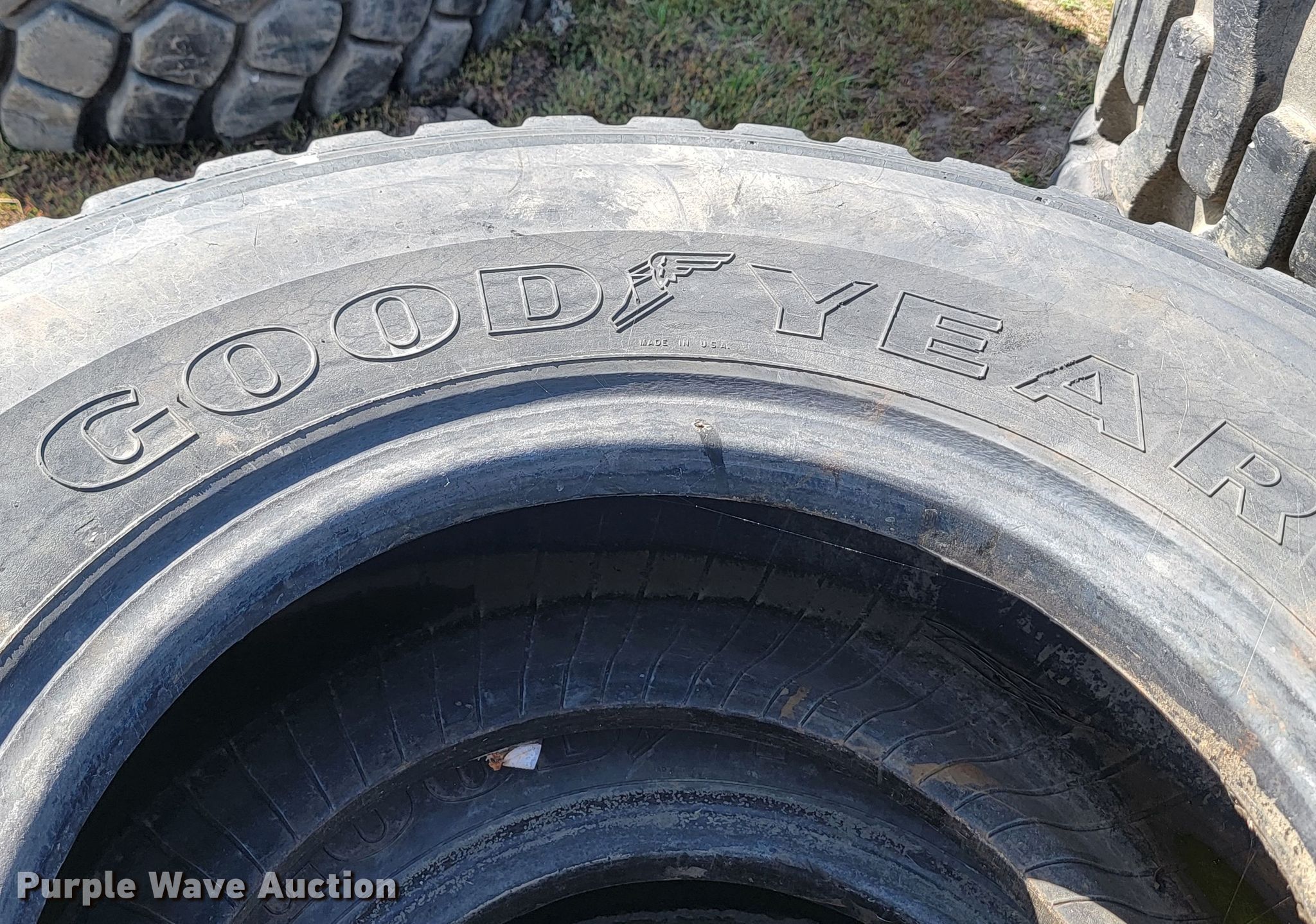 Purple Wave is selling a used Industrial Tires or Tracks in North Dakota. This item is a (2) Goodyear 17.5R25 tires with the following: (2) Goodyear 17.5R25 tires. Guthmiller and Son Dirtworks, Inc. 3401 Majestic St. Bismarck, ND 58504