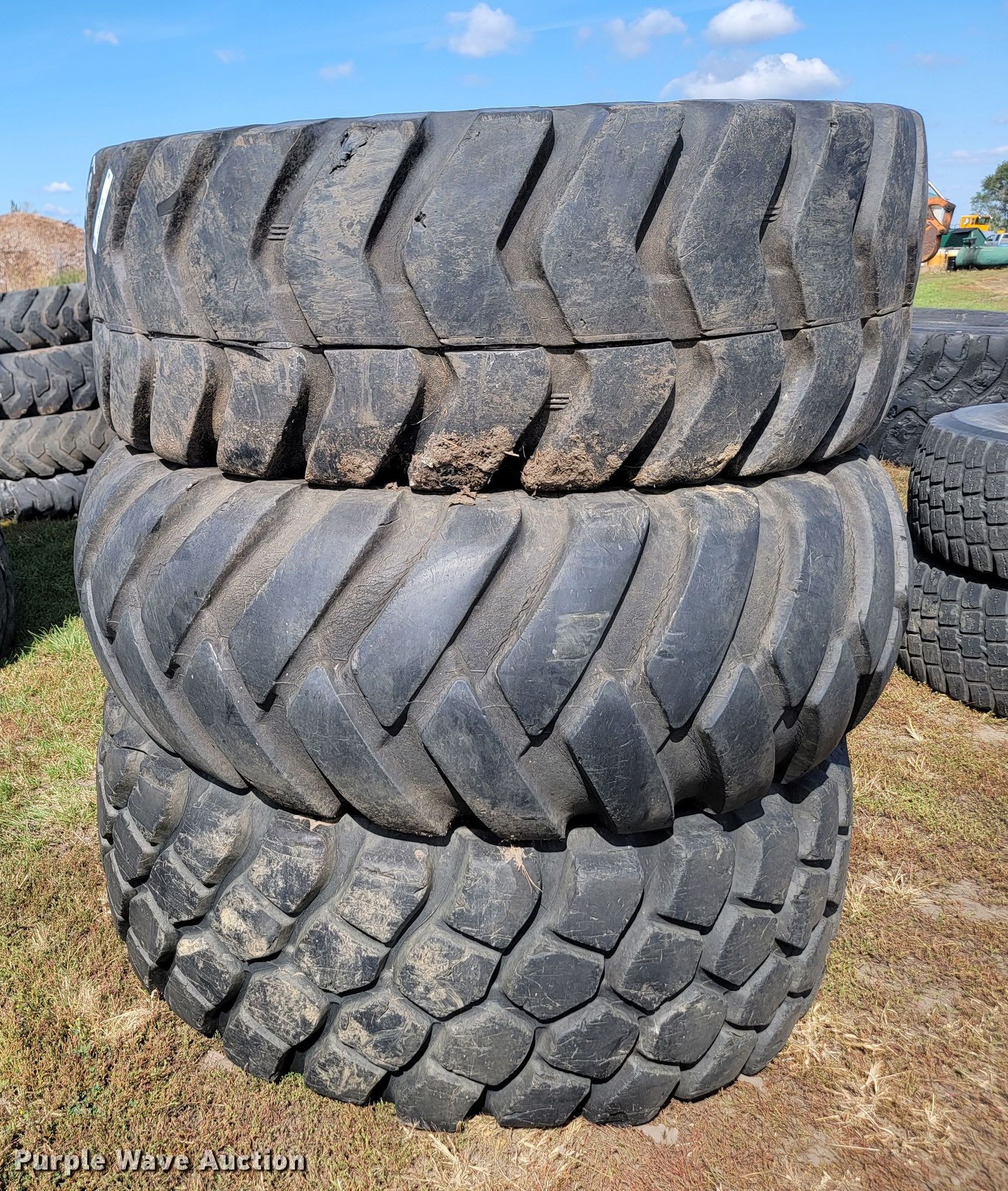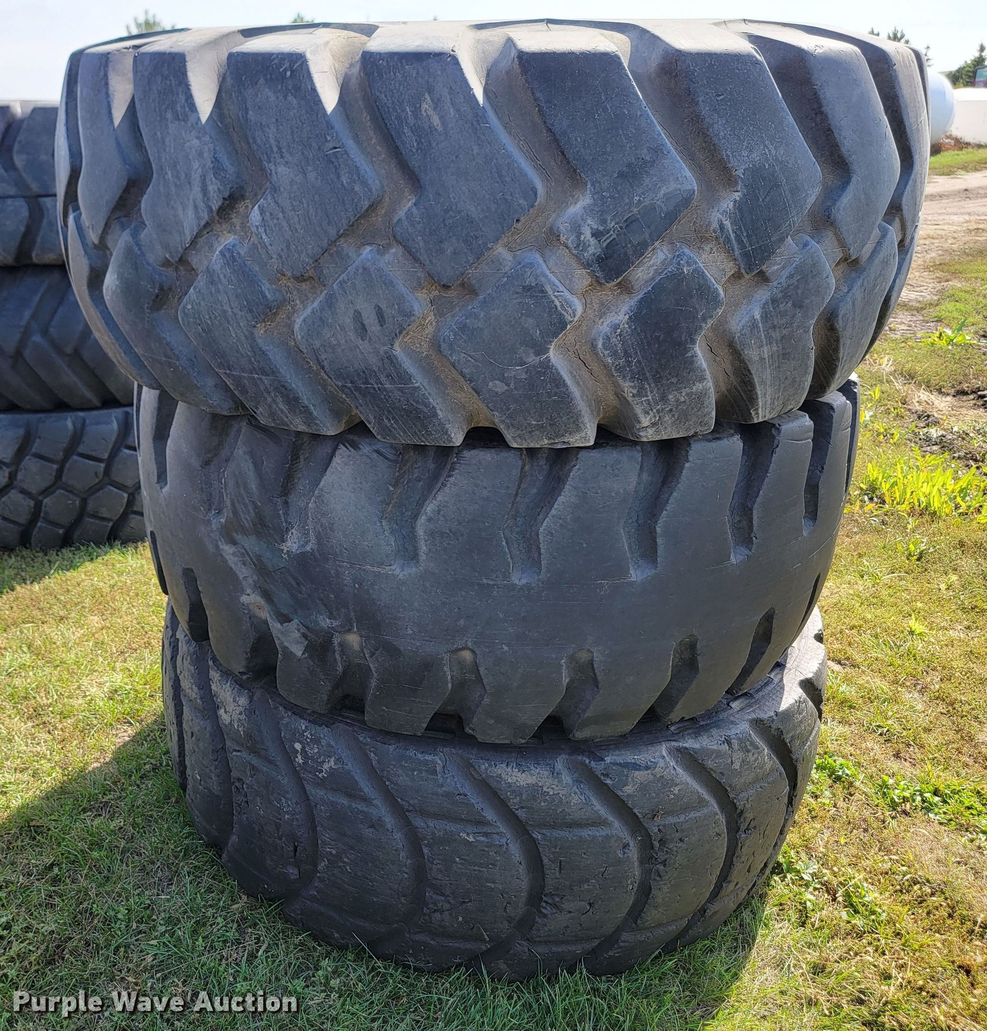 Purple Wave is selling a used Industrial Tires or Tracks in North Dakota. This item is a (3) 23.5-25 tires with the following: (3) 23.5-25 tires. Guthmiller and Son Dirtworks, Inc. 3401 Majestic St. Bismarck, ND 58504