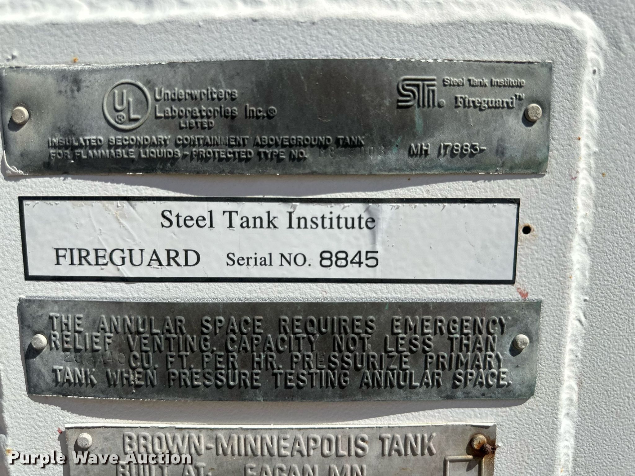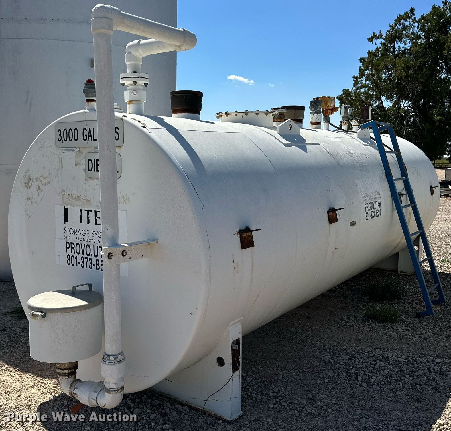Purple Wave is selling a used Fuel and Lube in Texas. This item is a Fuel tank with the following: 18' 6" L x 6' diameter, Capacity: 3,000 gallons, Franklin Electric pump, Double walled