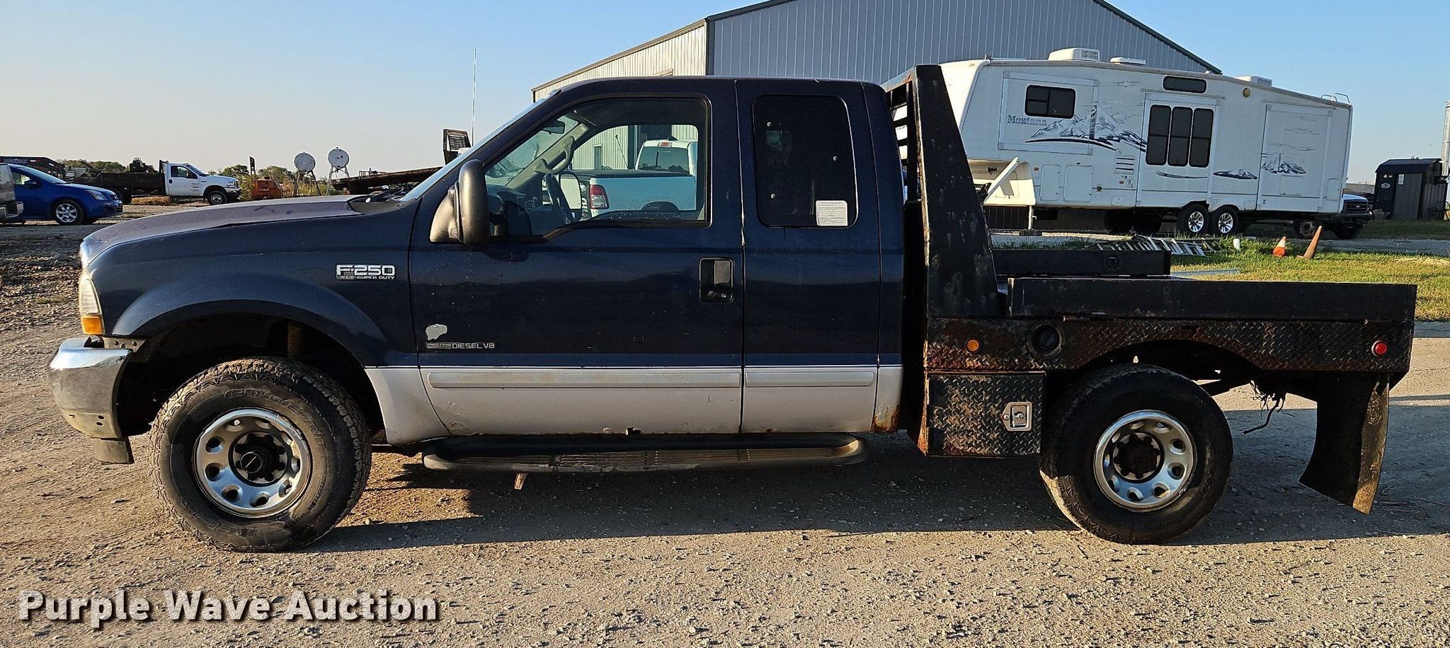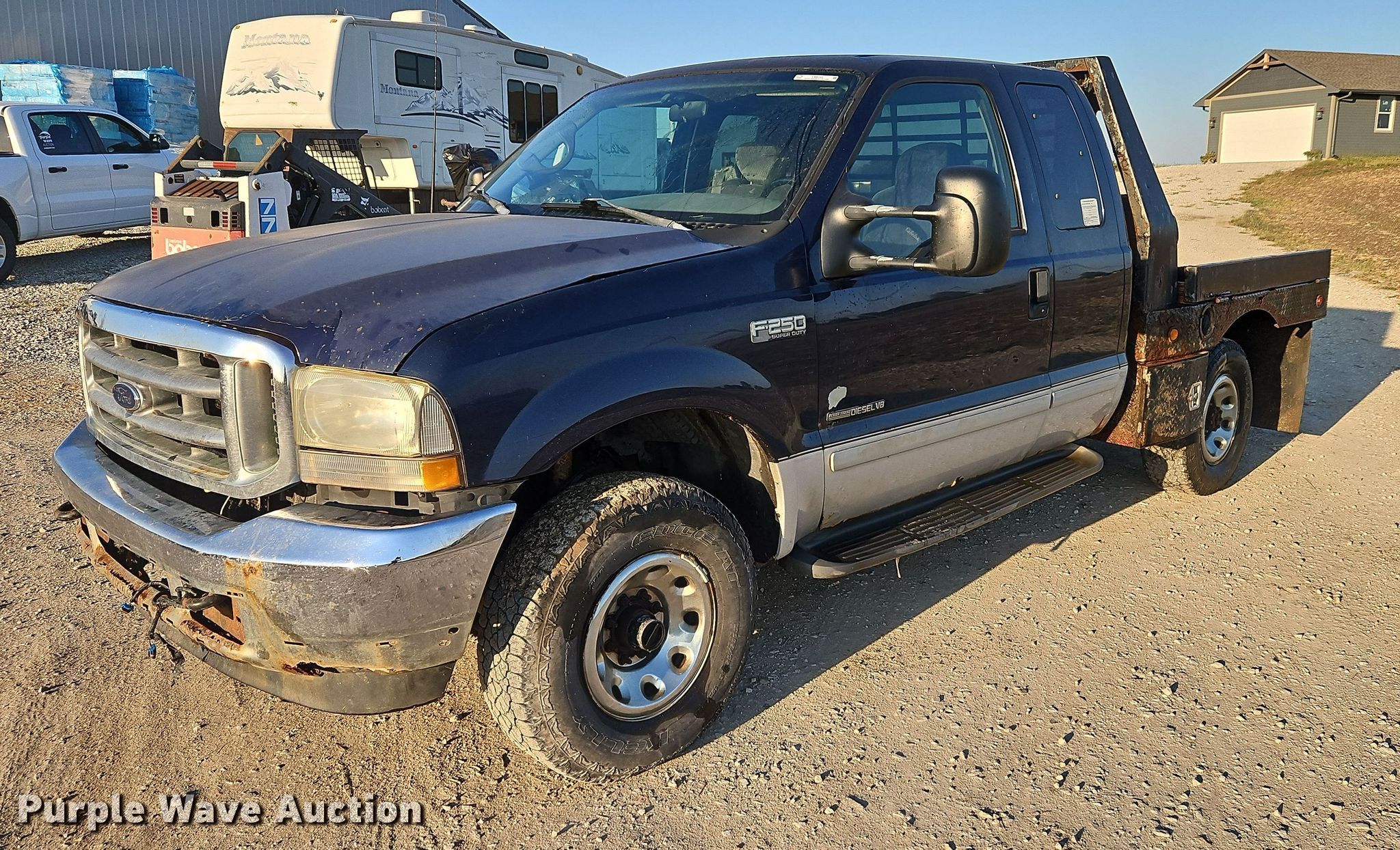 2002 Ford F250 Super Duty SuperCab flatbed pickup truck