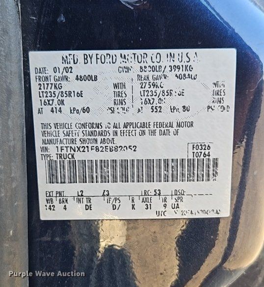 Purple Wave is selling a used 3/4 or 1 Ton Pickup or Van in Kansas. This item is a 2002 Ford F250 Super Duty SuperCab flatbed pickup truck with the following: Miles: 328,997 on odometer, VIN: 1FTNX21F82EB82052
