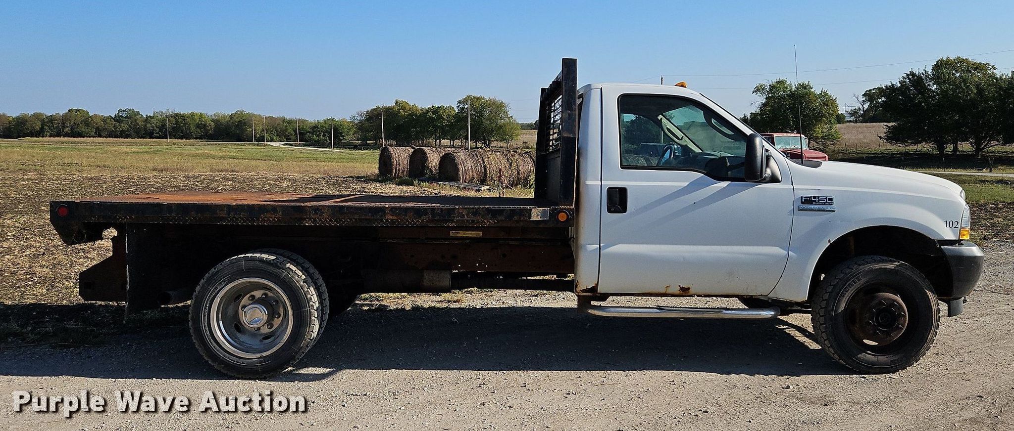 Purple Wave is selling a used Flat Bed Truck in Kansas. This item is a 2003 Ford F450 Super Duty dump flatbed truck with the following: Miles: 146,448 on odometer, VIN: 1FDXF47P33ED01758