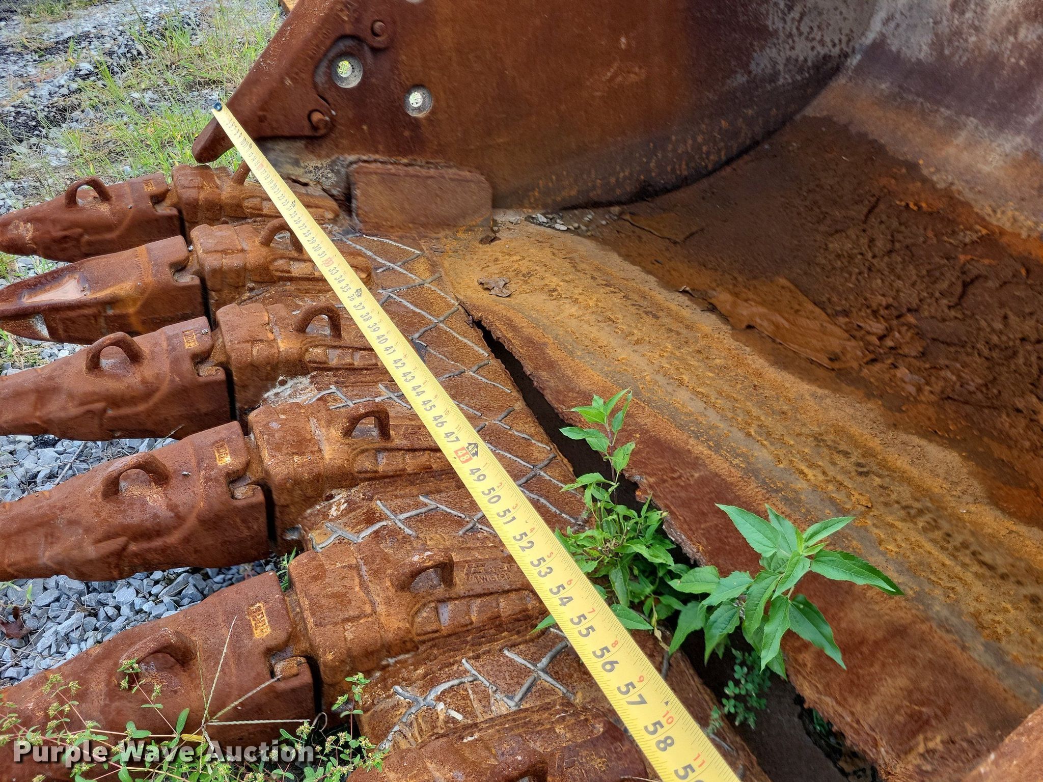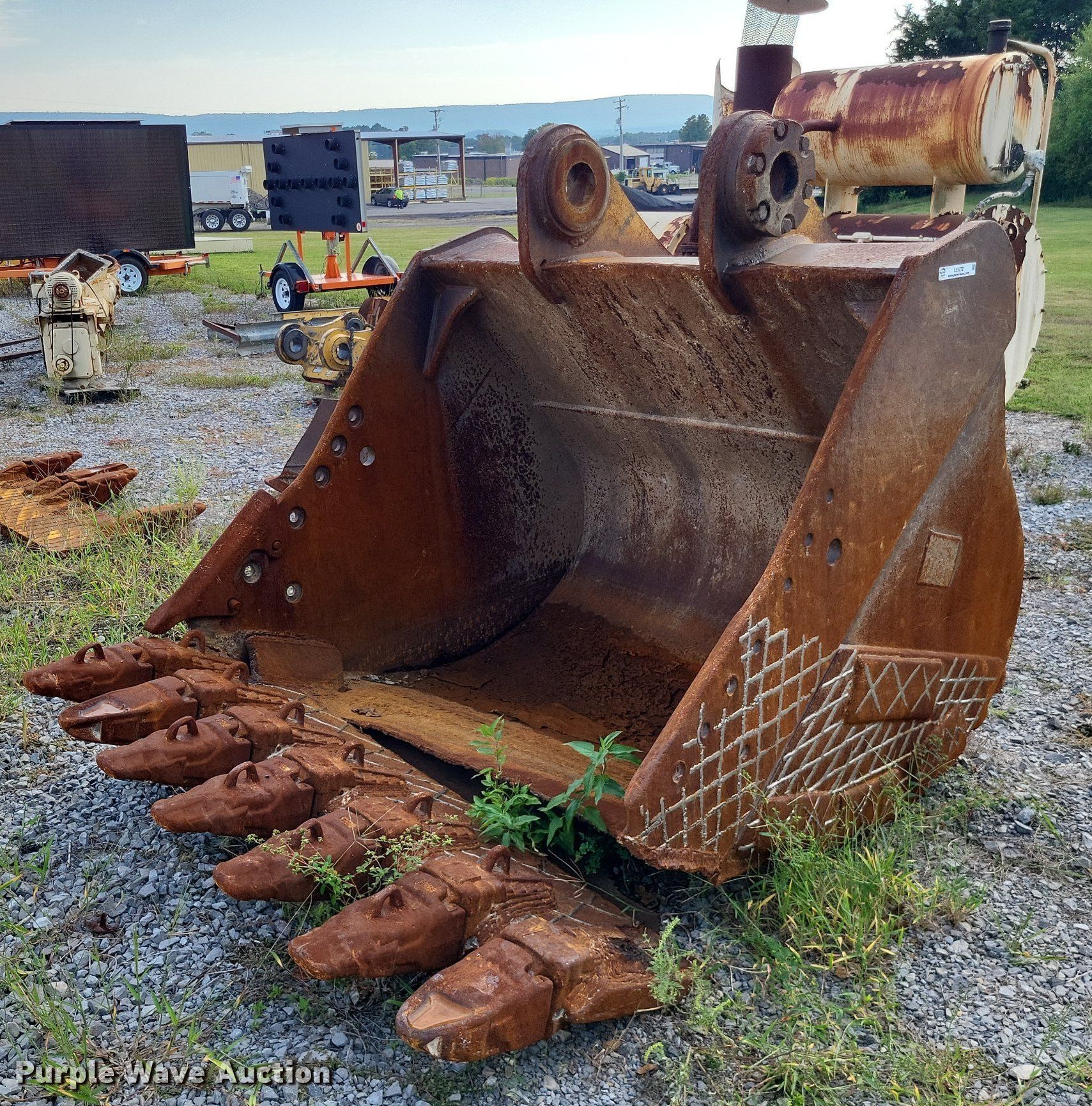 Purple Wave is selling a used Excavator Attach. in Arkansas. This item is a (2) excavator buckets with the following: Width: 61", Teeth: 7, Cutting edge issue, partly torn off, Width: 71", Cutting edge missing