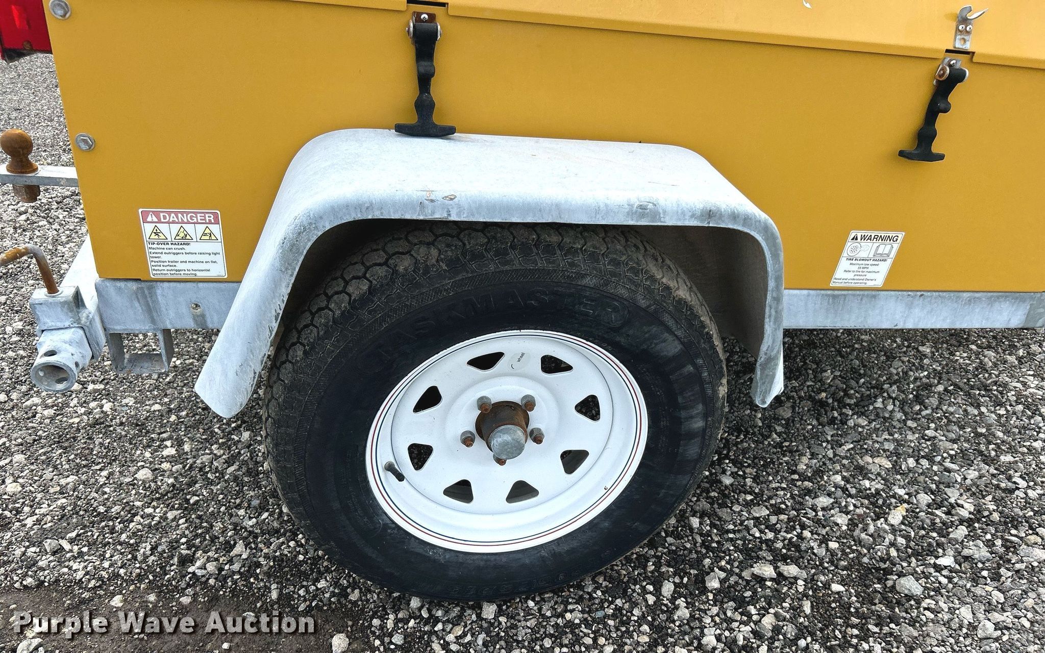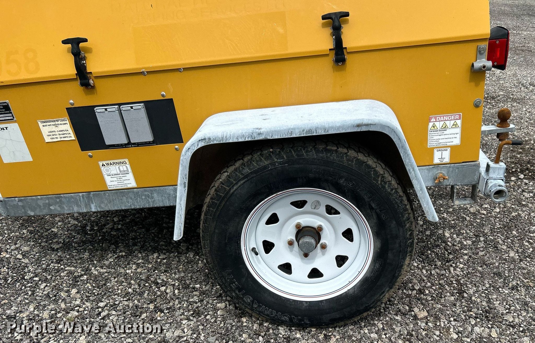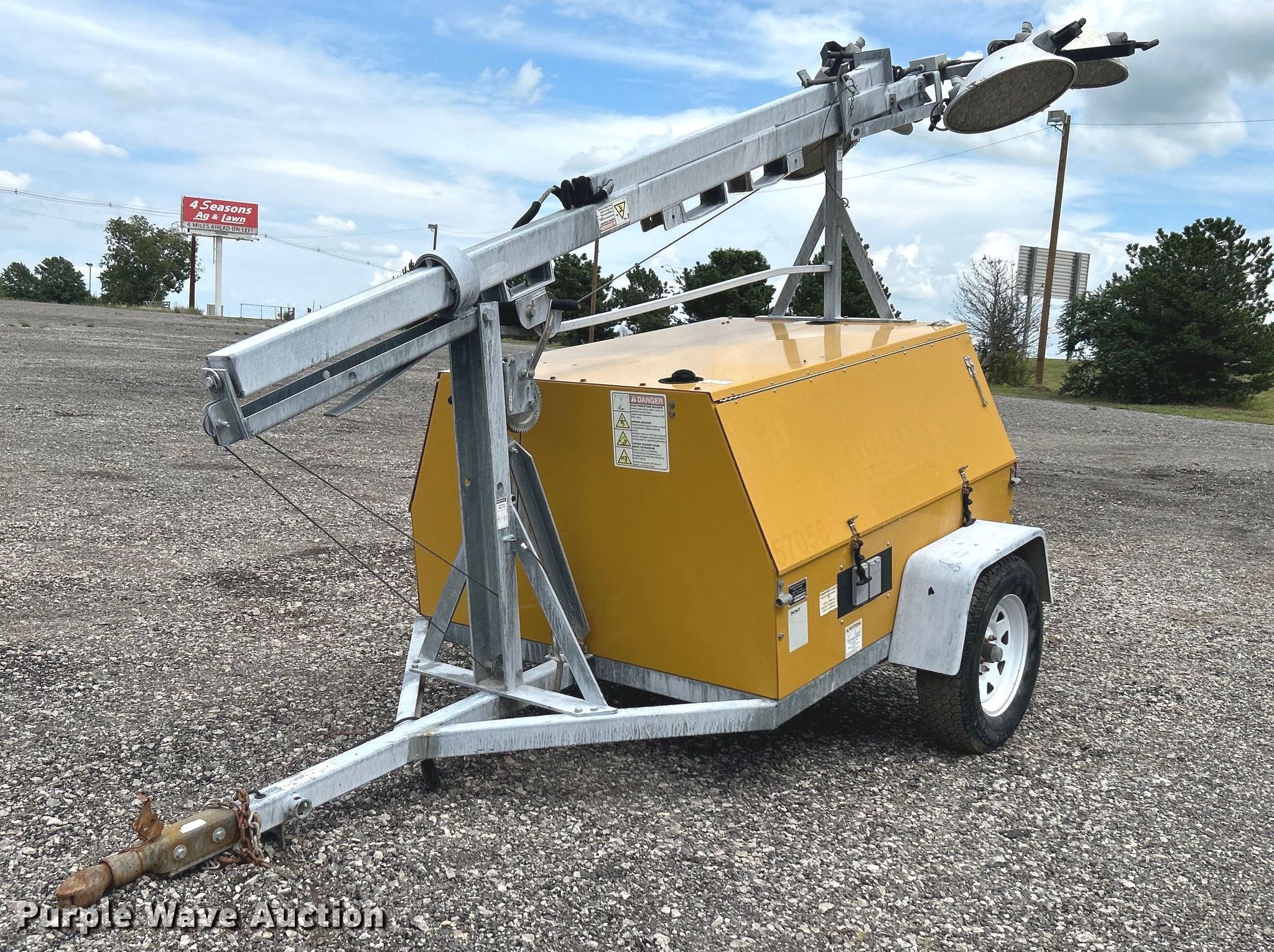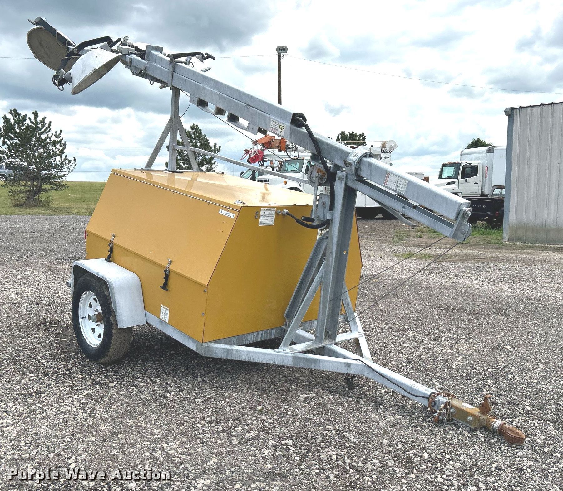 Warren Power Systems WCW84MH light plant. Hours: 8,197 on meter, Serial: C13-01-06641. Engine Caterpillar C1.1, Displacement: 1.1L, Cylinders: 3, Fuel type: Diesel. Features Generator Pancake 331CSA3018, Phase: Single, Electric start, Light plant Bulbs: 4, Tower height: 20', Hoist: Manual, Stabilizers. Trailer Ball hitch size: 2 5/16", Suspension: Spring, Brakes: Electric, Axles: Single, Tire size: ST205/75D15. Transfer of ownership documentation will be a bill of sale. 15107 North 137th East Avenue. Collinsville, OK 74021