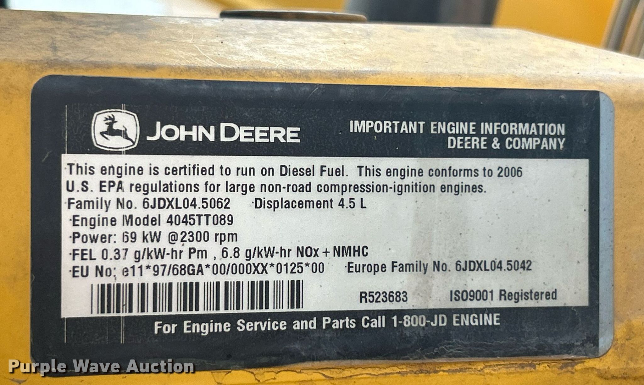 2006 John Deere 310SG backhoe. Hours: Unknown, Serial: T0310SG959093. Engine John Deere 4045TT089, Displacement: 4.5L, Cylinders: 4, Fuel type: Diesel, kW: 69. Transmission Powershift, 4F - 4R. Chassis Four wheel drive, Differential lock. Operators station OROPS, Backhoe controls: Wobble stick / two stick. Features Loader Bucket John Deere, Capacity: 1.3 cu.yd., Width: 90", Cutting edge: Bolt-on, Backhoe Extendable stick, Quick coupler: Manual, Bucket Width: 16", Teeth: 4.. Tires Front: 12.5/70-18NHS, Rear: 19.5L-24. Notes Non-operational hour meter. 15107 North 137th East Avenue. Collinsville, OK 74021