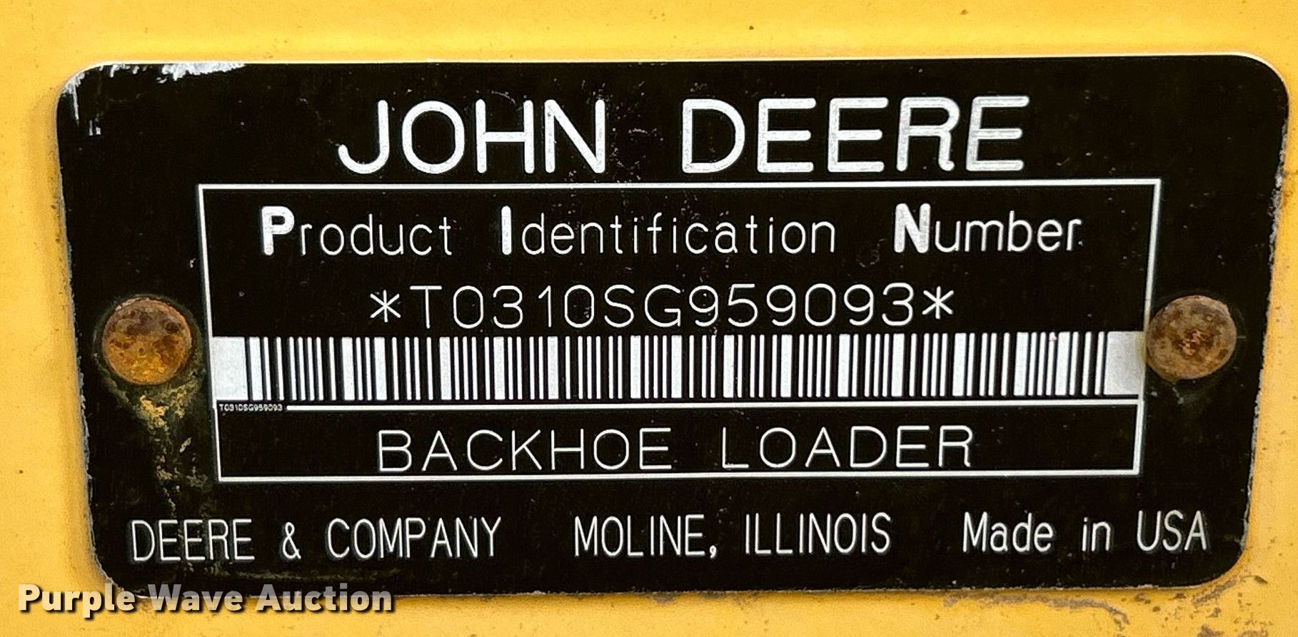 Purple Wave is selling a used Tractor Loader Backhoe in Oklahoma. This item is a 2006 John Deere 310SG backhoe with the following: Hours: Unknown, Serial: T0310SG959093