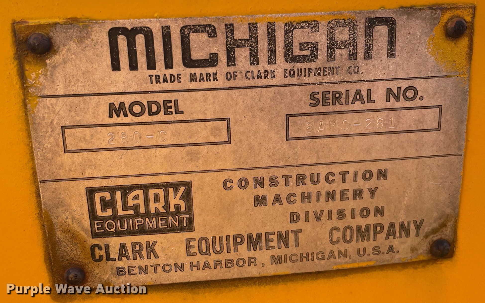 Purple Wave is selling a used Wheel Loader in New York. This item is a 1973 Michigan 280C wheel loader with the following: Hours: 472 on meter, Serial: 8AMC261, Unit #: M158