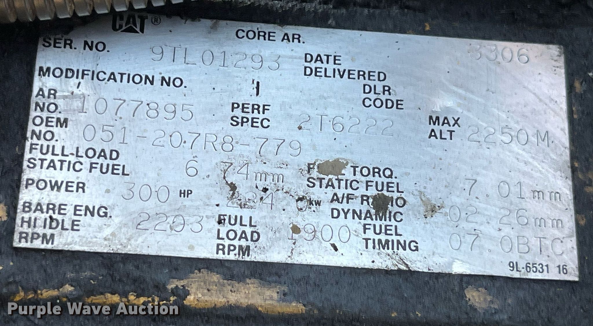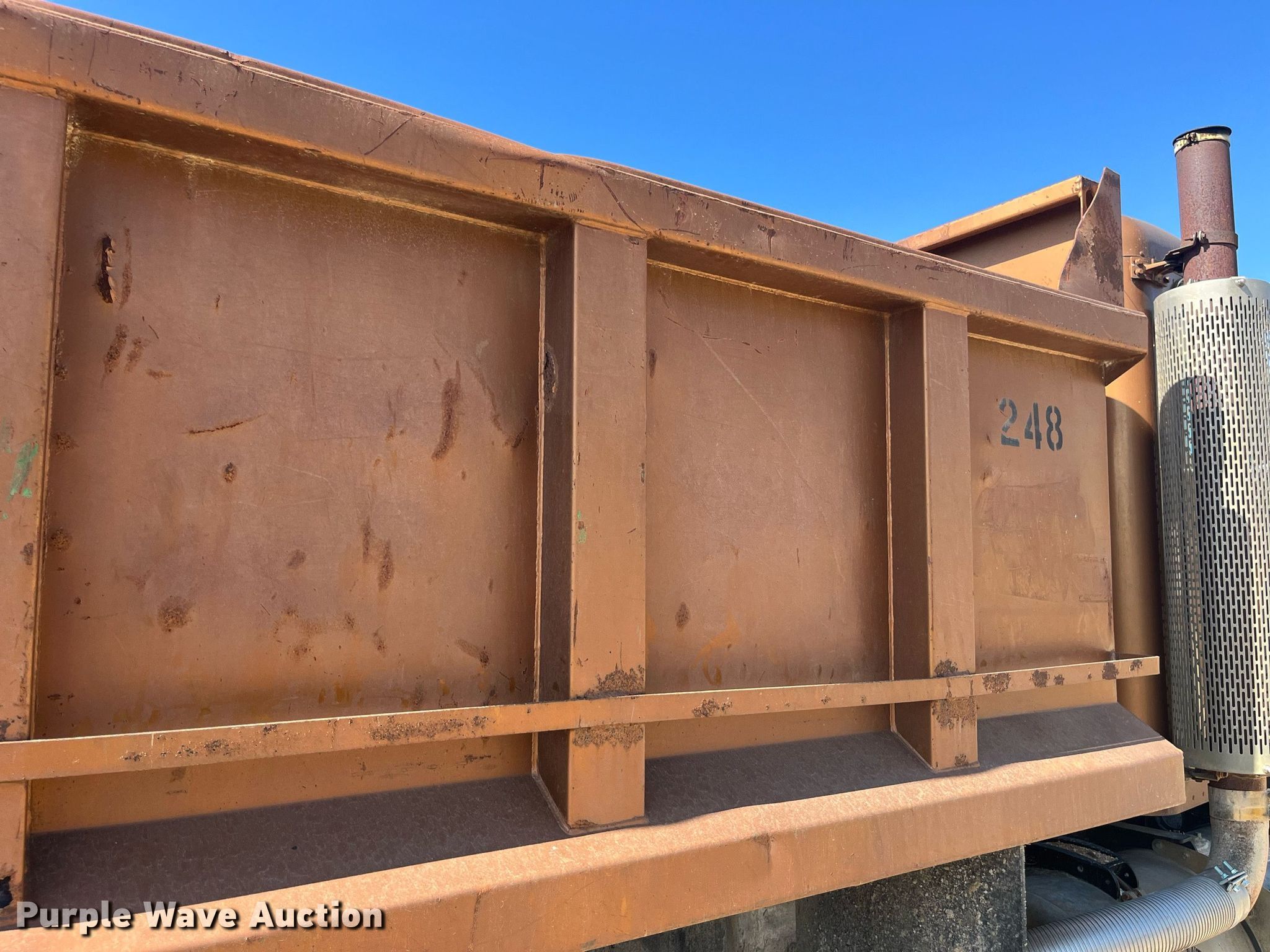 1994 Peterbilt 378 dump truck. Miles: 421,080 on odometer, VIN: 1XPFLA9X7RD360040. Engine Caterpillar, Serial: 9TL01293, Displacement: 10.5L, Cylinders: 6, Fuel type: Diesel. Transmission Eaton Fuller, Manual, Speed: 13. Chassis Axles: Triple, Pusher axle, Differential lock: Inter-axle, Suspension: Spring over walking beam, Brakes: Air, PTO, GVWR: 52,860 lbs FAWR: 12,860 lbs, IAWR: 20,000 lbs, RAWR: 20,000 lbs. Interior AC, Heat. Features Dump bed Heil HPT12YD15, 14' 11" L x 8' W, Side height: 42", Bed type: Steel, Ram: Single , End gate: Manual. Tires Size: 11/R24.5, Lift axle: 11/R22.5. Notes Rear drive tires and wheels will be replaced prior to auction, Engine issues, blown, Non-operational unit. Missouri title. Kent Templeton Farms. 1650 SE Hwy 116. Polo, MO 64671