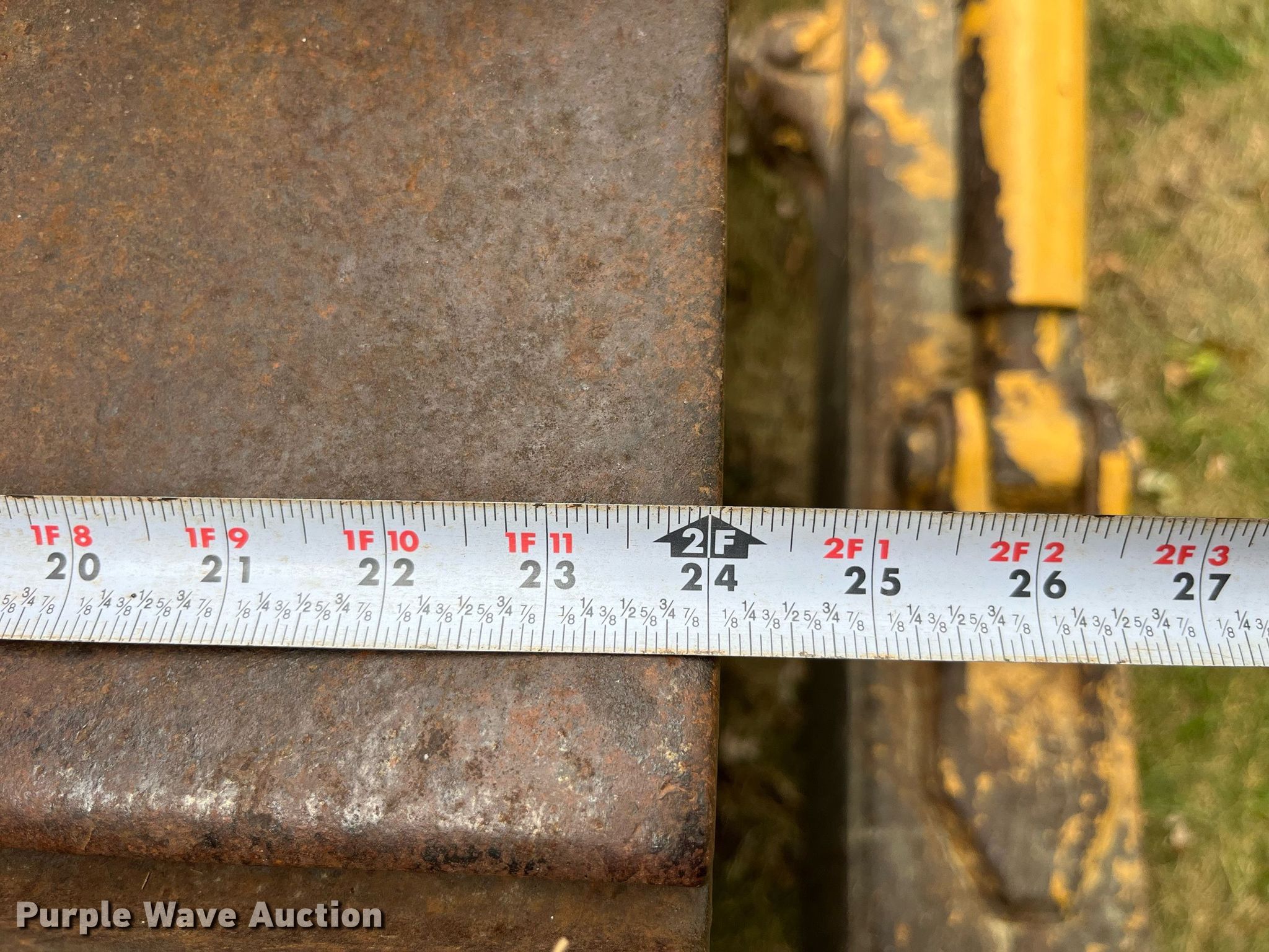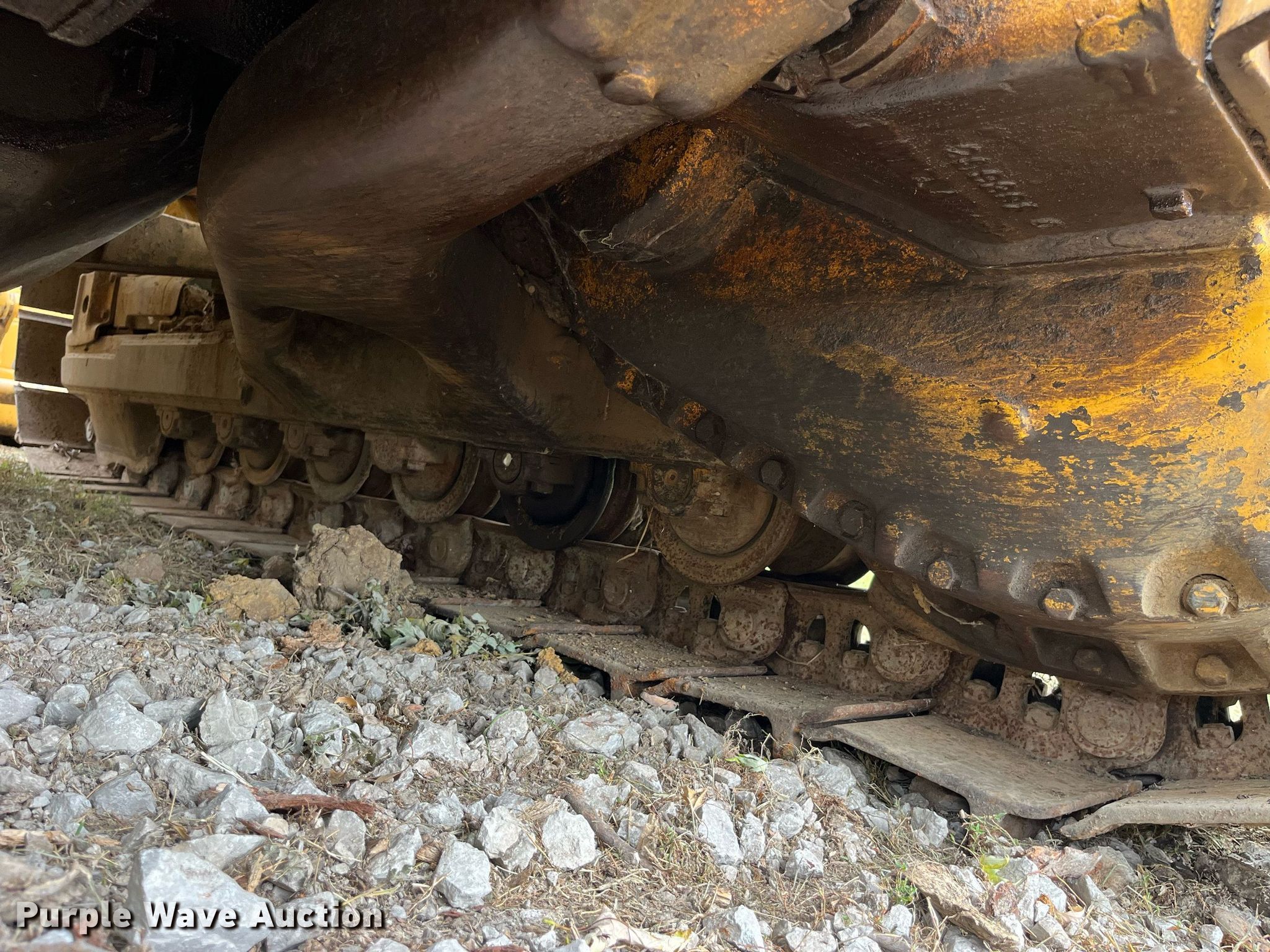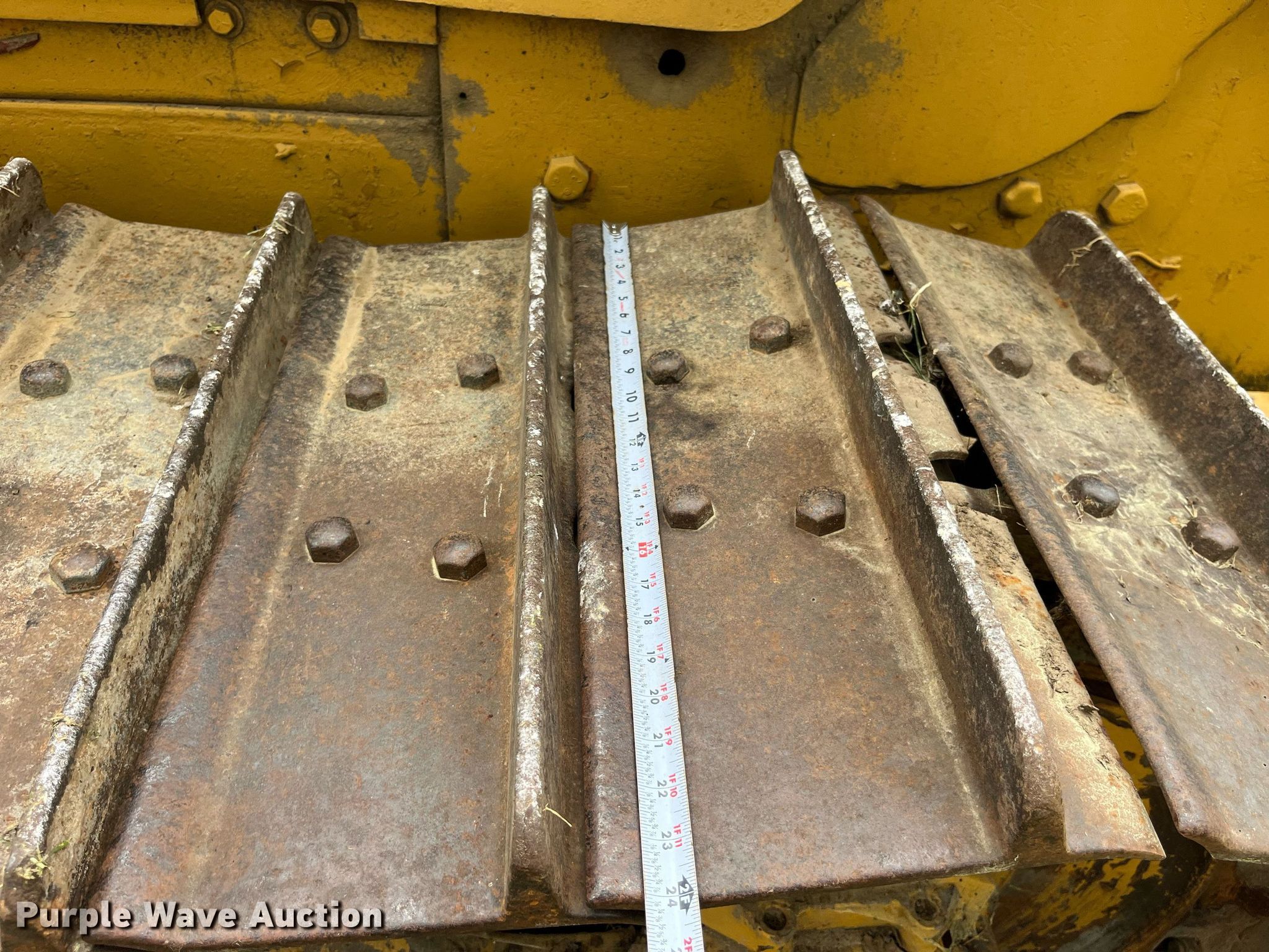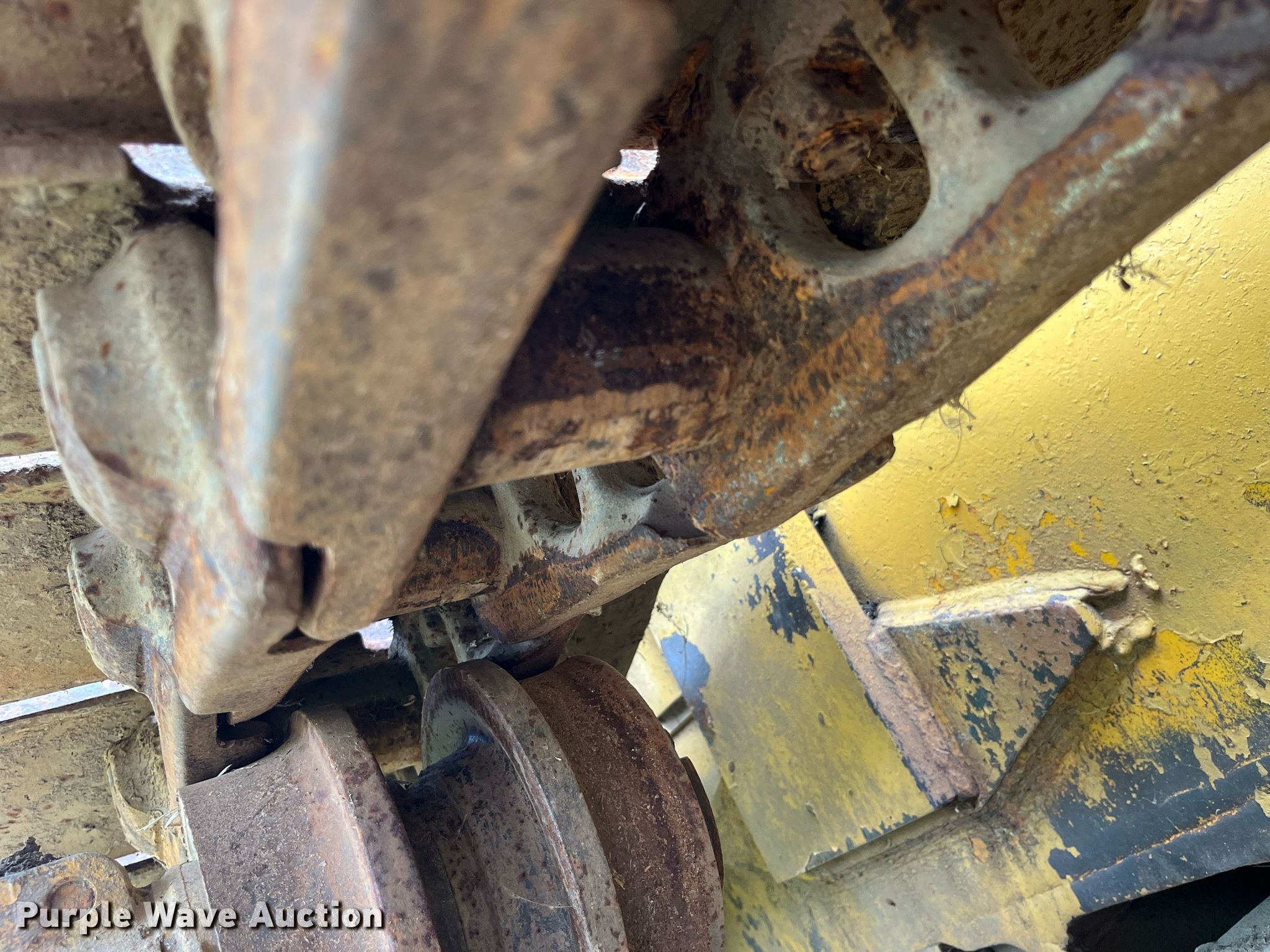 1966 Caterpillar D7E dozer. Serial: 48A7004. Engine Caterpillar, Displacement: 567 C.I.D., Cylinders: 4, Fuel type: Diesel. Transmission Powershift, 3F - 3R. Operators station Canopy, Steering: Clutch brake. Features Screen guards, Sweeps, Rear drawbar, Dozer blade Type: Straight, Single-tilt, Width: 11' 8" W. Tracks Width: 24", Grouser pads: Single, Bottom rollers: 6. Notes Non-operational track tensioner. Kent Templeton Farms. Polo, MO 64671