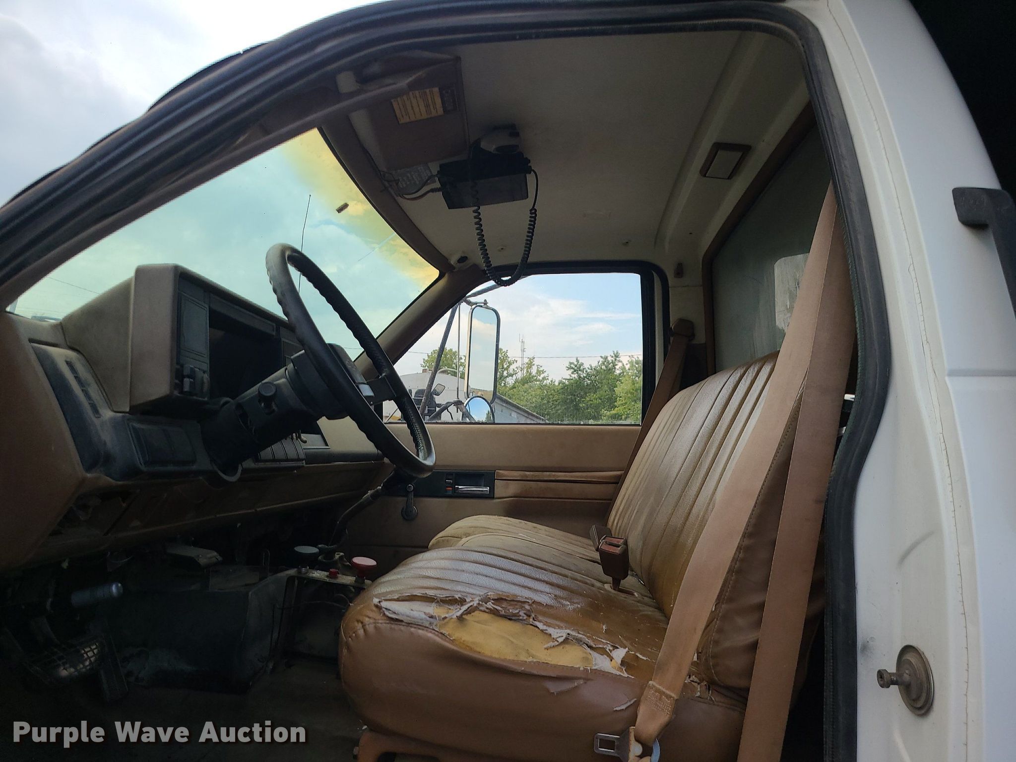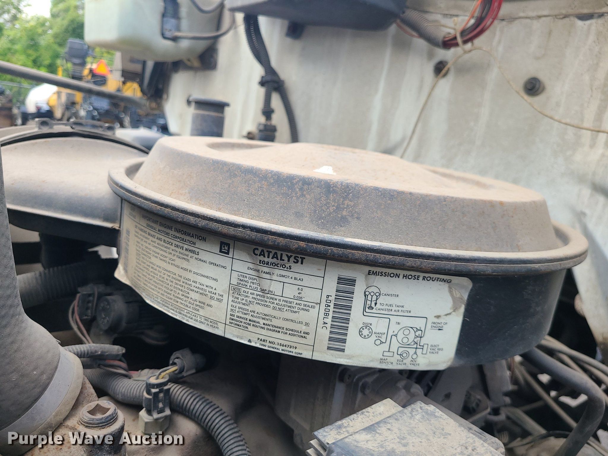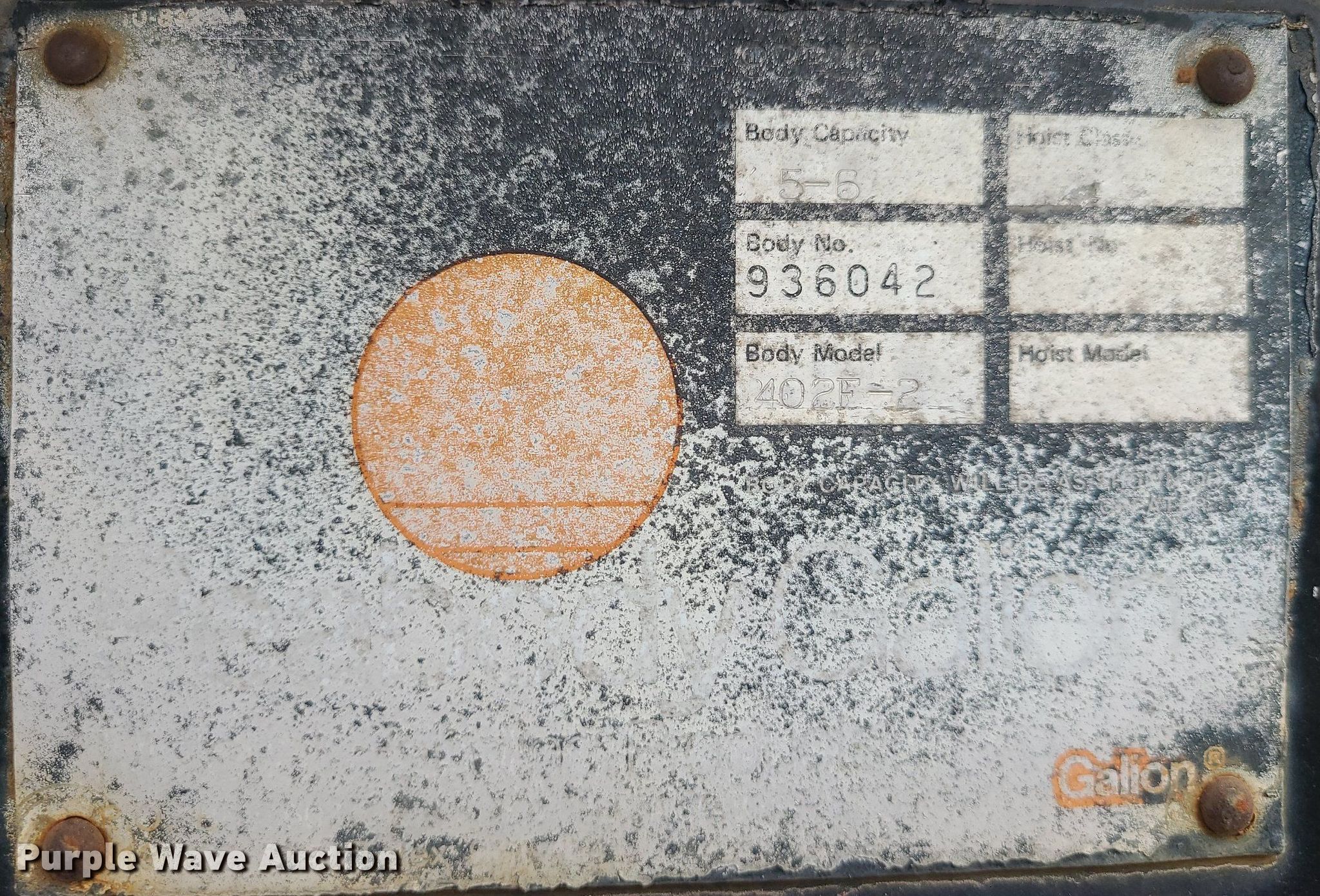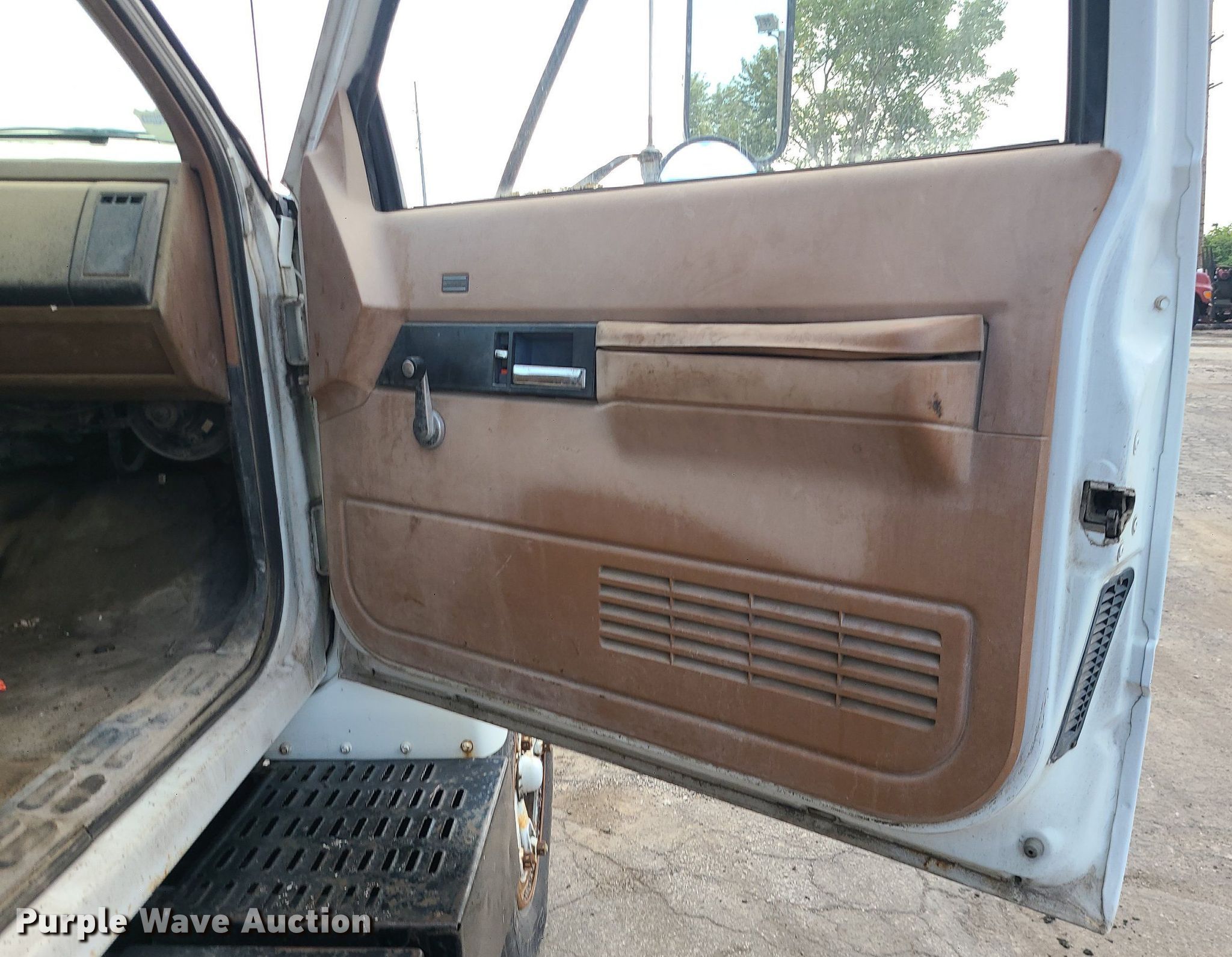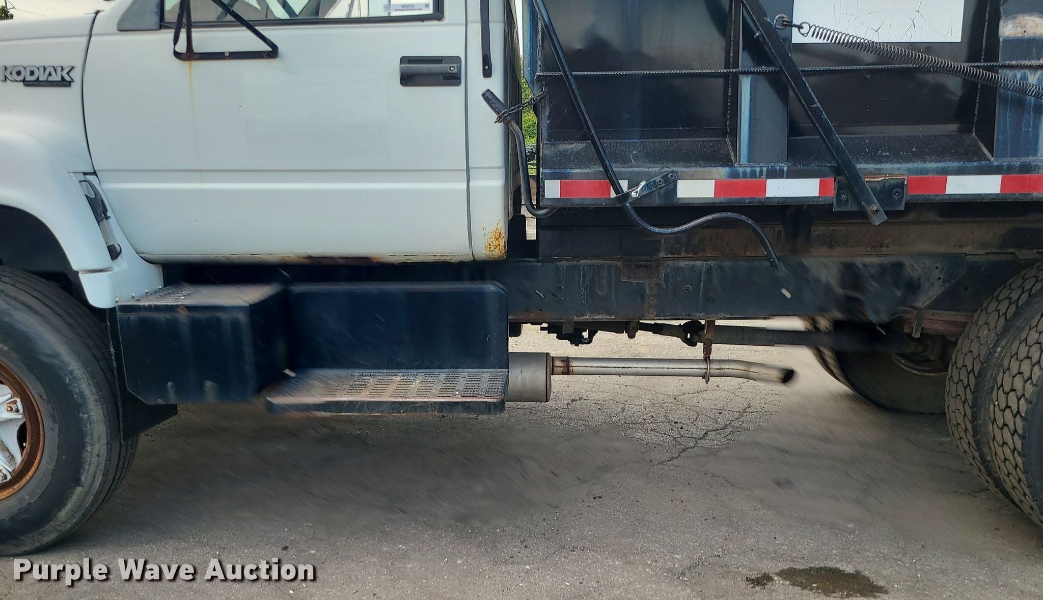 1990 Chevrolet 6500 Kodiak dump truck. Miles: 142,245 on odometer, Miles or hours may vary, unit still in use, VIN: 1GBL7H1P1LJ200178, Unit #: 301. Engine GM, Displacement: 6.0L, Cylinders: 8, Fuel type: Gas. Transmission Manual, Speed: 5, plus 2. Chassis Axles: Single, Suspension: Spring, Brakes: Hydraulic. Interior Heat. Features Dump bed 10' L x 96" W, Side height: 26", Side board height: 10", Bed type: Steel, Roll tarp, Ram: Single , End gate: Manual. Tires Size: 11R22.5. Notes Dash warning indicator: Check engine. Missouri title. Title distribution may be delayed up to 14 days from verification of funds. Seal-O-Matic Paving. 2601 Northwest Tullison Road. Riverside, MO 64150