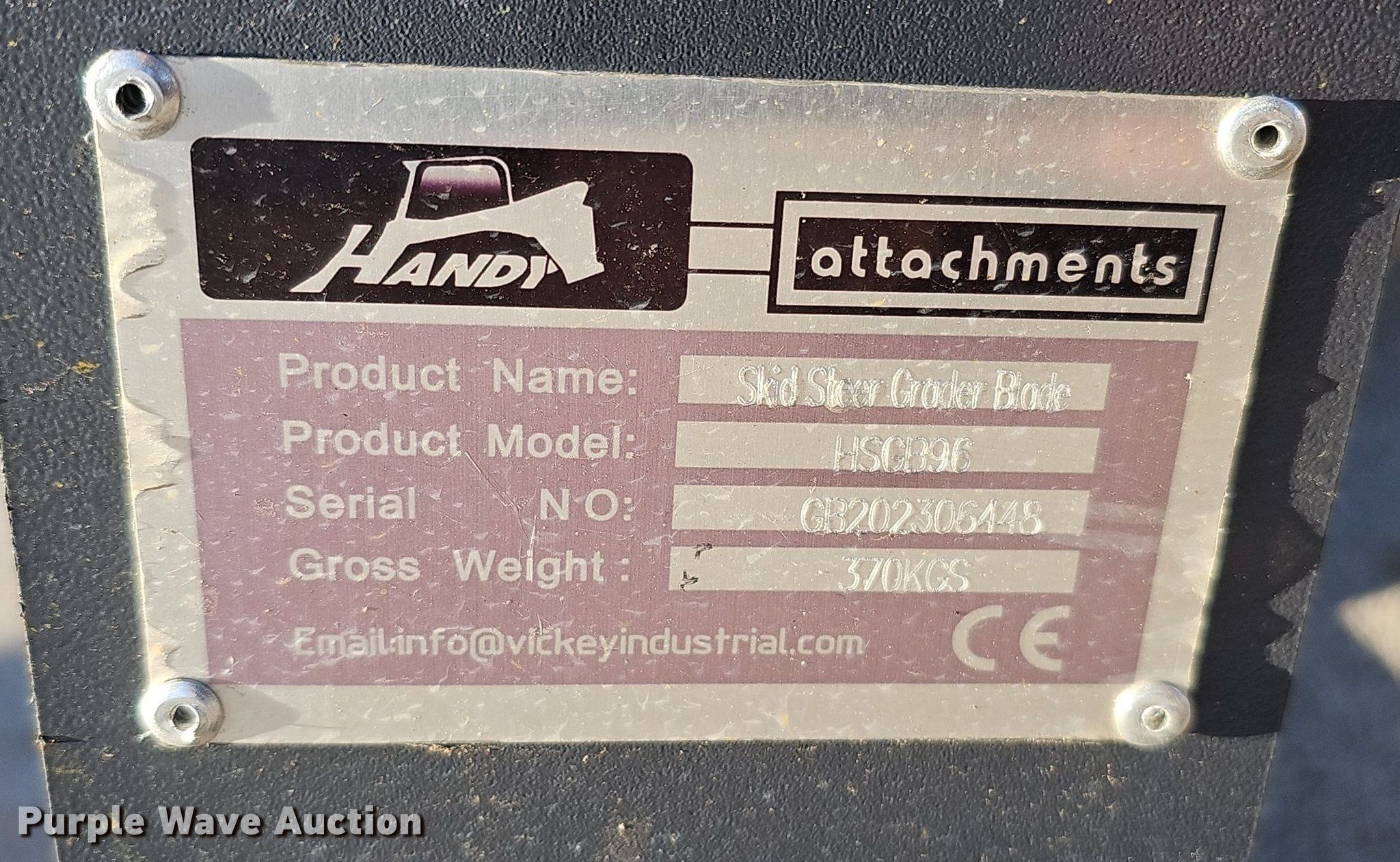 Purple Wave is selling a used Skid Steer Attach. in Nebraska. This item is a 2023 Handy Attachments HSGB96 skid steer grader with the following: Serial: GB202306448, Width: 96", Moldboard: Tilt control, Unused, 18x8.50-8 tire size