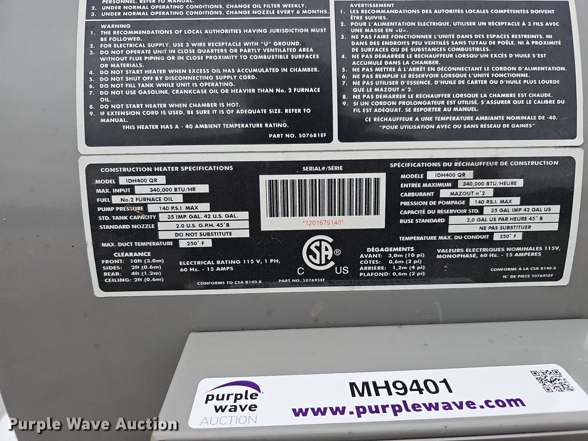 Intertek Frost Fighter Inc IDH400 QR heater | SOLD! October 26 Construction Equipment Auction