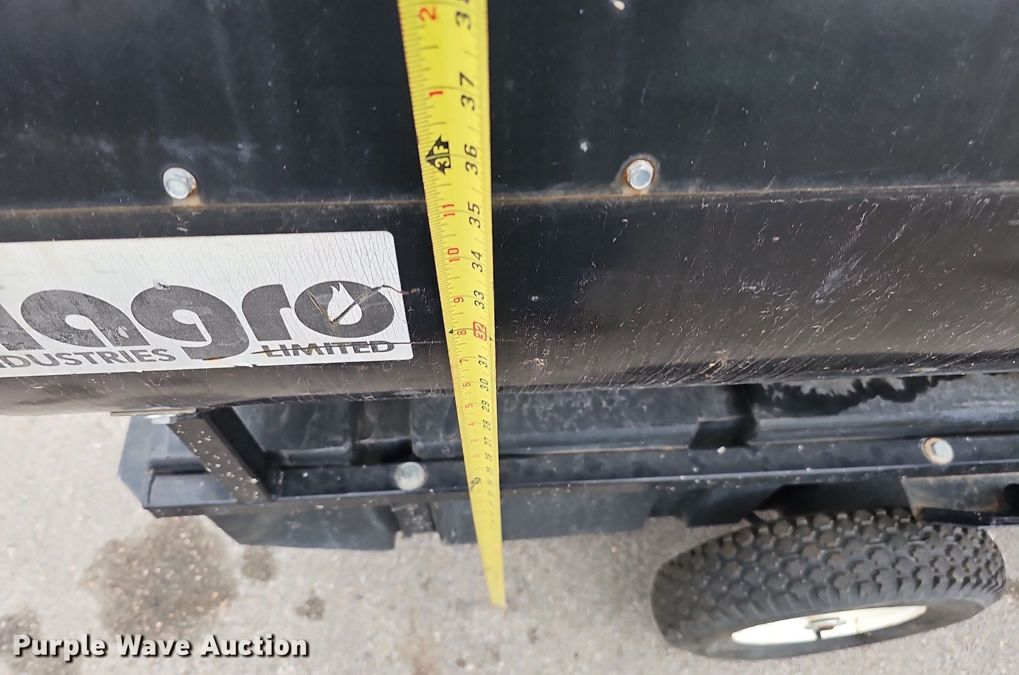 Flagro Industries Limited FVO-400 heater. Serial: 0V400-14077. Electric Motor Volts: 115, Phase: Single. Features 6' L x 28" W x 80" H, Capacity: 42 gallon , Fuel: No.1, No. 2 fuel oil, diesel, or kerosene, BTU: 325,000 to 390,000. Tires Size: 4.80/4.00-8. Jordan Machinery / S & N Auto Sales. 25050 U.S. 275. Waterloo, NE 68069