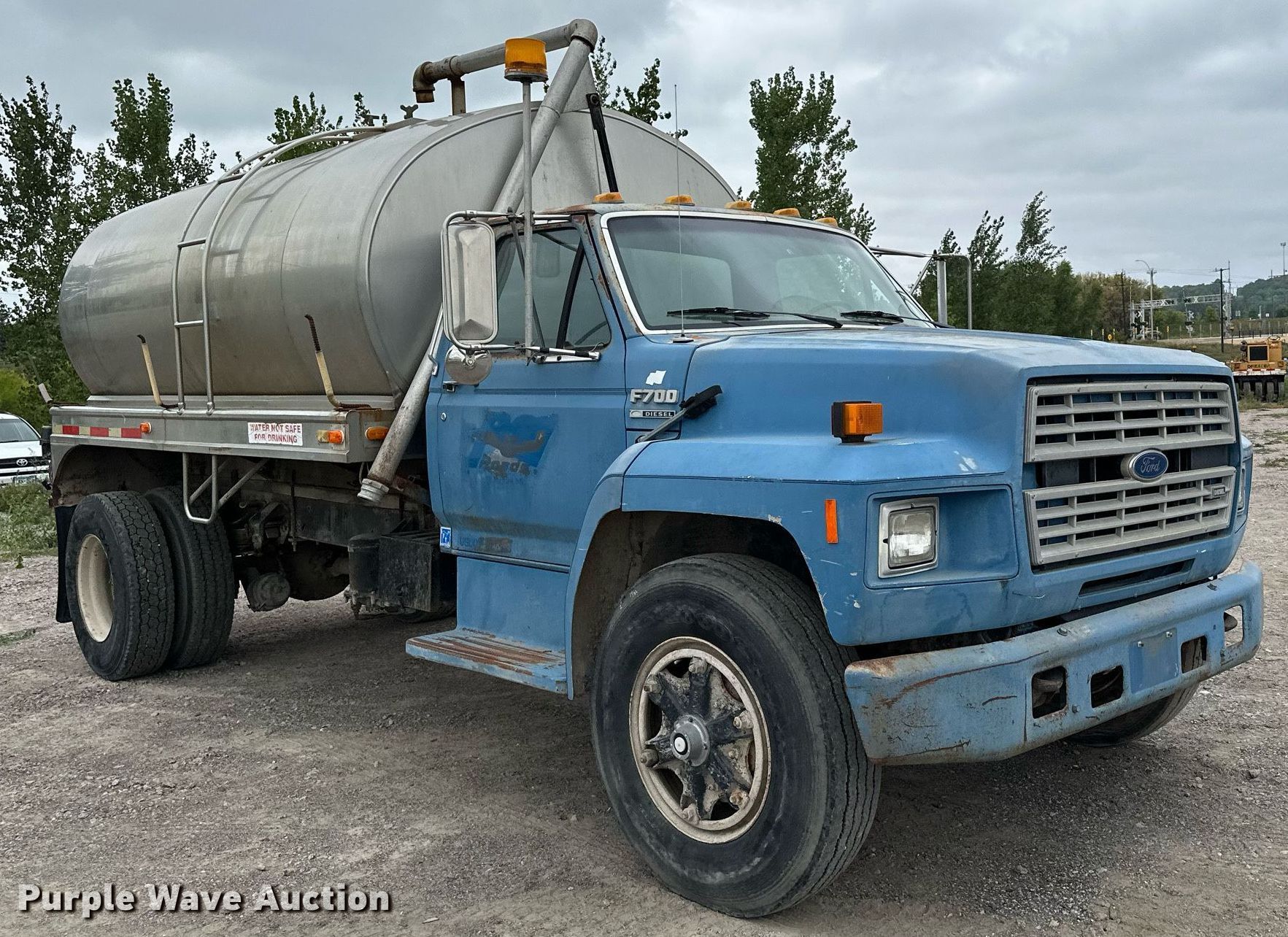 Purple Wave is selling a used Tank Truck or Water Truck in Minnesota. This item is a 1990 Ford F700 water truck with the following: Miles: 108,323 on odometer, VIN: 1FDXK74A0LVA11555, Unit #: 52-136