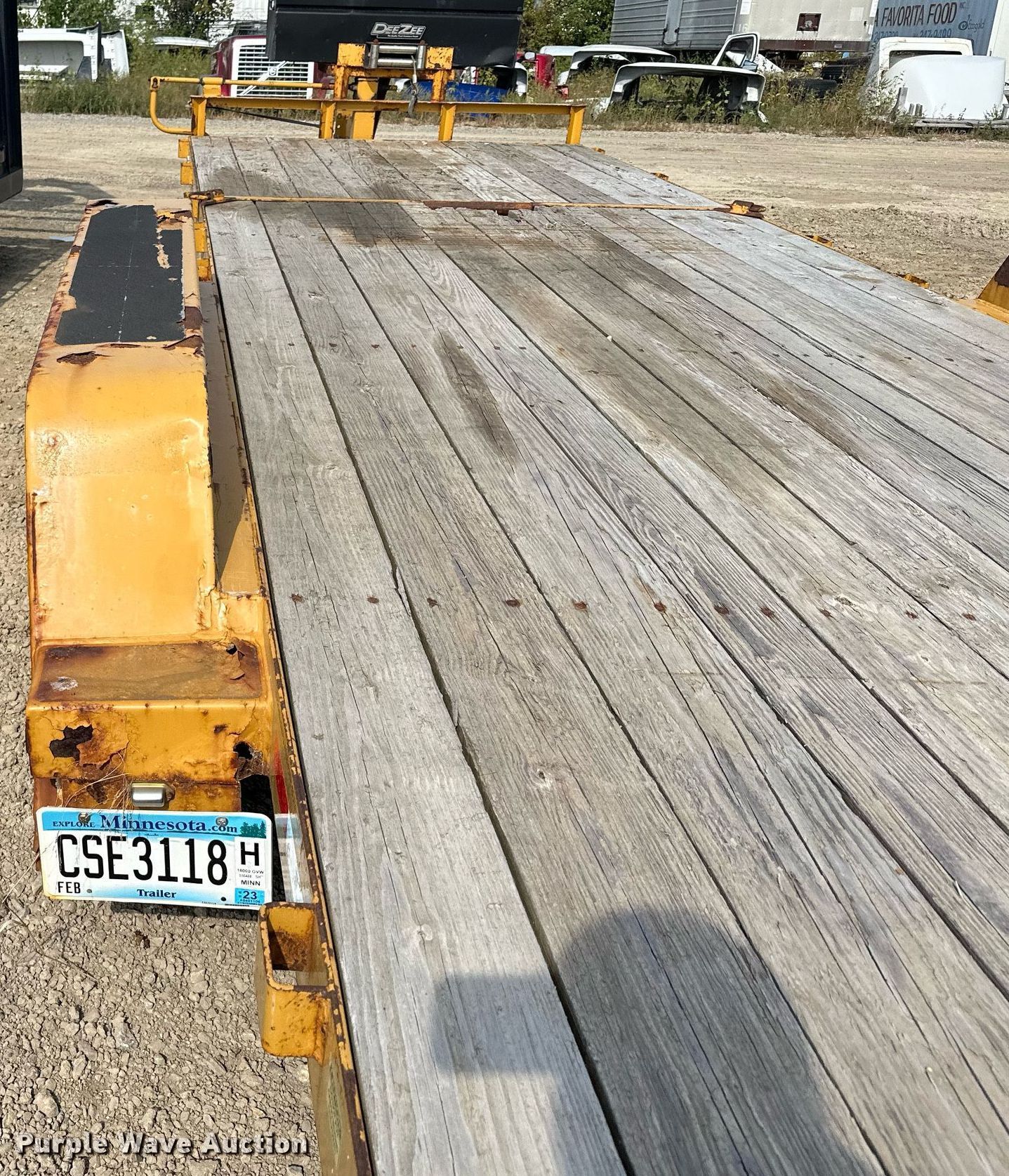 2014 Behnke tilt deck equipment trailer. VIN: 4L5SA2837EF029932. Dimensions 14' tilt deck, Overall: 26' 11" L x 102" W, Deck: 20' 1" L x 82" W, Deck height: 2', Tail length: 2'. Features Deck type: Wood, Winch Model: TS9500. Chassis Ball hitch: 2 5/16", Landing gear: Single, Suspension: Spring, Brakes: Electric, Axles: Tandem, GVWR: 16,000 lbs, GAWR: 8,000 lbs. Tires Steel wheels, Size: 215/75R17.5. Notes Non-operational winch. Minnesota title. Seller is a Minnesota licensed motor vehicle dealer. The buyer may be required to pay sales tax and/or registration fees to the dealer prior to taking possession. Title will be assigned and distributed by the dealer. Please contact the seller for distribution questions. Sanco Enterprises. 2317 Consul Street. Albert Lea, MN 56007
