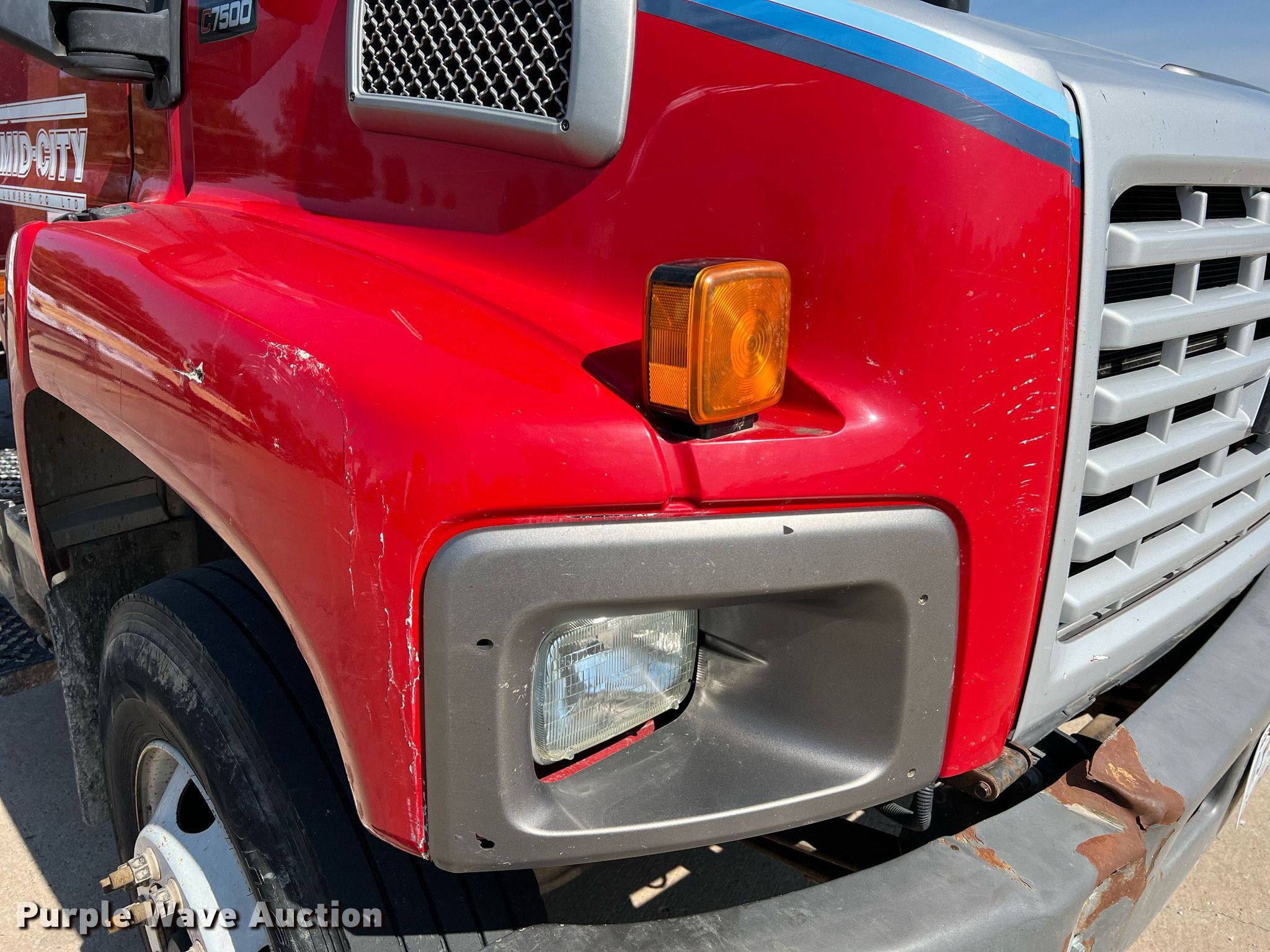 2006 Chevrolet C7500 dump flatbed truck. Miles: 195,171 on odometer, VIN: 1GBL7C1GX6F408327, Unit #: 604. Engine Displacement: 8.1L, Cylinders: 8, Fuel type: Gas. Transmission Manual, Speed: 5, plus 2. Chassis Axles: Single, Suspension: Spring, Brakes: Hydraulic, PTO, GVWR: 29,000 lbs. Interior AC, Heat, Cruise control. Features Dump flatbed Knapheide PCHS-183B, Serial: 950099-2005S, 18' 1" L x 96" W, Ram: Single. Tires Size: 11/R22.5. Notes Dash warning indicator: ABS, Exhaust manifold cracked , Transmission issues, intermittent hard shifting , Two speed rear end switch needs replaced. Missouri title. Title distribution may be delayed up to 14 days from verification of funds. Mid-City Lumber Co.. 4709 Paris Road. Columbia, MO 65202