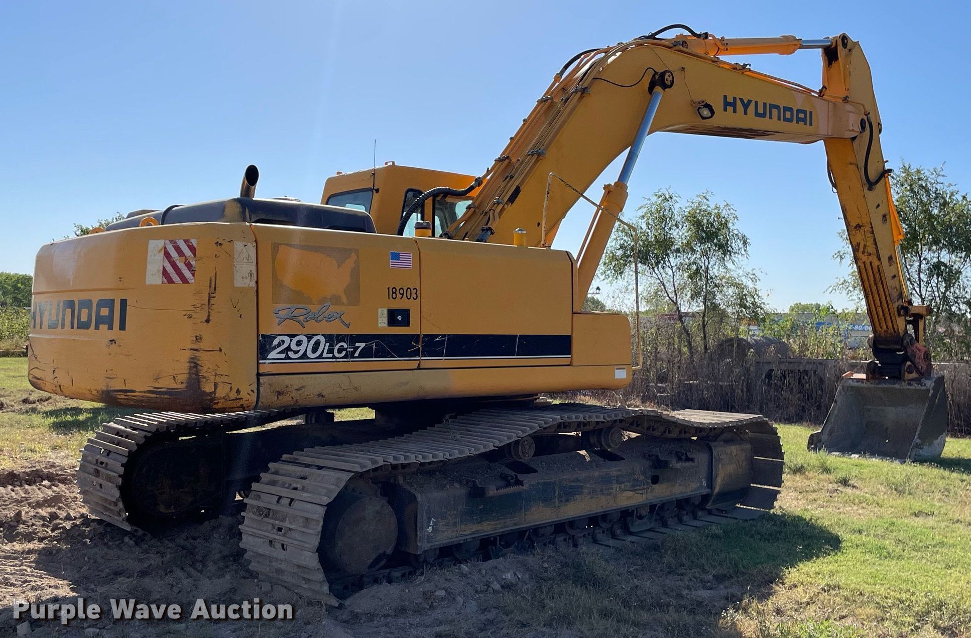 Purple Wave is selling a used Hydraulic Excavator in Kansas. This item is a 2002 Hyundai Robex 290LC-7 excavator with the following: Hours: 7,772 on meter, Serial: N801IB10073