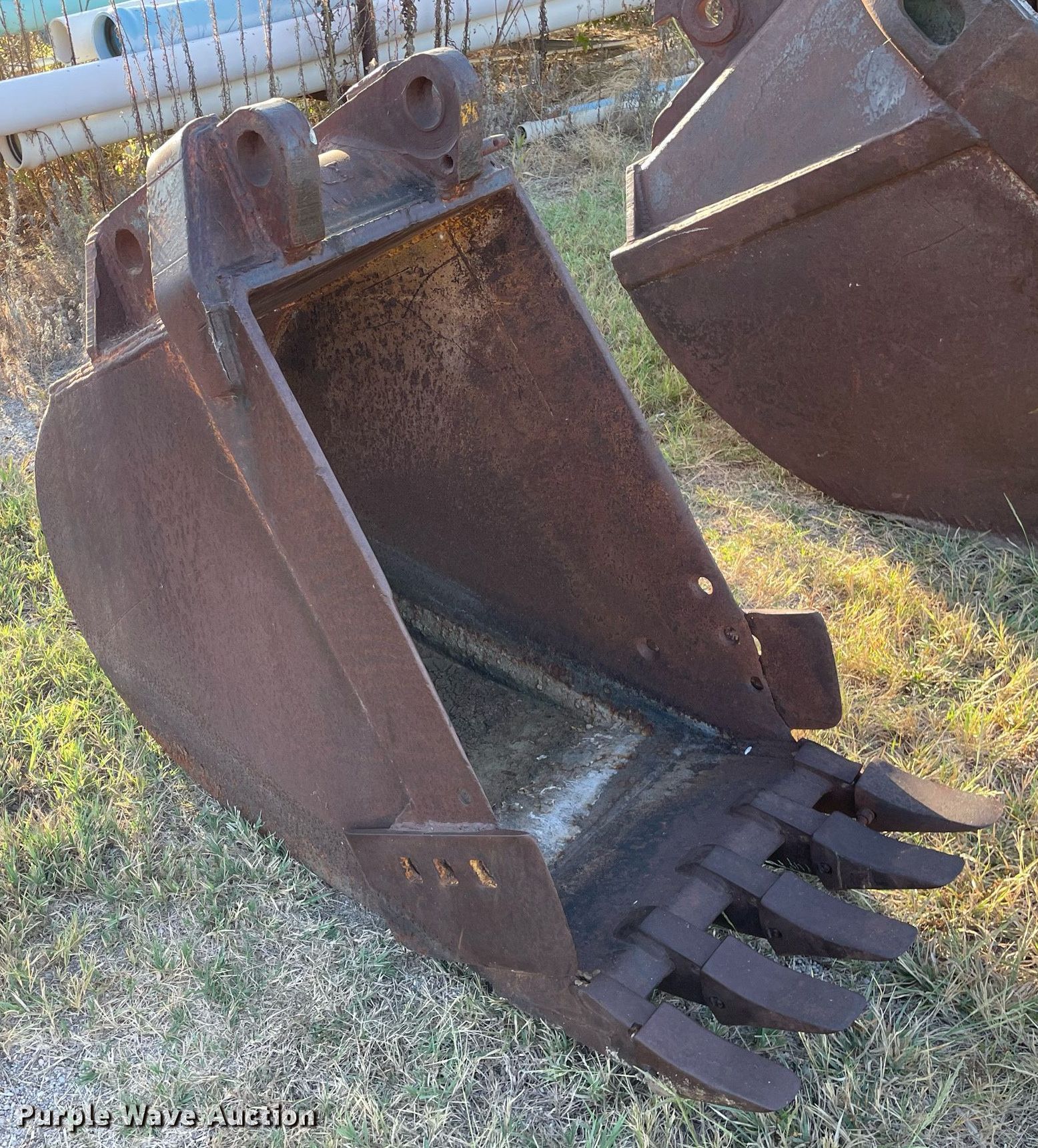 Purple Wave is selling a used Excavator Attach. in Kansas. This item is a Excavator bucket with the following: Width: 24", Cutting edge: Weld-on, Teeth: 5