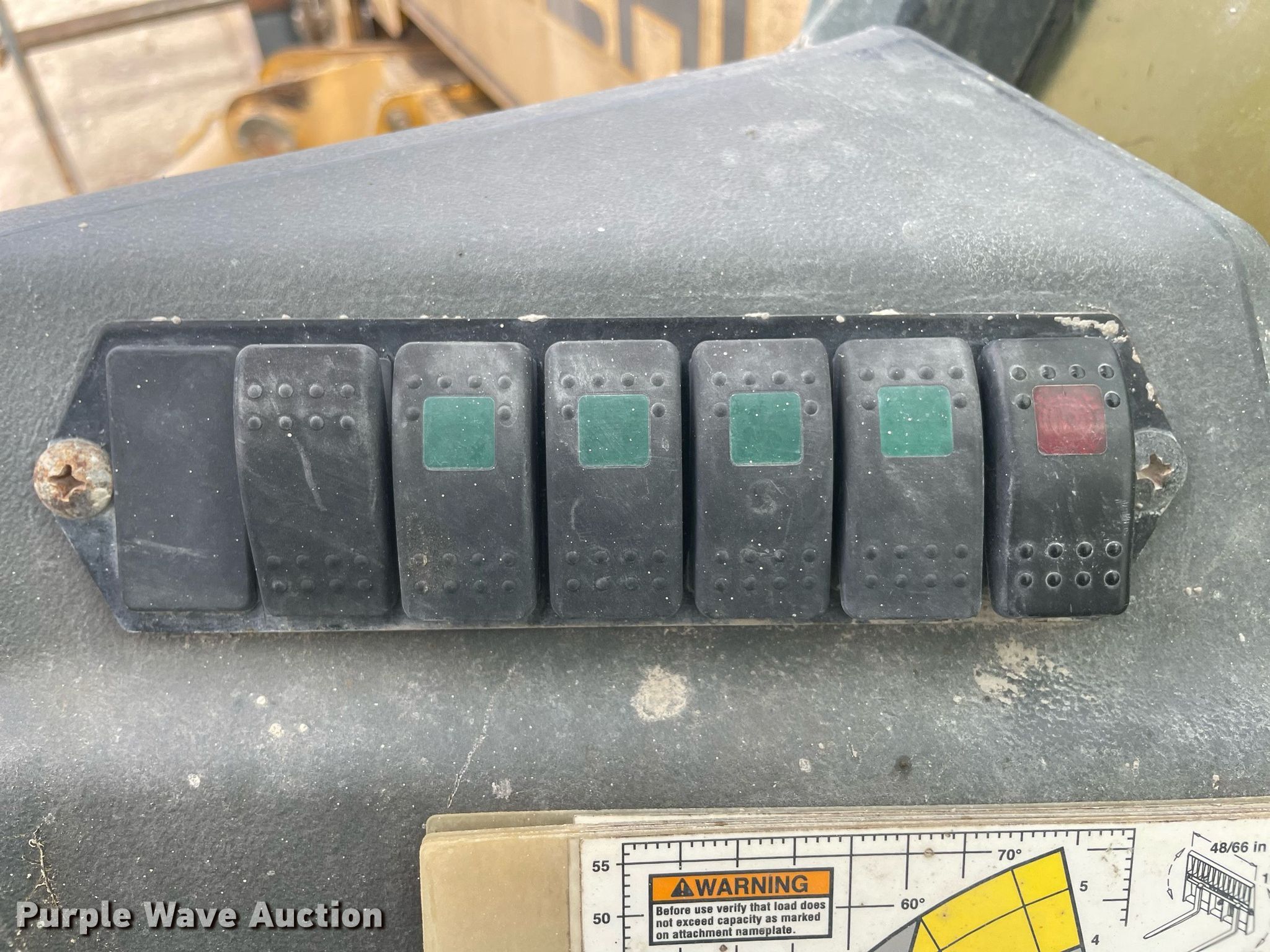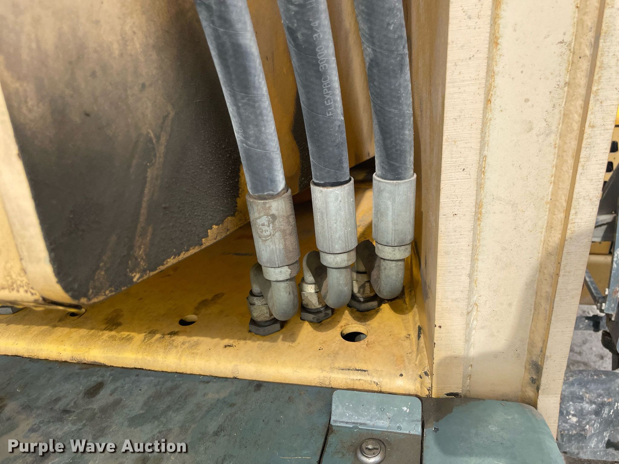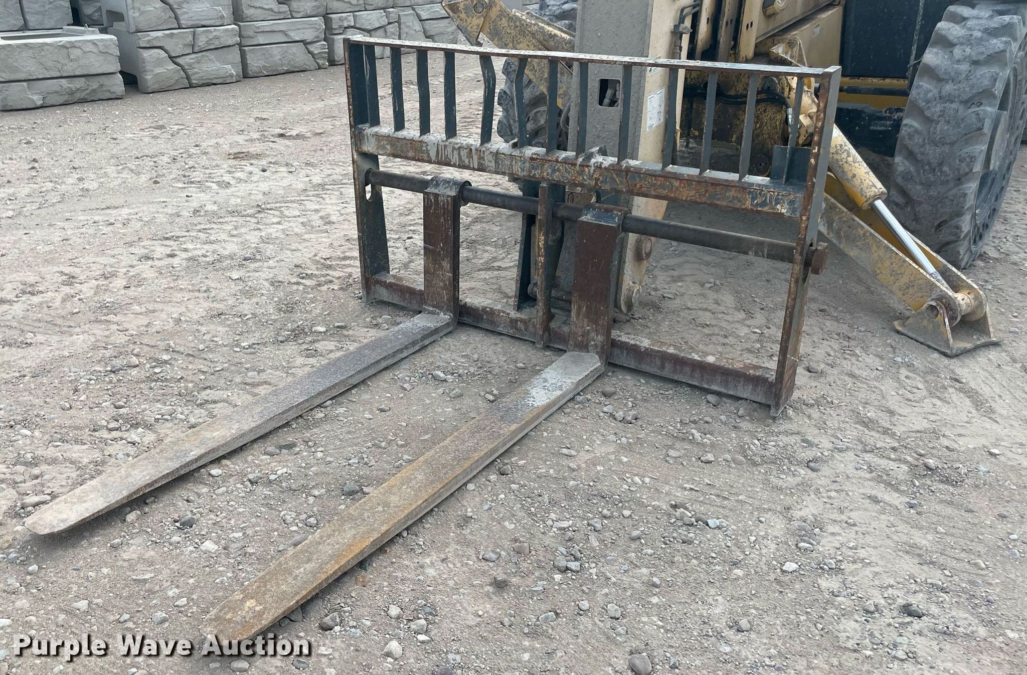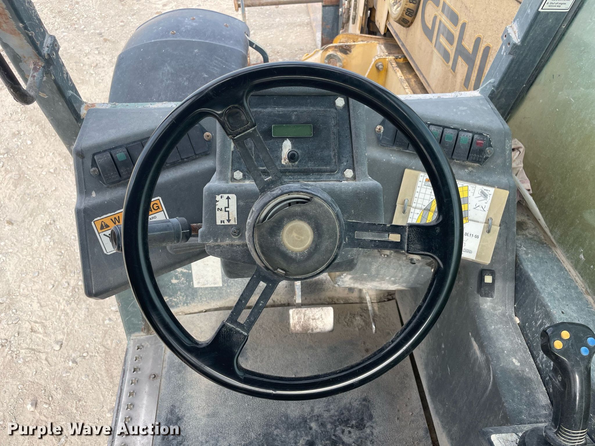 2008 Gehl DL11L55 telehandler. Hours: 7,712 on meter, Serial: DL1155LJZ0445464. Engine John Deere, Cylinders: 4, Fuel type: Diesel. Transmission Powershift, 4F - 4R, Four wheel drive. Operators station Enclosed cab, Steering: Crab, Four wheel. Features Maximum lift capacity: 11,000 lbs, Maximum lift height: 41', Boom stages: 3, Fork length: 72", Auxiliary hydraulics, Tilt carriage, Hydraulic outriggers, Quick attach: Manual. Tires Size: 14.00-24, Solid. Notes Hydraulic leak. Hawk Precast. 5002 Hwy 380. Princeton, TX 75407