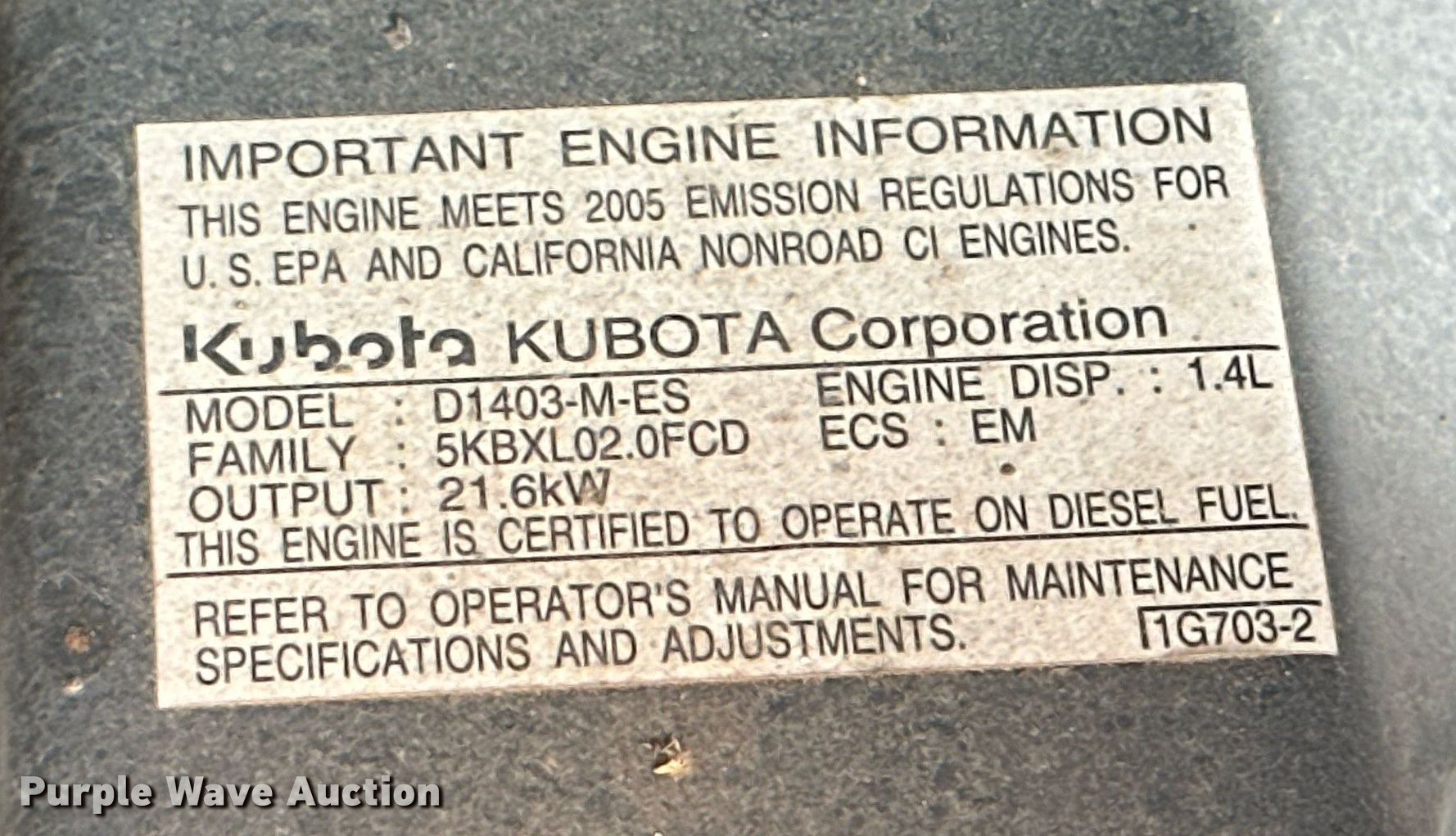 Kubota L2800D MFWD tractor. Hours: 2,568 on meter, Serial: 57849. Engine Kubota D1403-M-ES, Displacement: 1.4L, Cylinders: 3, Fuel type: Diesel, kW: 21.6. Transmission Manual, 8F - 4R, Differential lock. Features PTO: 540, Three point Top link. Tires Front: 7-16, Rear: 11.2-24. Notes Steering issues, Unknown operating condition. City of Littlefield, TX. 1300 East Delano Avenue. Littlefield, TX 79339