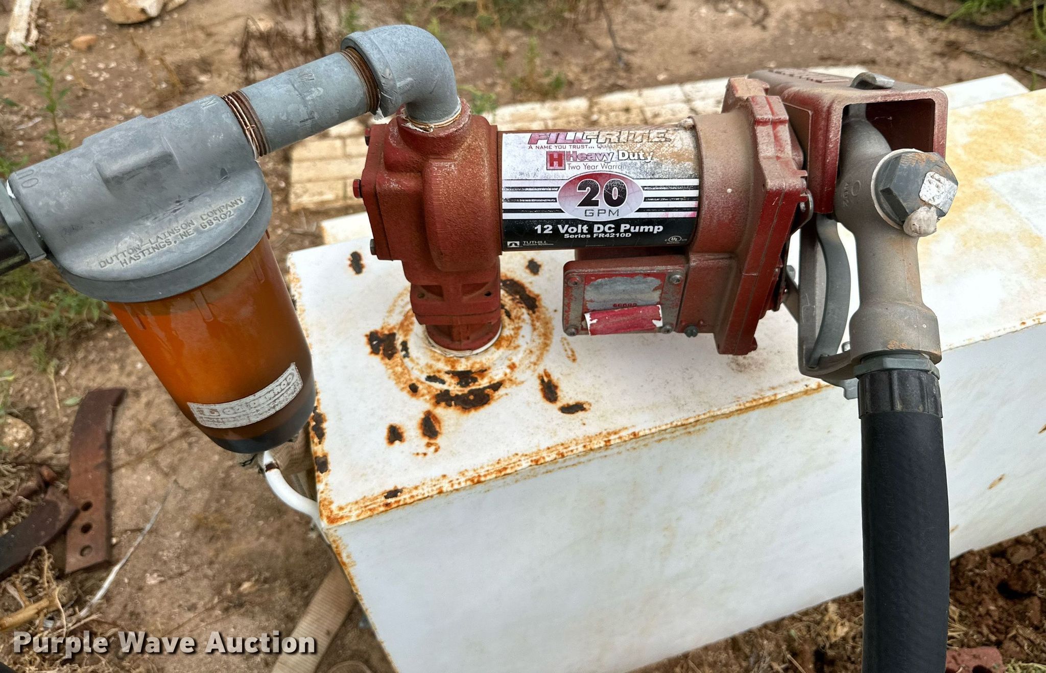 Tradesman L-shaped diesel tank. 31" L x 56" W x 25" H, Fill-rite 20 GPM fuel pump. City of Littlefield, TX. 1300 East Delano Avenue. Littlefield, TX 79339
