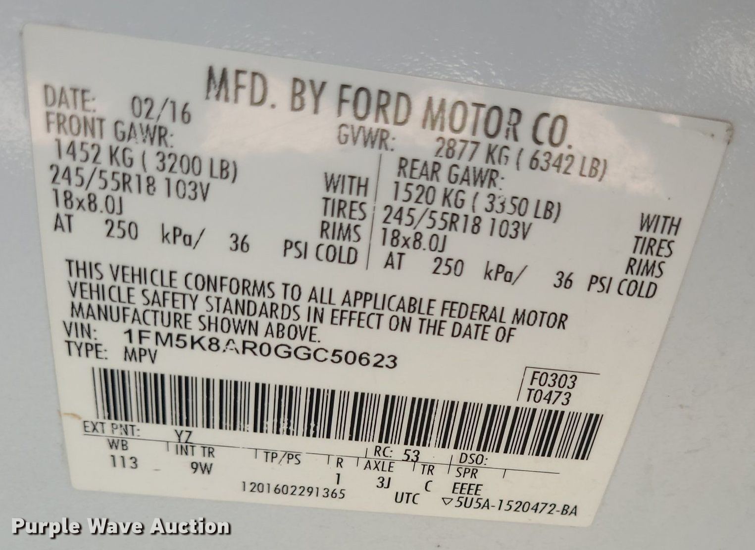 • VIN: 1FM5K8AR0GGC50623