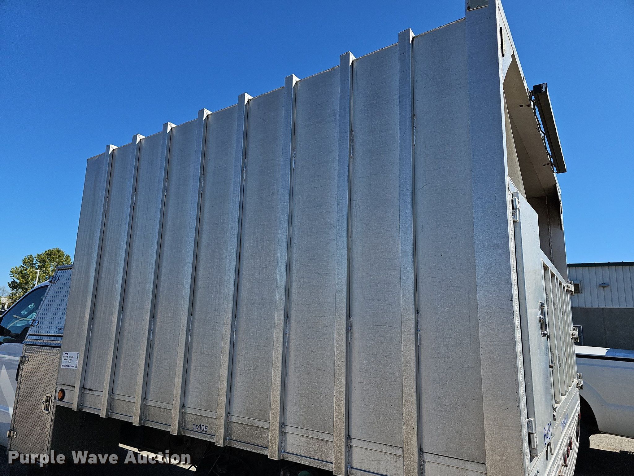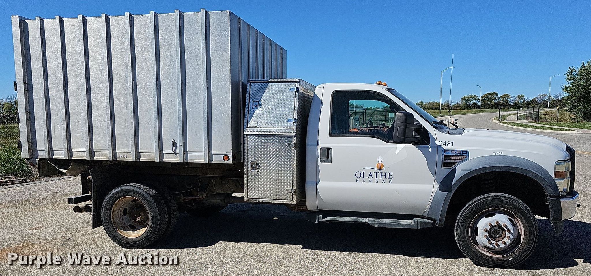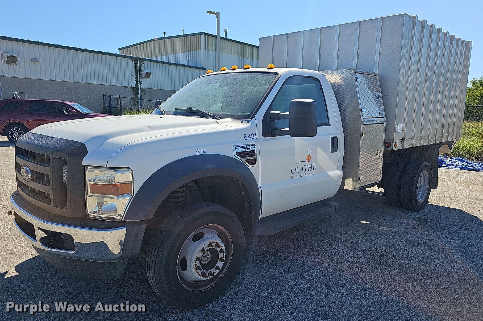 2009 Ford F550 XL Super Duty dump truck. Miles: 59,830 on odometer, VIN: 1FDAF57R49EB22442, Unit #: TP95. Engine Displacement: 6.4L, Cylinders: 8, Fuel type: Diesel. Transmission Automatic, Four wheel drive. Chassis Axles: Single, Suspension: Spring, Brakes: Hydraulic, GVWR: 19,500 lbs FAWR: 6,500 lbs, RAWR: 14,706 lbs, Wheelbase: 164". Interior AC, Heat. Features Dump bed 2009 Alum-line Chipperbod, 9' L x 8' 4" W x 5' 5" H, Side height: 66", Bed type: Aluminum, End gate: Manual, Rear swing gate, Front and rear storage boxes. Tires Size: 225/70R19.5, Brand: Goodyear. Kansas title. Olathe, KS 66061