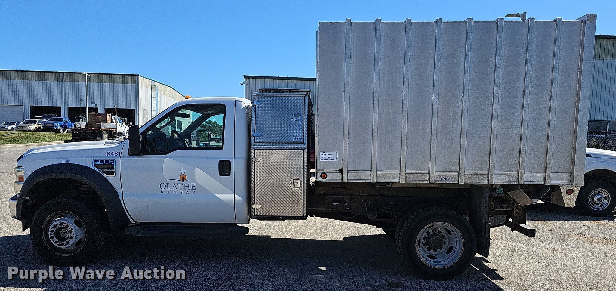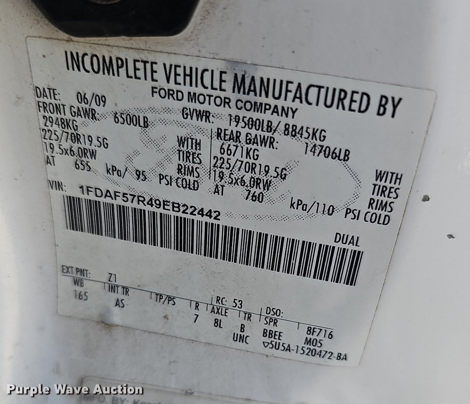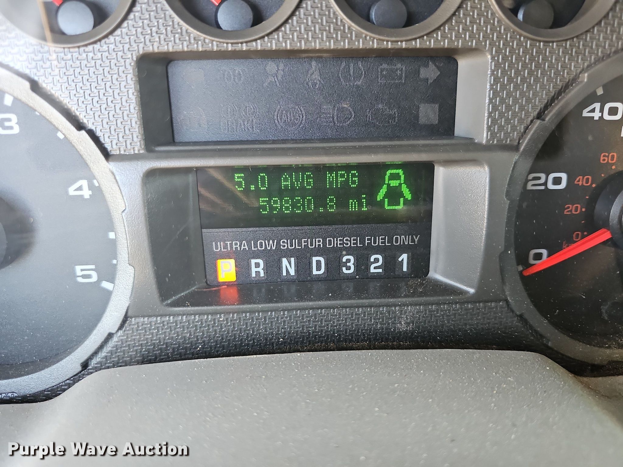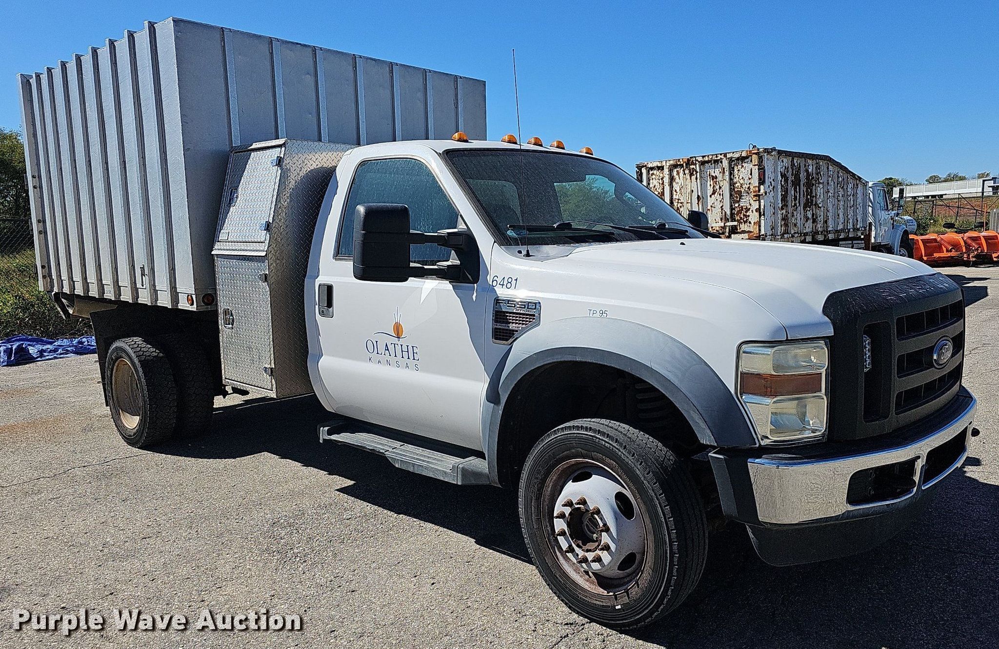 2009 Ford F550 XL Super Duty dump truck. Miles: 59,830 on odometer, VIN: 1FDAF57R49EB22442, Unit #: TP95. Engine Displacement: 6.4L, Cylinders: 8, Fuel type: Diesel. Transmission Automatic, Four wheel drive. Chassis Axles: Single, Suspension: Spring, Brakes: Hydraulic, GVWR: 19,500 lbs FAWR: 6,500 lbs, RAWR: 14,706 lbs, Wheelbase: 164". Interior AC, Heat. Features Dump bed 2009 Alum-line Chipperbod, 9' L x 8' 4" W x 5' 5" H, Side height: 66", Bed type: Aluminum, End gate: Manual, Rear swing gate, Front and rear storage boxes. Tires Size: 225/70R19.5, Brand: Goodyear. Kansas title. Olathe, KS 66061