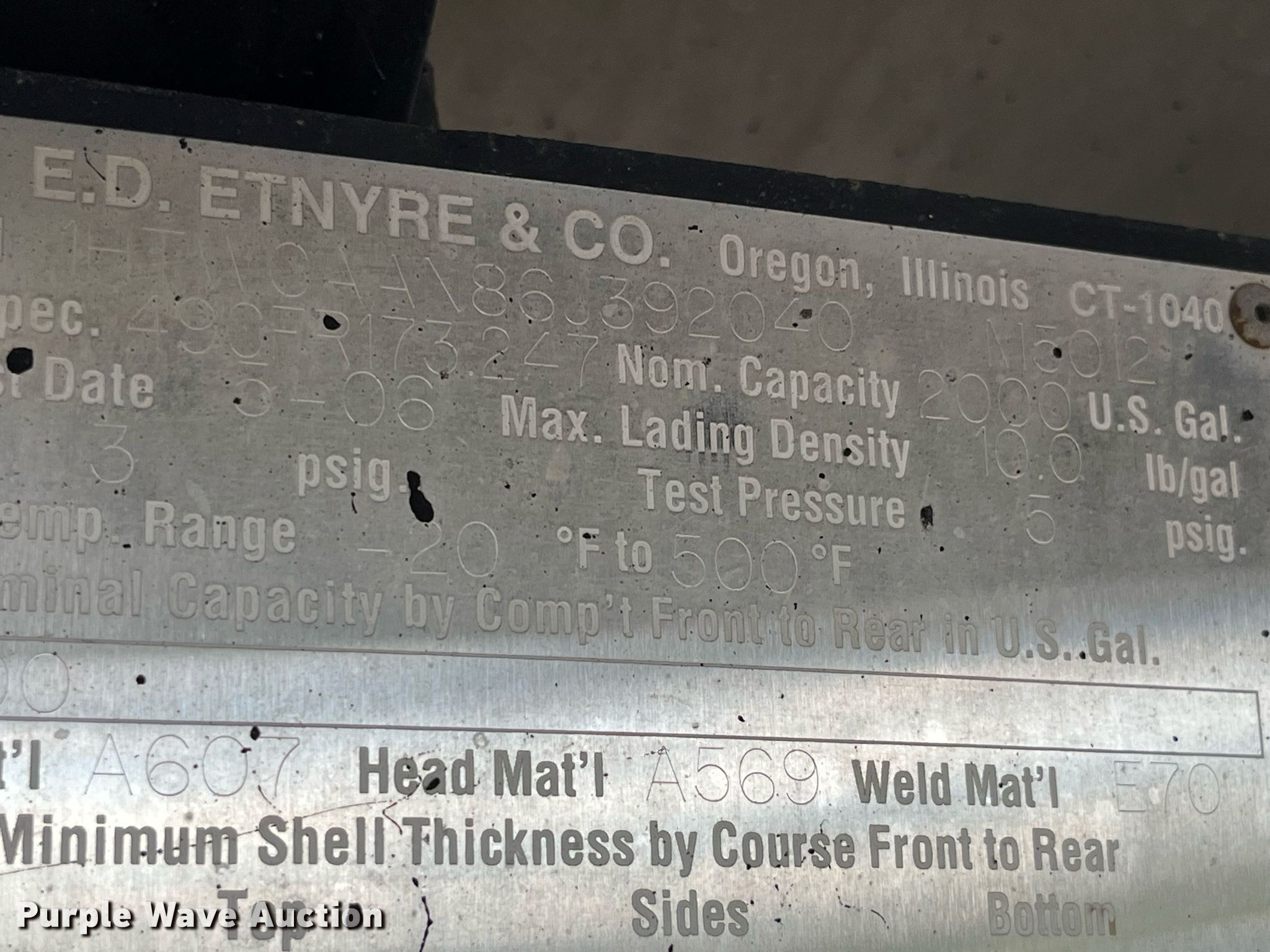2006 International 7400 oil distributor truck. Miles: 91,056 on odometer, Hours: 9,955 on meter, VIN: 1HTWCAAN86J392040, Unit #: G9209. Engine International DH225, Displacement: 7.6L, Cylinders: 6, Fuel type: Diesel. Transmission Automatic. Chassis Axles: Single, Suspension: Spring, Brakes: Air, Front mount PTO, GVWR: 33,000 lbs. Interior AC, Heat, Heated mirrors, Cruise control. Features Bed / tank E.D. Etnyre & Co M5012, Capacity: 2,000 gallons, Burner: LPG, Heat rating: 500 degrees, In-cab controls, Spray wand, Spray boom Width: 14', Folding, Side shift, Nozzles: 42.. Tires Size: 11/R22.5. Notes Dash warning indicator: Check engine, Engine warning. Missouri title. Title distribution may be delayed up to 14 days from verification of funds. Missouri Department of Transportation (MODOT). 26826 US Hwy 63. Macon, MO 63552