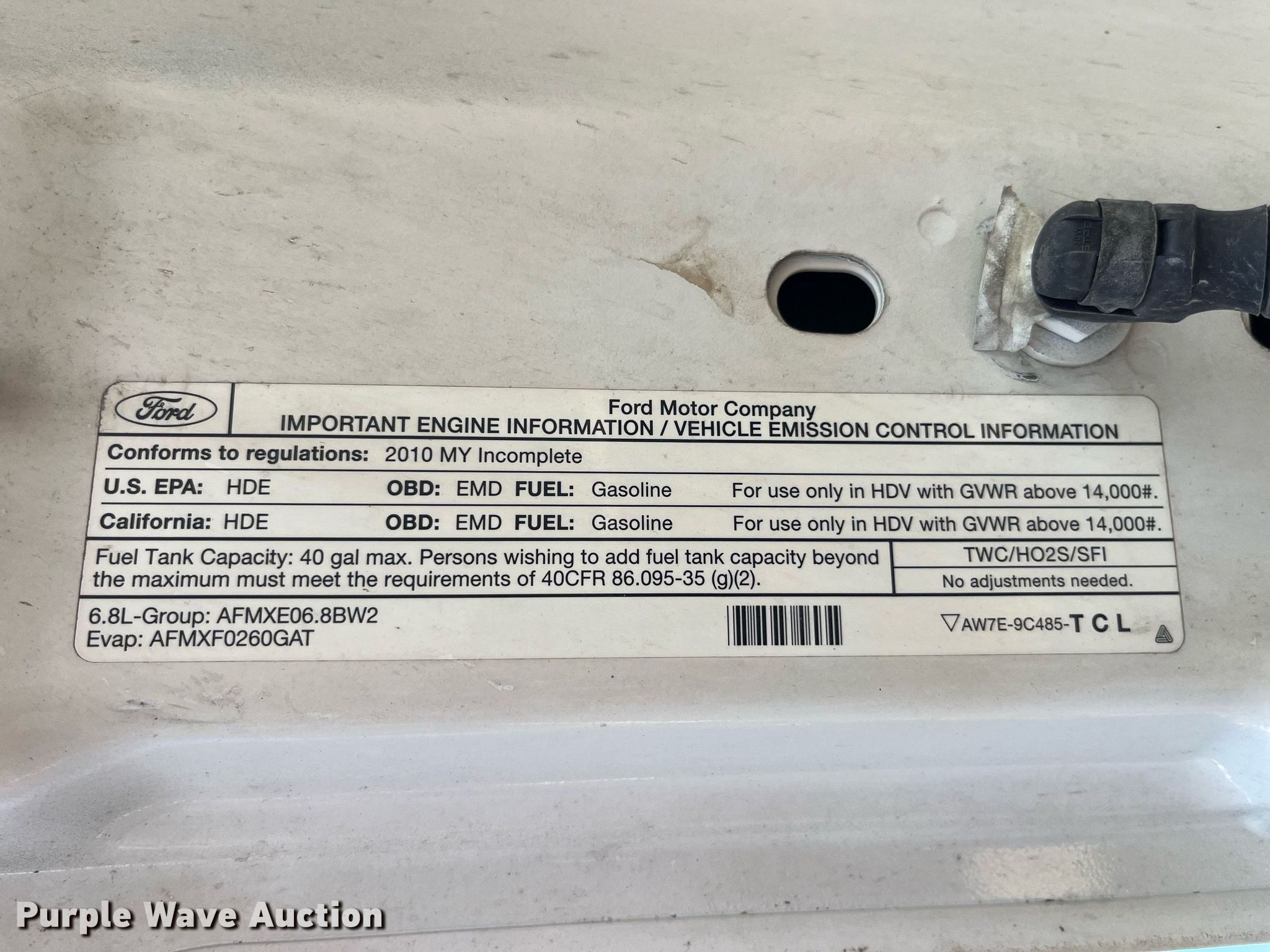 2010 Ford F450 Super Duty XL truck cab and chassis. Miles: 206,948 on odometer, VIN: 1FDAF4GY3AEB38203. Engine Displacement: 6.8L V10 SOHC, Cylinders: 10, Fuel type: Gas. Transmission Automatic. Chassis Axles: Single, Suspension: Spring, Brakes: Hydraulic, Truck chassis: 11', GVWR: 16,500 lbs. Missouri title. Missouri Department of Transportation (MODOT). 1711 U.S. 61. Hannibal, MO 63401