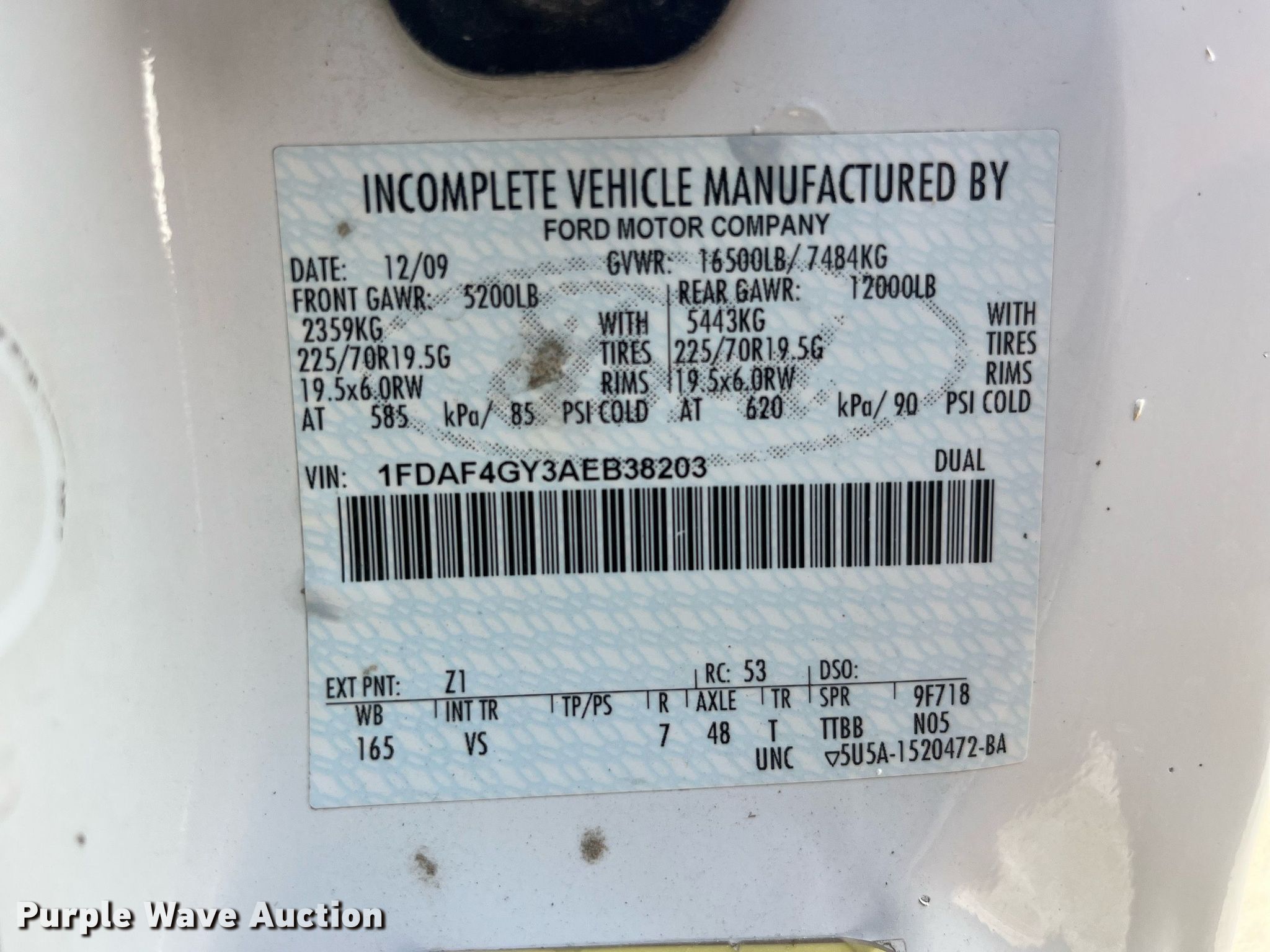 - VIN: 1FDAF4GY3AEB38203
