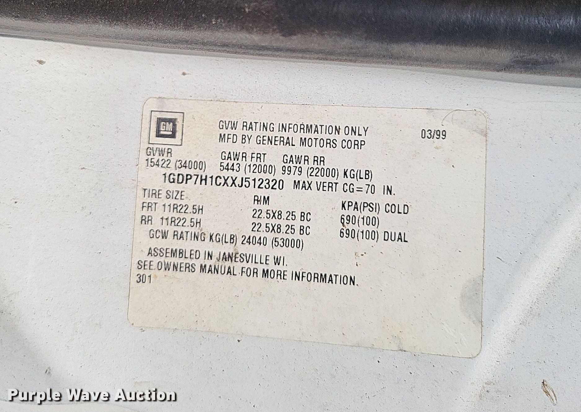 Purple Wave is selling a used Construction Dump Truck in Missouri. This item is a 1999 GMC C8500 dump truck with the following: Miles: 127,478 on odometer, Hours: 8,154 on meter, VIN: 1GDP7H1CXXJ512320, Unit #: 111