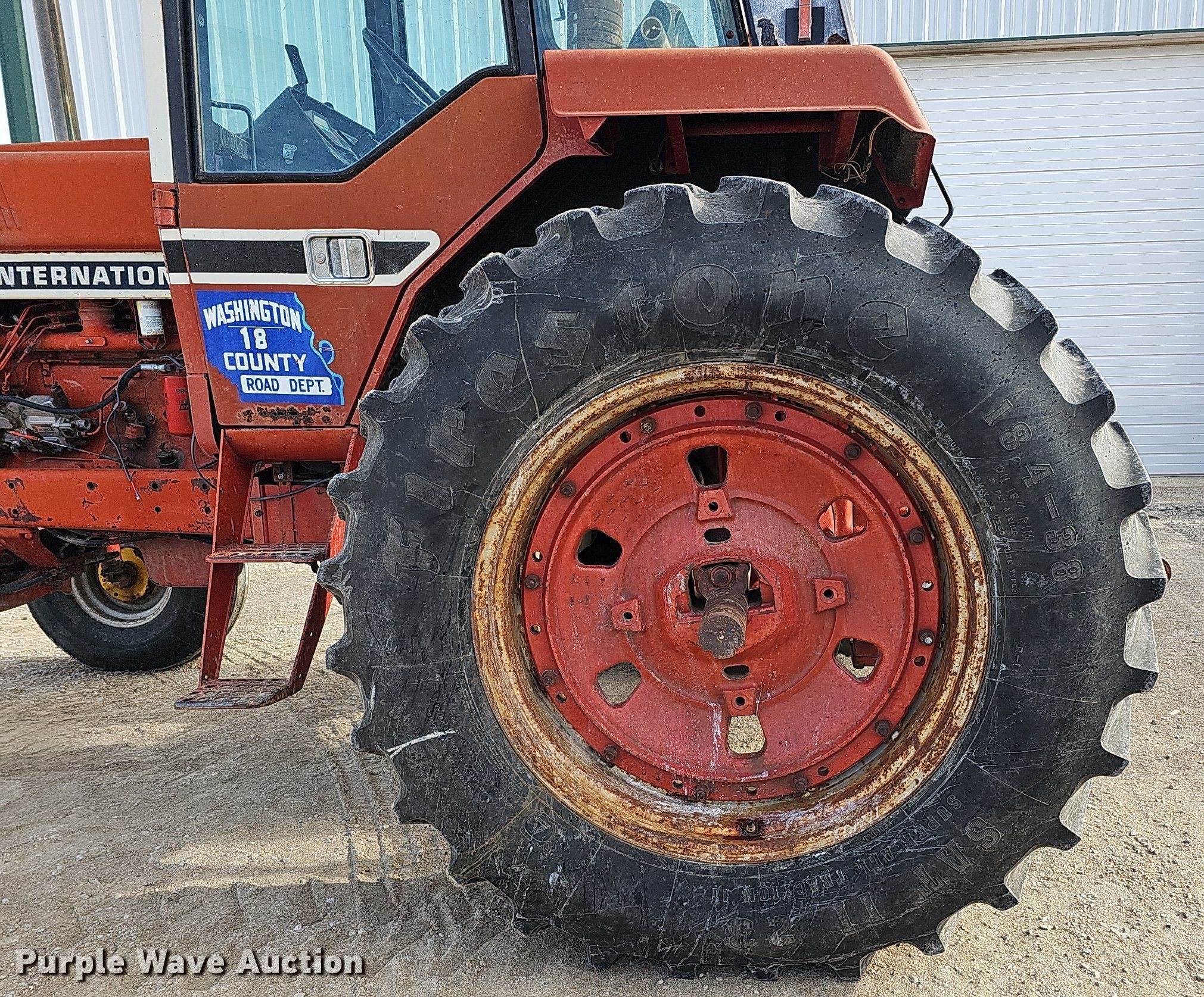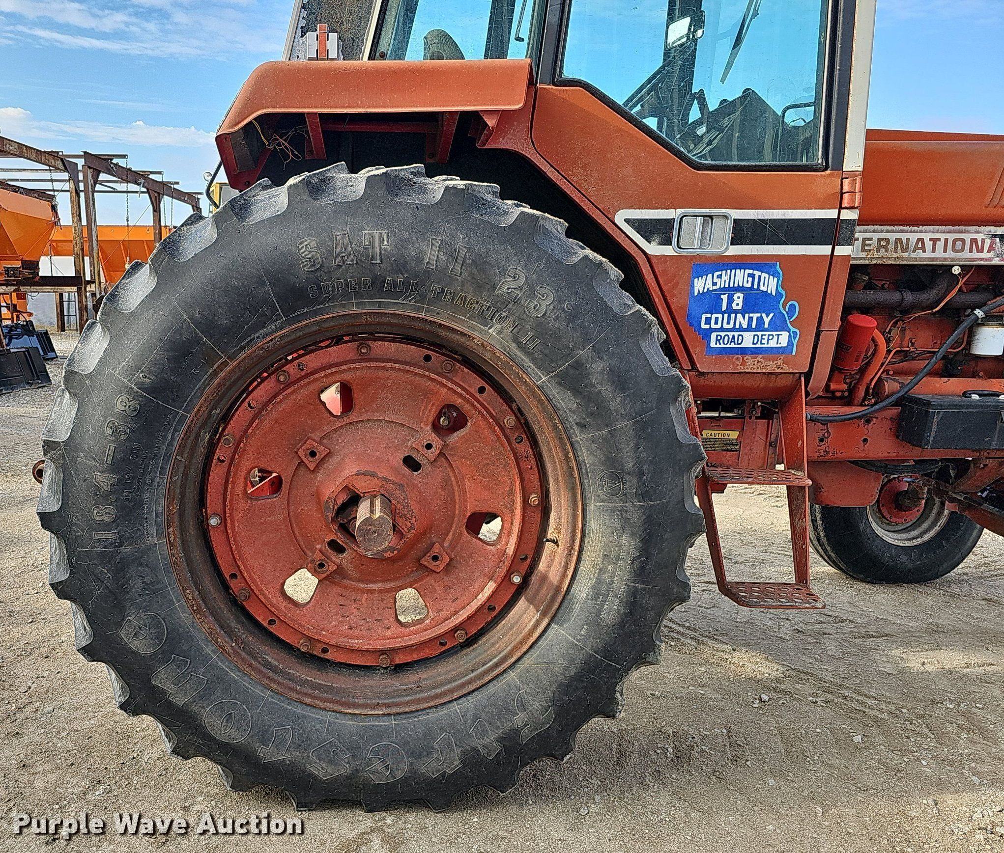 1978 International F1086 tractor. Hours: 9,214 on meter, Serial: 261018U34123. Engine Cylinders: 6, Fuel type: Diesel. Transmission Torque amplifier, 16F - 8R. Operators station AC, Heat. Features PTO: 540, 1000, Three point, Hydraulic remote sets Rear: 2, Suitcase weights: 7. Tires Front: 11.00-16, Rear: 18.4-38. Washington County, NE. 8845 Berry Hill Road. Blair, NE 68008