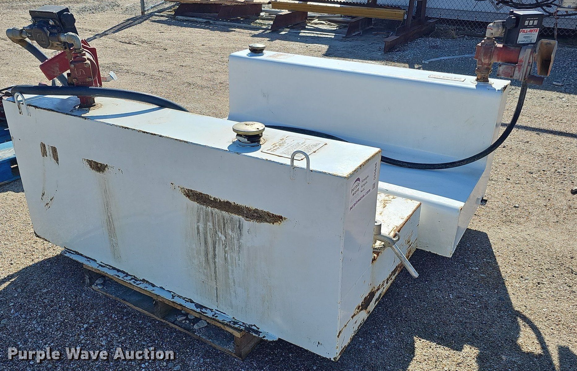 Purple Wave is selling a used Fuel and Lube in Nebraska. This item is a (2) fuel tanks with the following: 60" L x 30" W x 24" H, Nozzle and hose, (3) Fill-Rite pumps