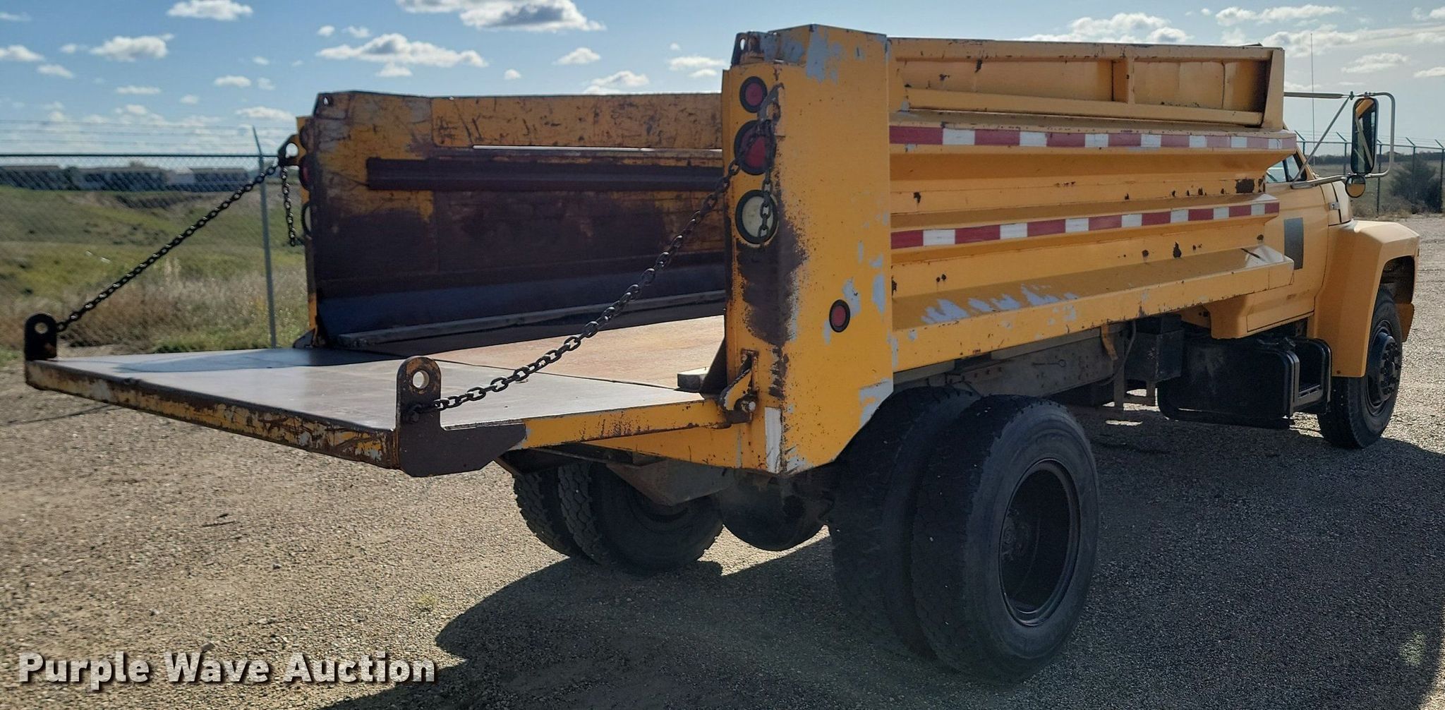 This 1990 Ford F700 dump truck will sell to the highest bidder regardless of price.
