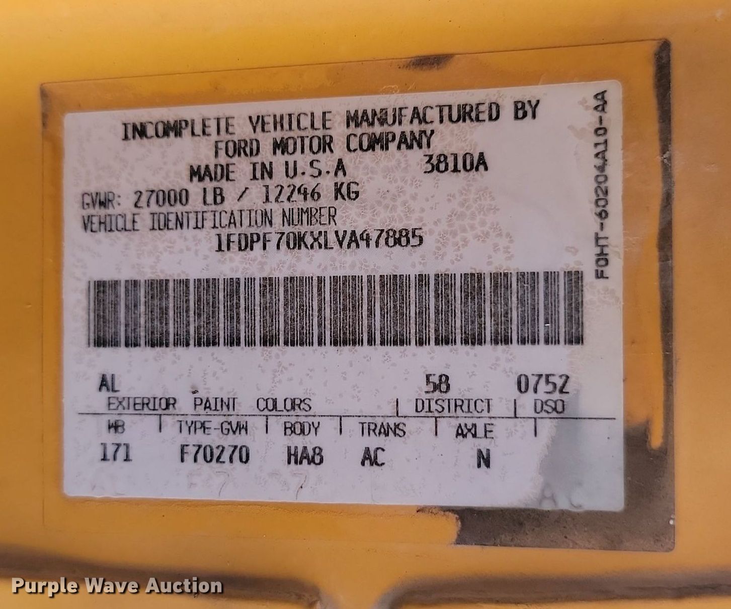 - VIN: 1FDPF70KXLVA47885