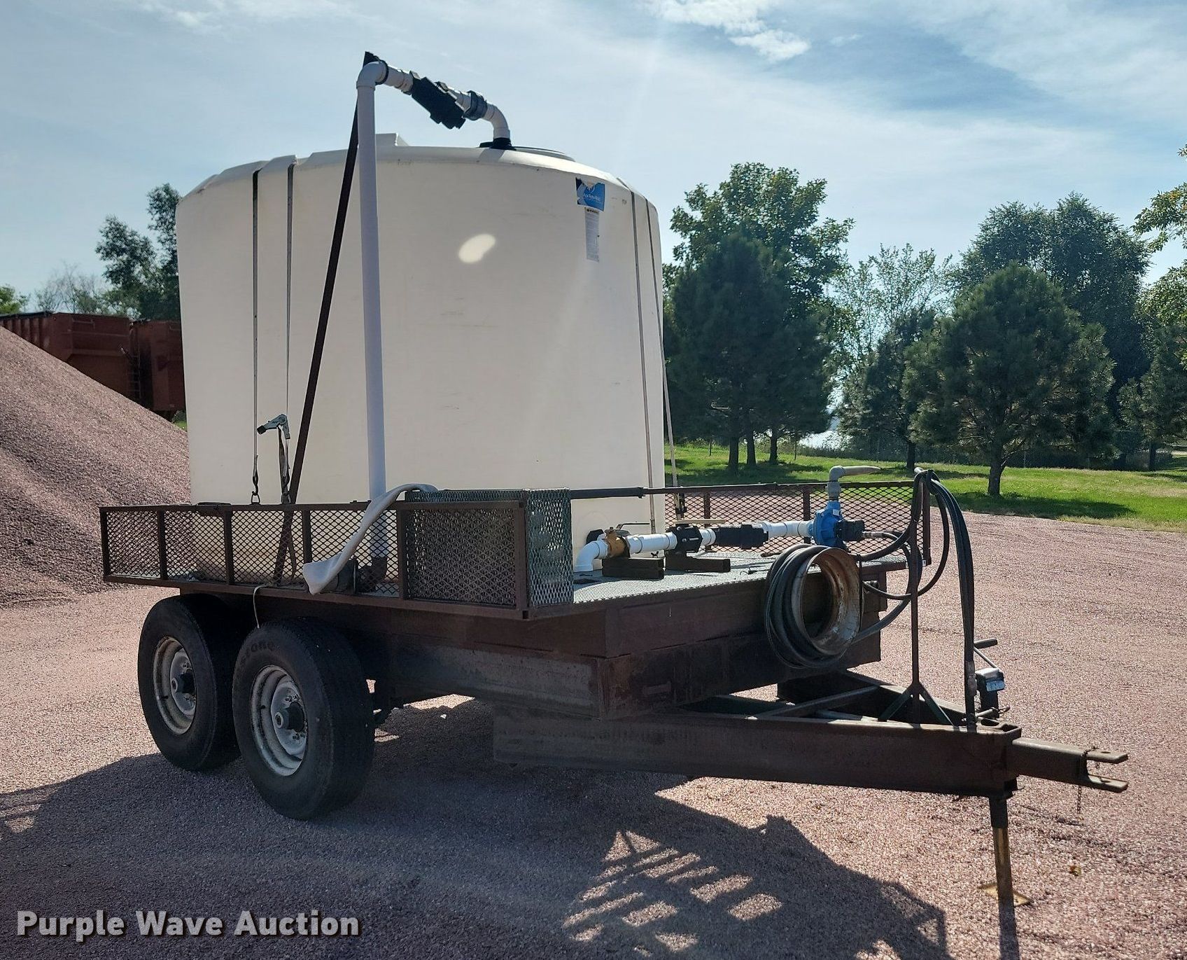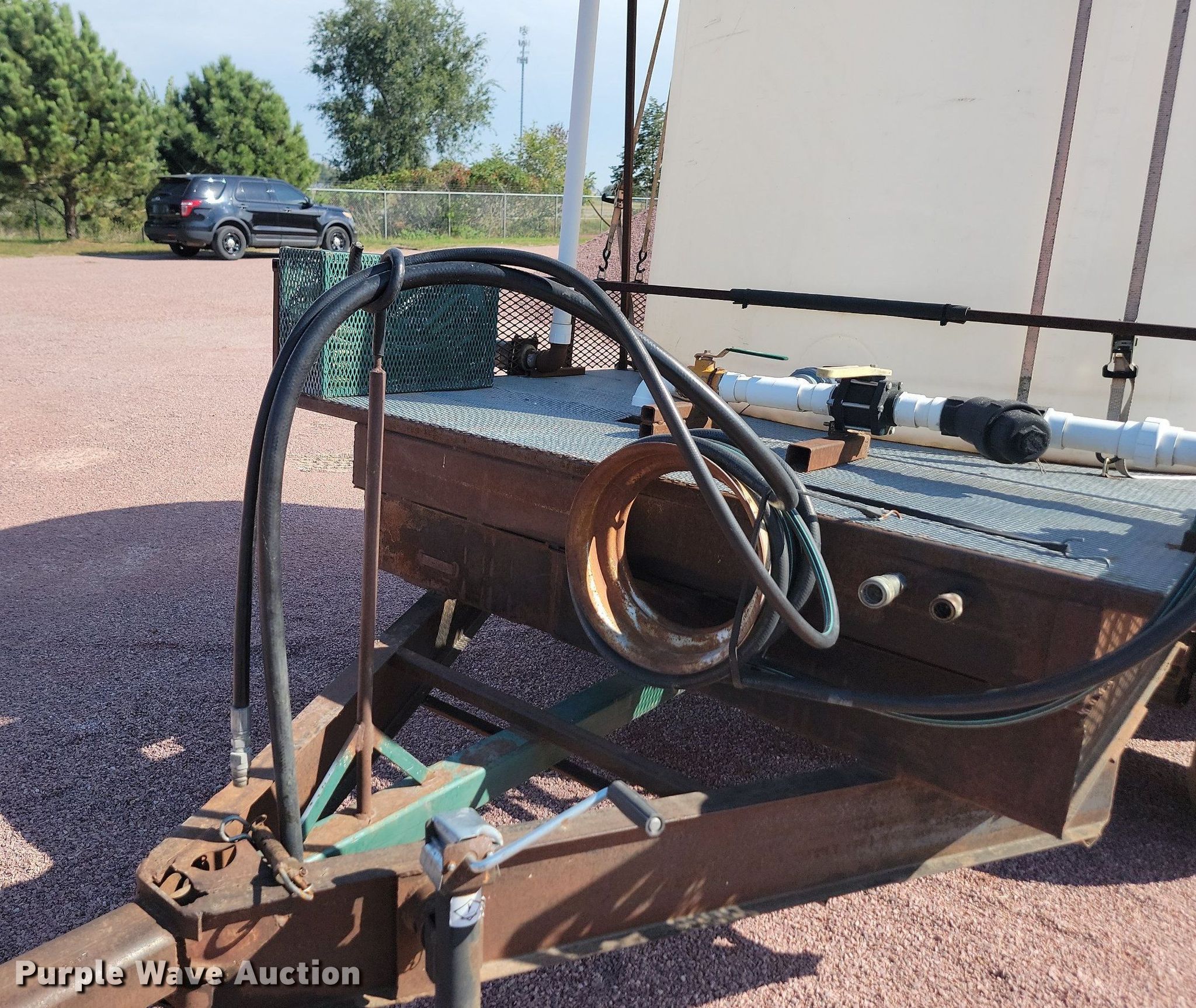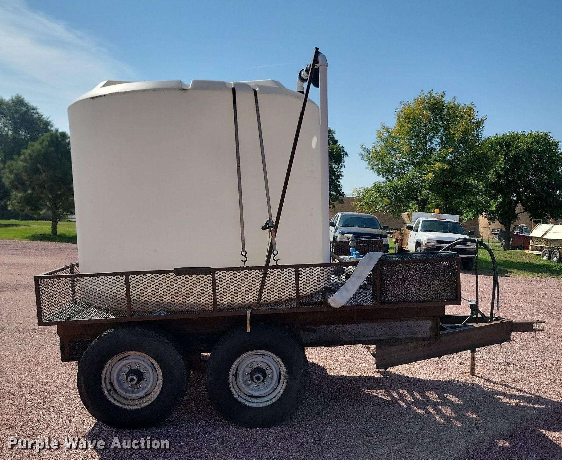 2023 Shop built 7.5x10 utility trailer. VIN: 7018397. Dimensions Overall: 14' 3" L x 90" W, Deck: 10' 2" L x 90" W. Chassis Landing gear: Single, Suspension: Spring, Axles: Tandem. Features Tank Capacity: Approx. 1,000 gallons. Tires Steel wheels, Size: LT235/85R16. South Dakota title. Title distribution may be delayed up to 14 days from verification of funds. City of Yankton. 700 E Levee St. Yankton, SD 57078