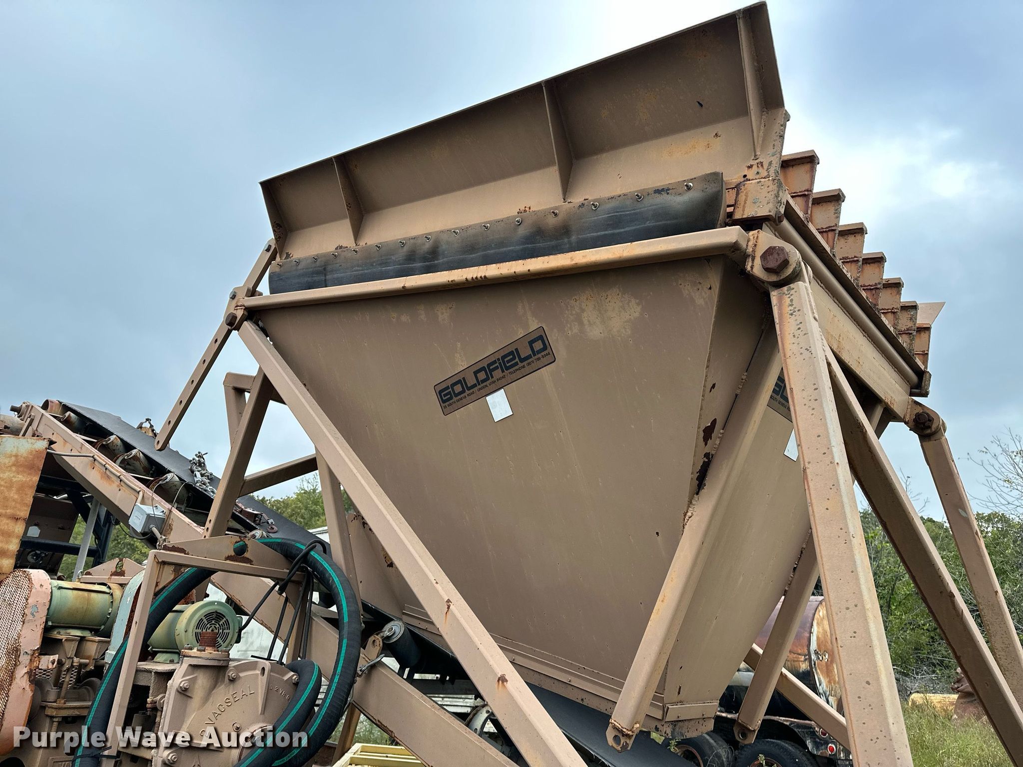 Purple Wave is selling a used Screen or Screening Plant in Arkansas. This item is a Goldfield wash plant with the following: Screen deck, Length: 7' 6", Width: 26", Decks: 4, Input hopper, Grizzly, Conveyor, Width: 16", RE Sabre electric motor, HP: 7.5, Phase: Three, Volts: 208-230/460,, (2) roughing classifiers, (2) finishing classifiers, (2) Vacuum seal water pumps, (2) Emerson E183 electric motors, HP: 0.75, Phase: Three, Volts: 208-230/460, Emerson E186 electric motor, HP: 1, Phase: Three, Volts: 190/380, Trailer not included, Unknown operating condition