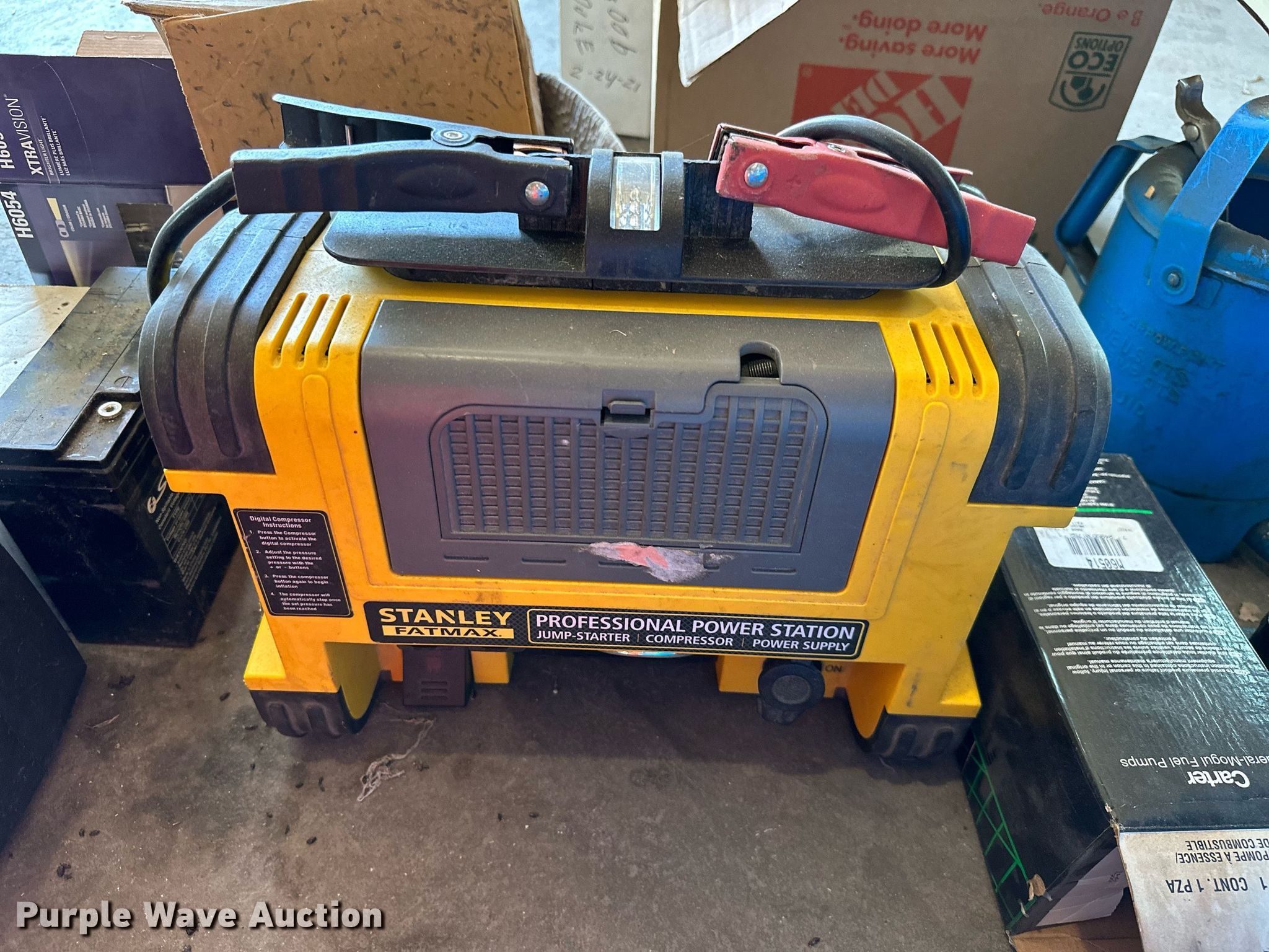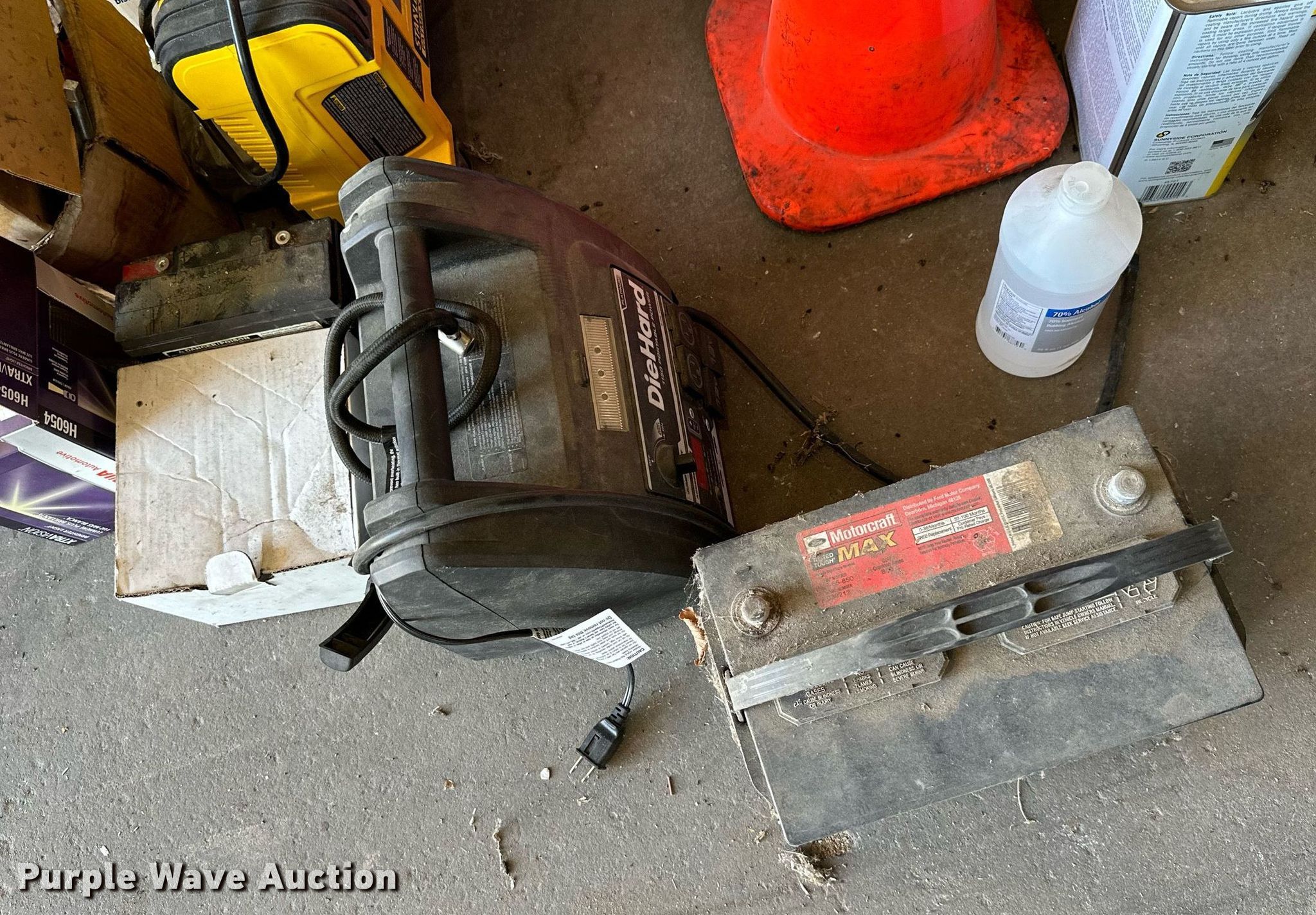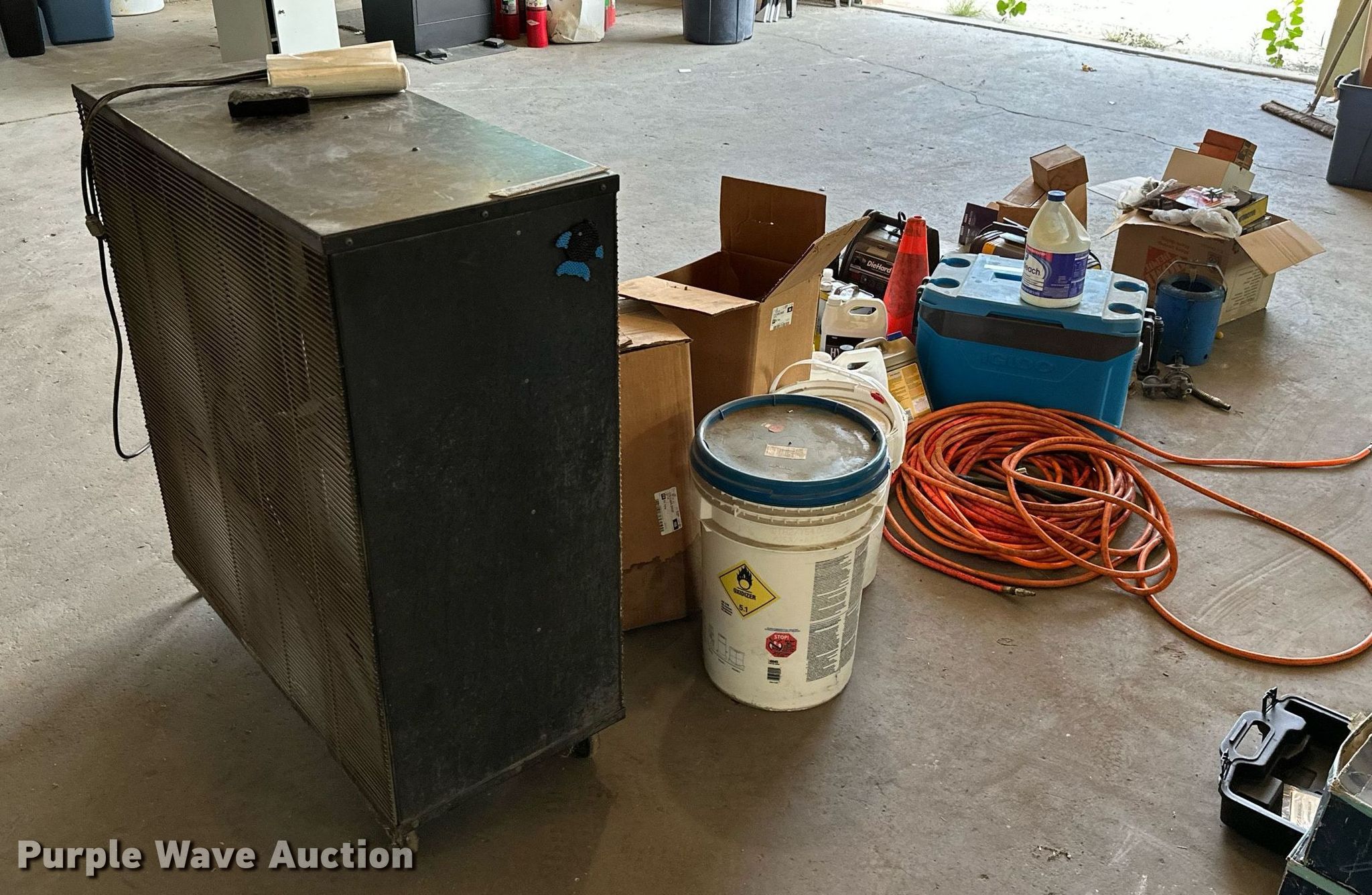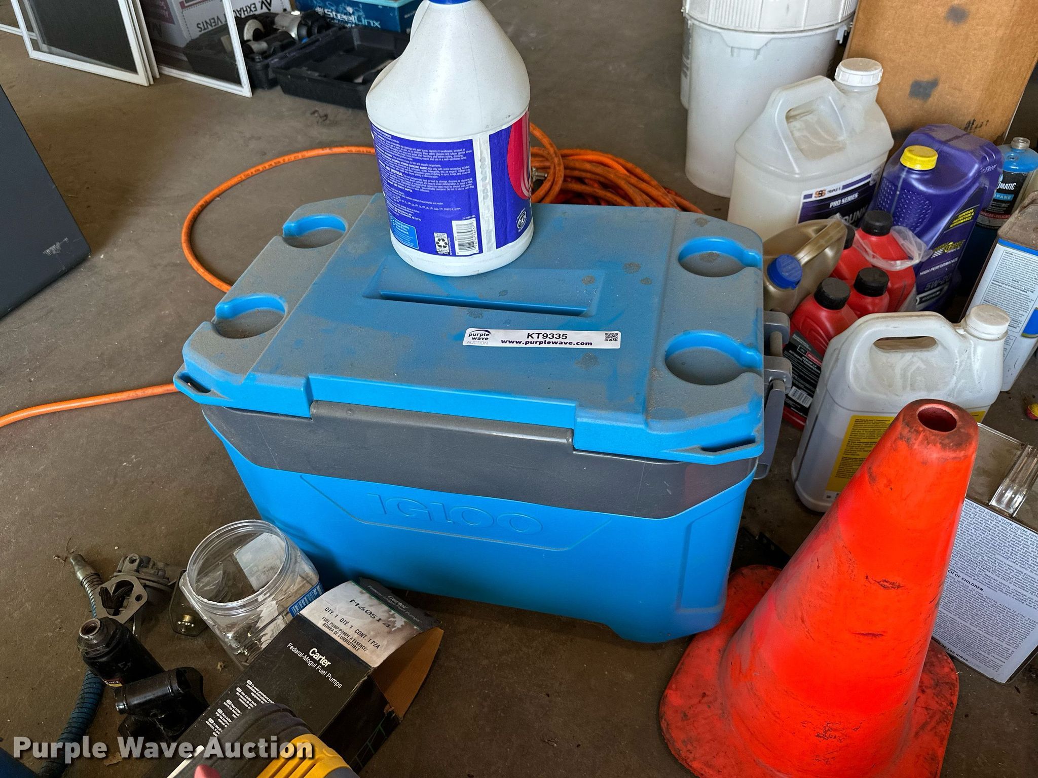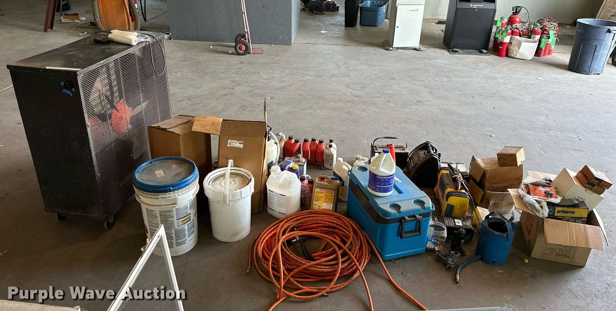 Purple Wave is selling a used Other Industrial or Business in Oklahoma. This item is a Tools with the following: Dayton fan, Vehicle parts, Stanley Fatmax power station, DieHard portable power, Motorcraft Max car battery, Fluids, Igloo ice chest and more
