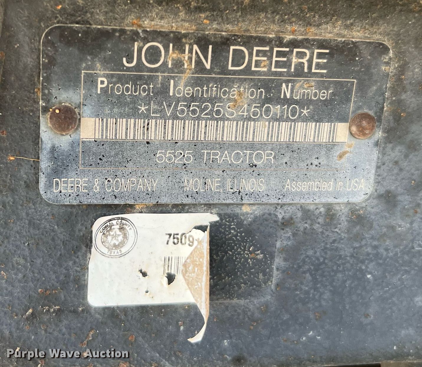 Purple Wave is selling a used Tractor in Texas. This item is a 2008 John Deere 5525 tractor with the following: Hours: 5,229 on meter, Serial: LV5525S450110