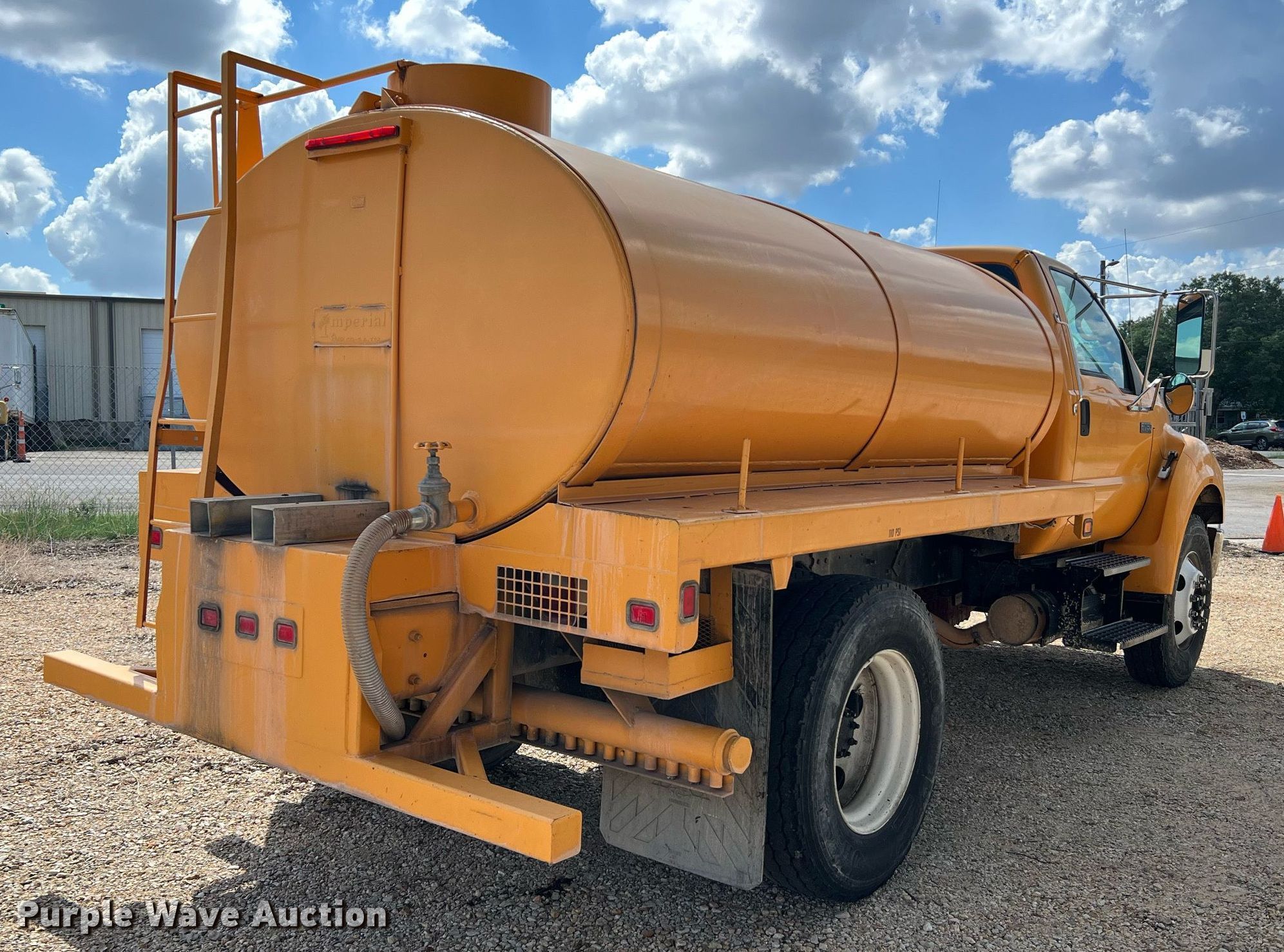 2008 Ford F750 water truck. Miles: 85,801 on odometer, VIN: 3FRXF75D28V630576, Unit #: 705. Engine Cummins, Displacement: 6.7L, Cylinders: 6, Fuel type: Diesel. Transmission Automatic. Chassis Axles: Single, Suspension: Spring, Brakes: Air, GVWR: 33,000 lbs. Interior AC, Heat, Cruise control. Features Bed / tank Imperial Tank Co., 10' L x 6' 8" W, Spray bar: Rear, Top fill, Rear drain: 2.5", Rear outlet: 3.5". Tires Size: 11R22.5. Notes A/C issues, does not blow cold. Texas title. Seller is a government entity who will be assigning and distributing the title. Please contact the seller for distribution questions. Comal County, TX. 195 David Jonas Drive. New Braunfels, TX 78132