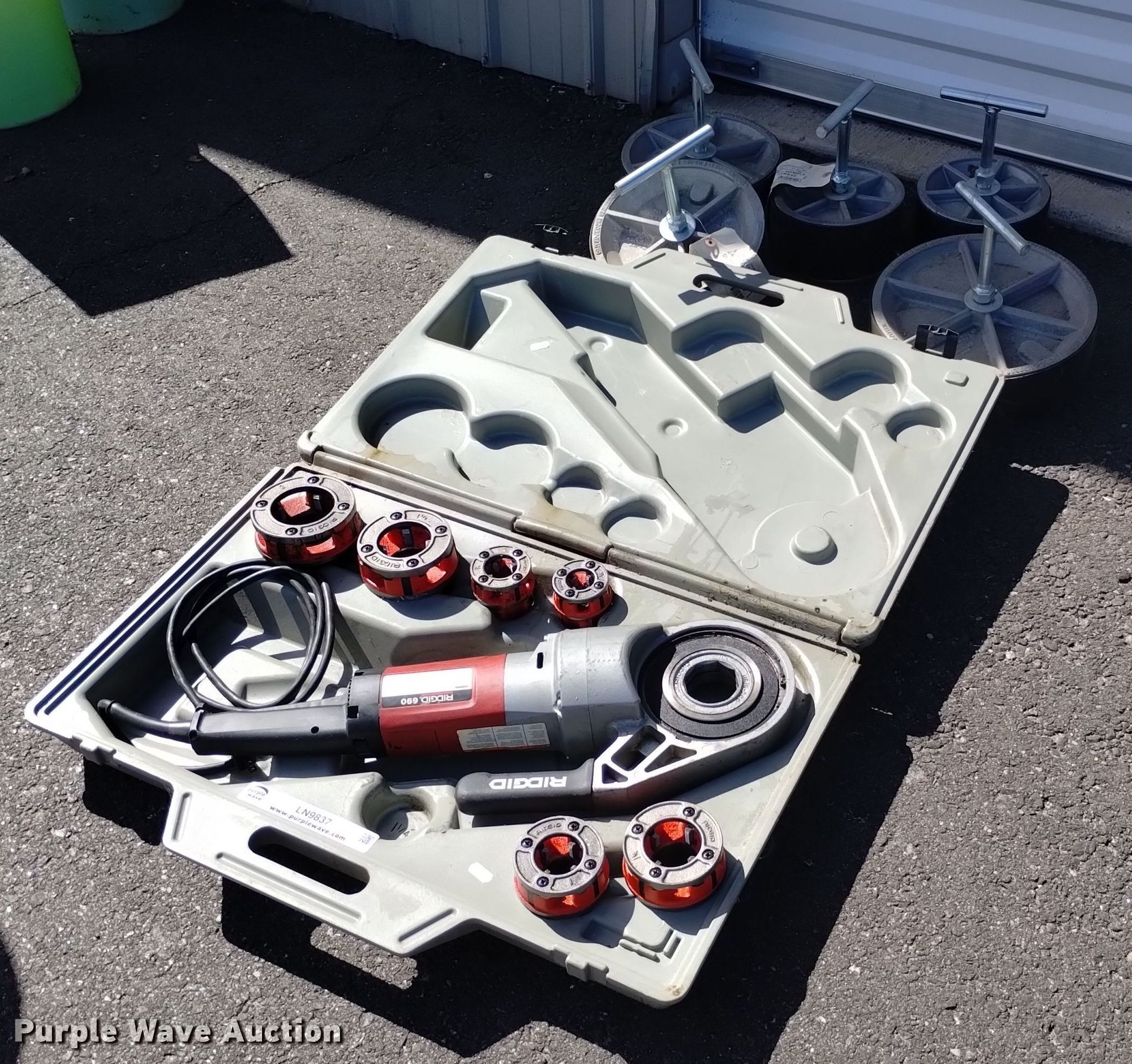 Purple Wave is selling a used Tools in Colorado. This item is a Tools with the following: Rigid 690 pipe threader, 1/2" - 2", Cherne pipe plugs, (2) 8", (2) 10", 12"