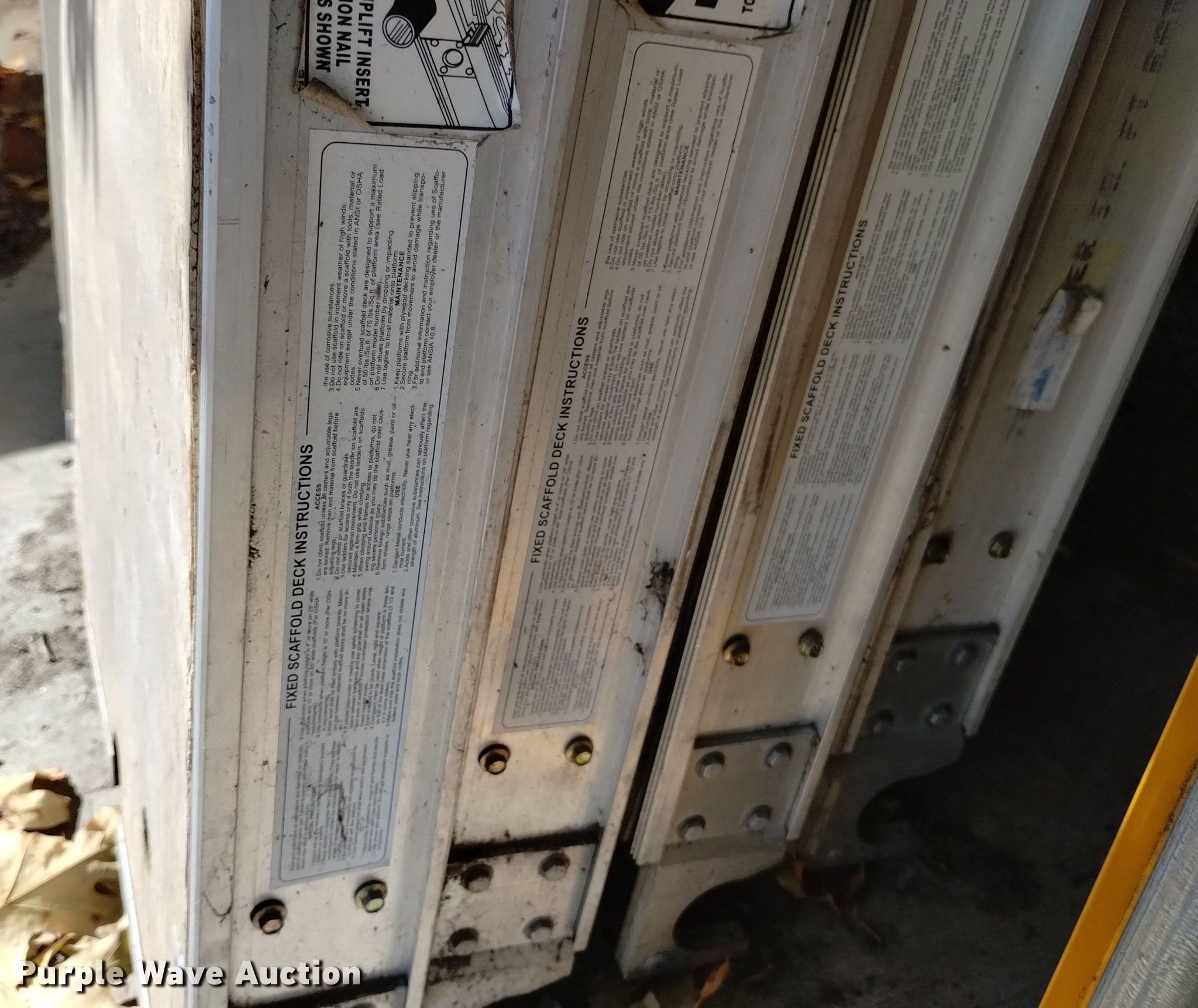 Purple Wave is selling a used Tools in Colorado. This item is a Haulotte Biljax scaffolding with the following: (9) 19"x 82" deck boards, (7) stages, Safety rail