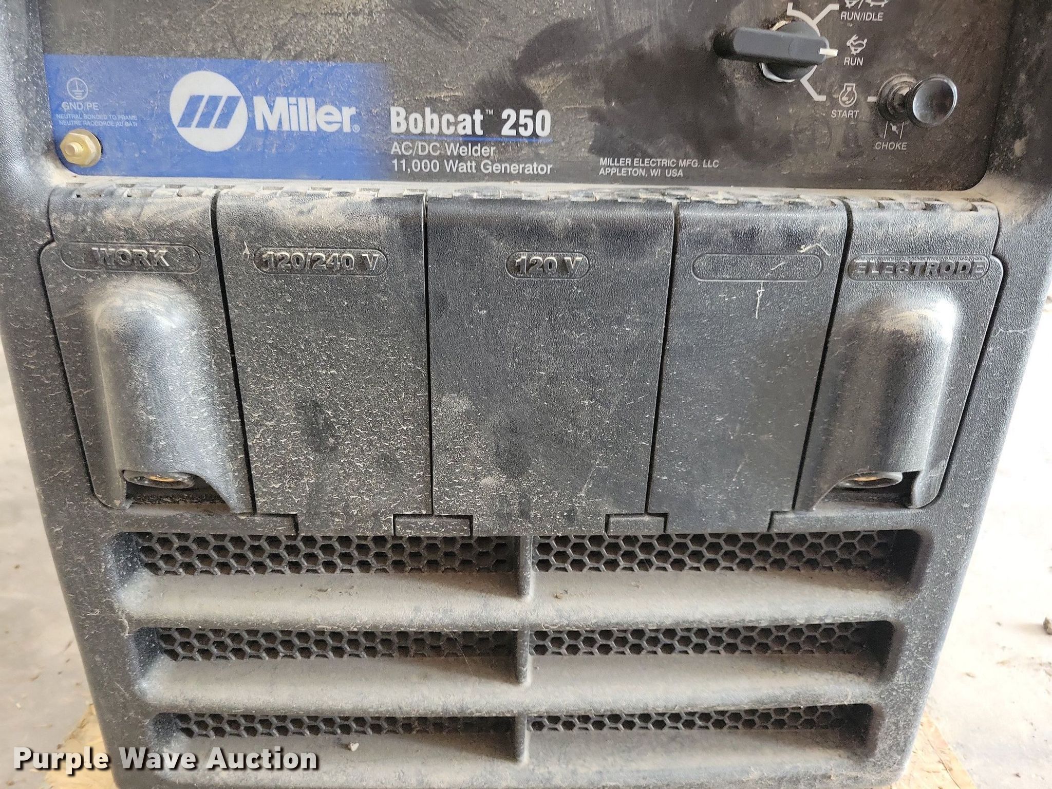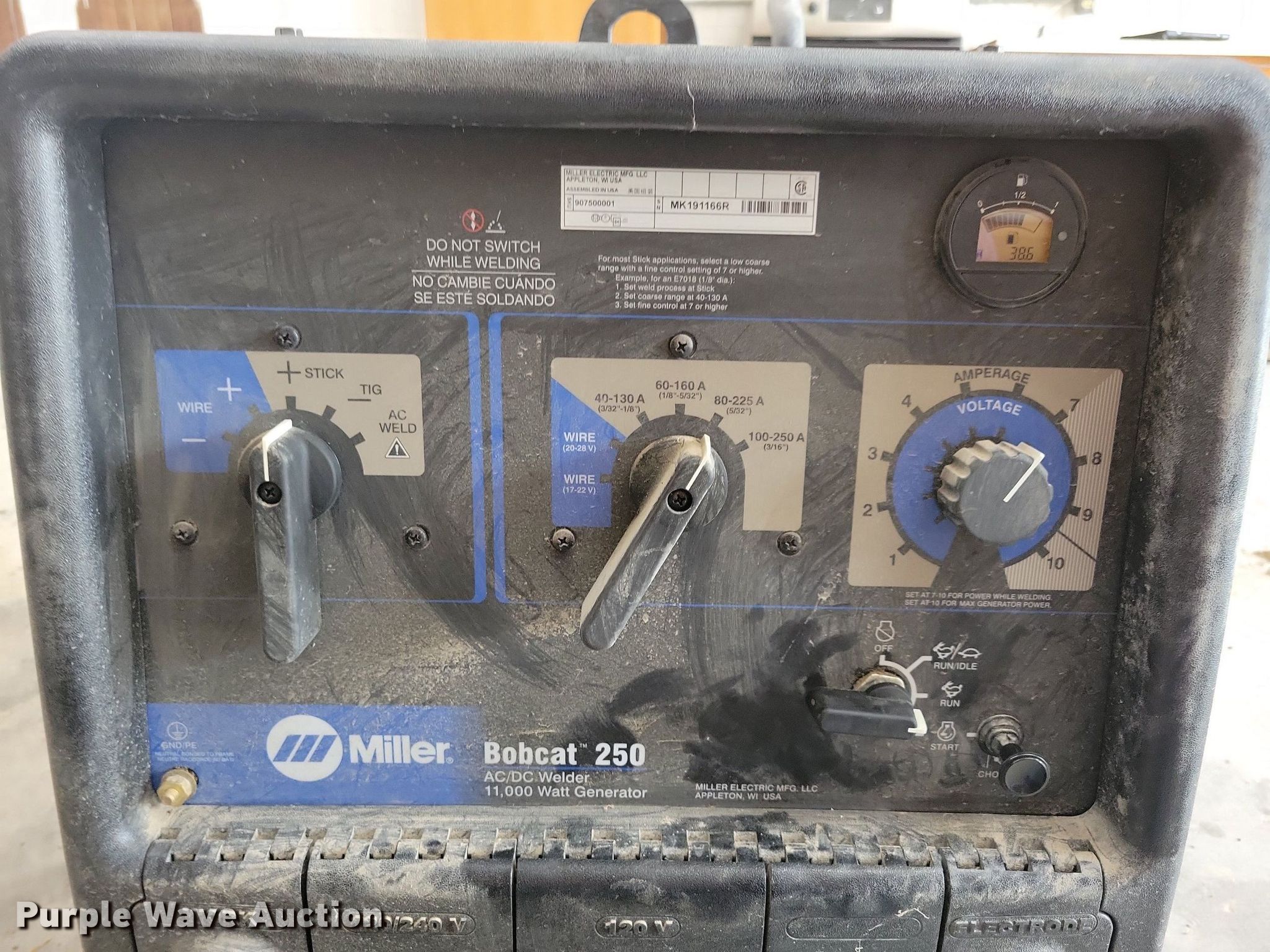 Purple Wave is selling a used Welder (Manual) in Iowa. This item is a 2019 Miller Bobcat 250 welder with the following: Hours: 38 on meter, Serial: MK191166R
