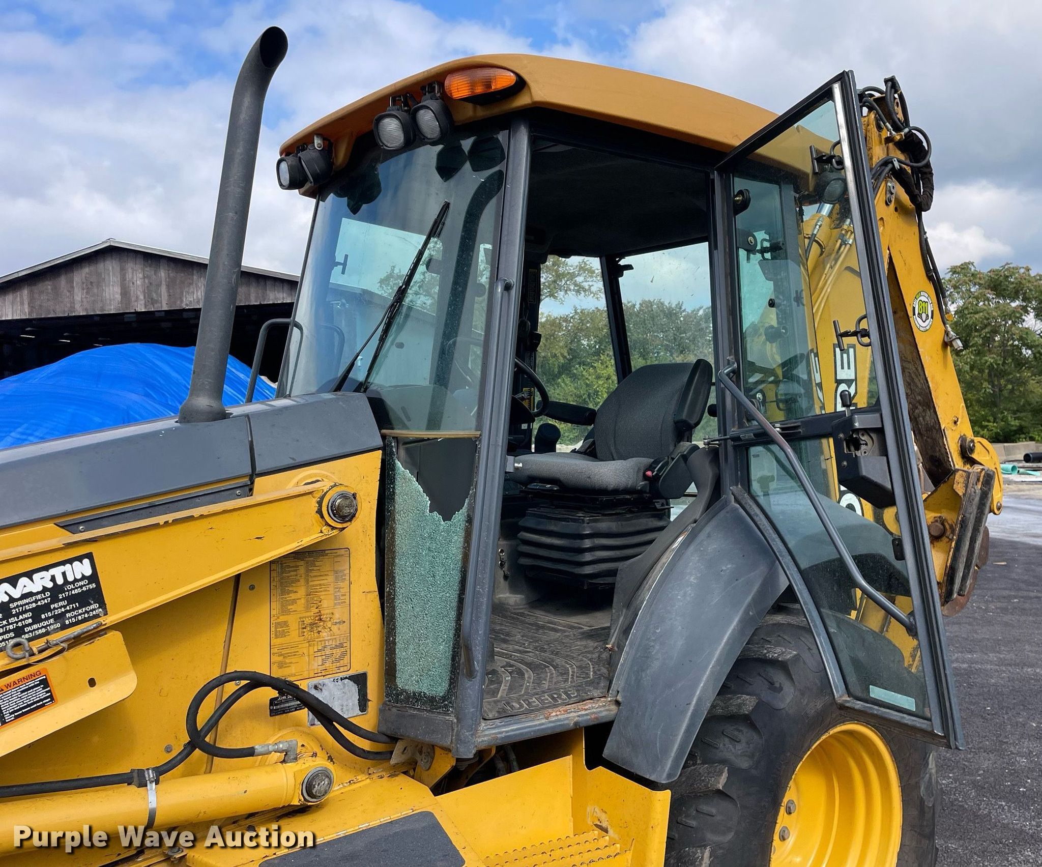 2006 John Deere 310G backhoe. Hours: 4,182 on meter, Serial: T0310GX955663. Engine Displacement: 4.5L, Cylinders: 4, Fuel type: Diesel. Transmission Shuttle shift, 4F - 4R. Chassis Four wheel drive. Operators station Enclosed cab, AC, Heat, Backhoe controls: Pilot control Foot control. Features Loader Bucket Four-in-one, Width: 86", Cutting edge: Bolt-on, Backhoe Quick coupler: Manual, Auxiliary hydraulics, Bucket Width: 24", Teeth: 5, Bucket Width: 36", Bucket Width: 12", Teeth: 3.. Tires Front: 12-16.5, Rear: 19.5-24. Village of Bartonville. Bartonville, IL 61607