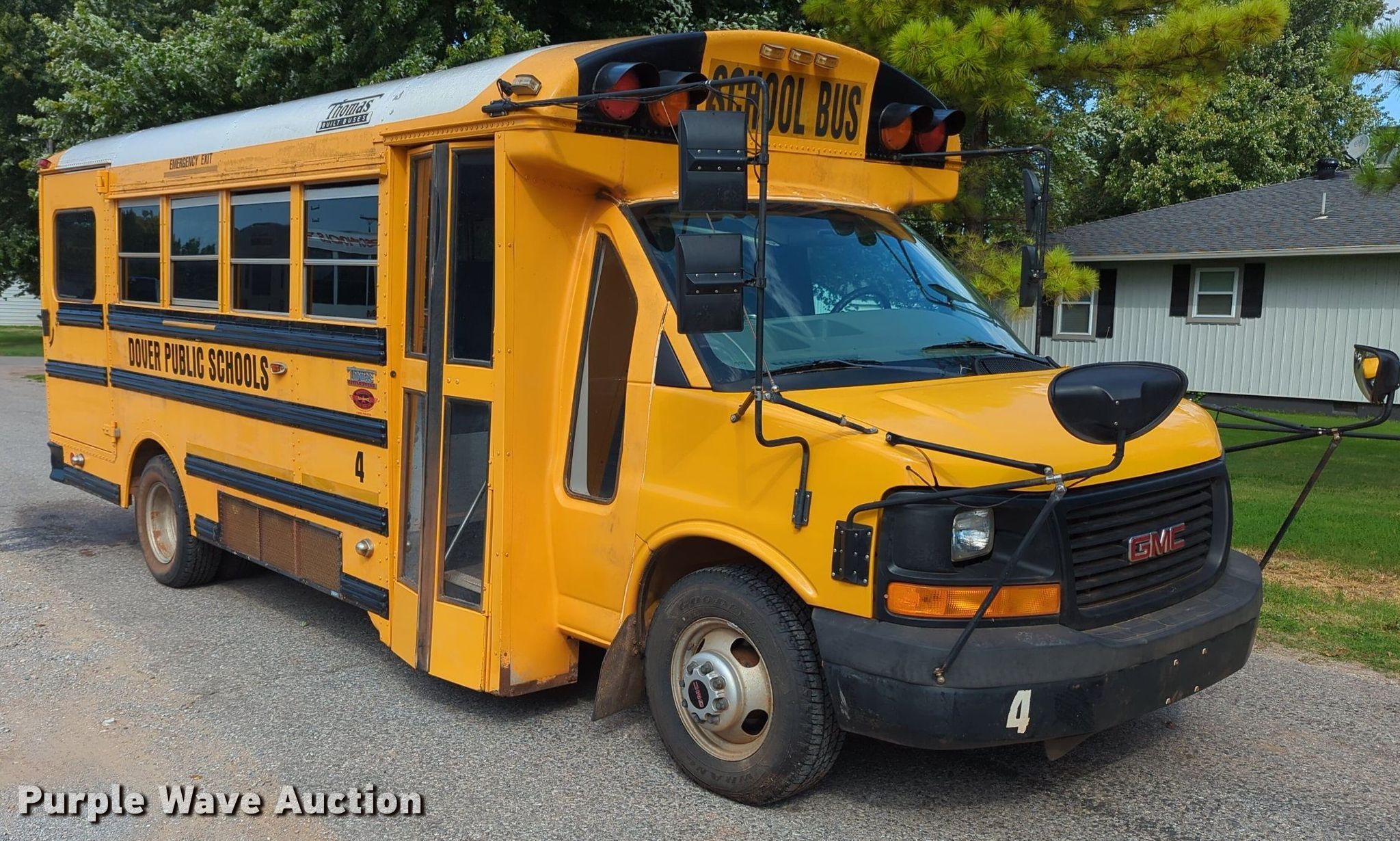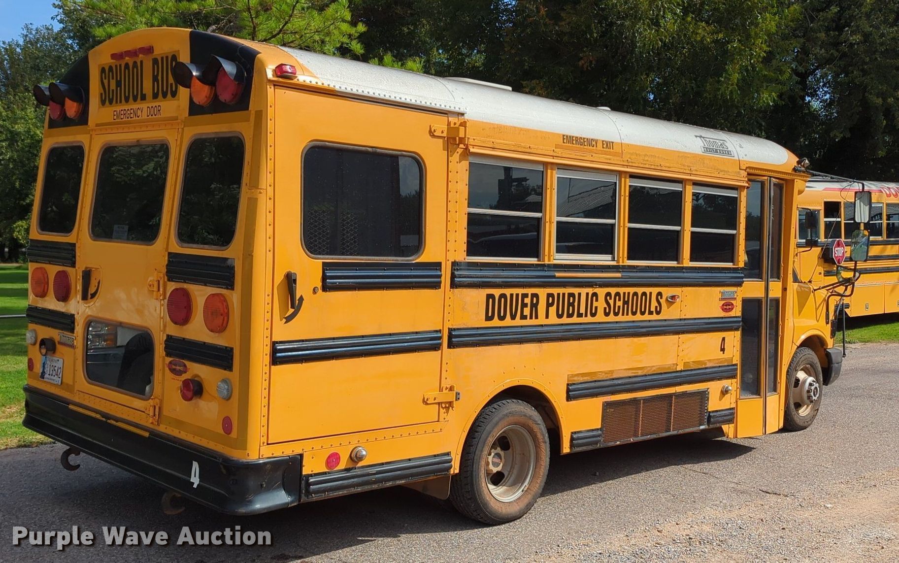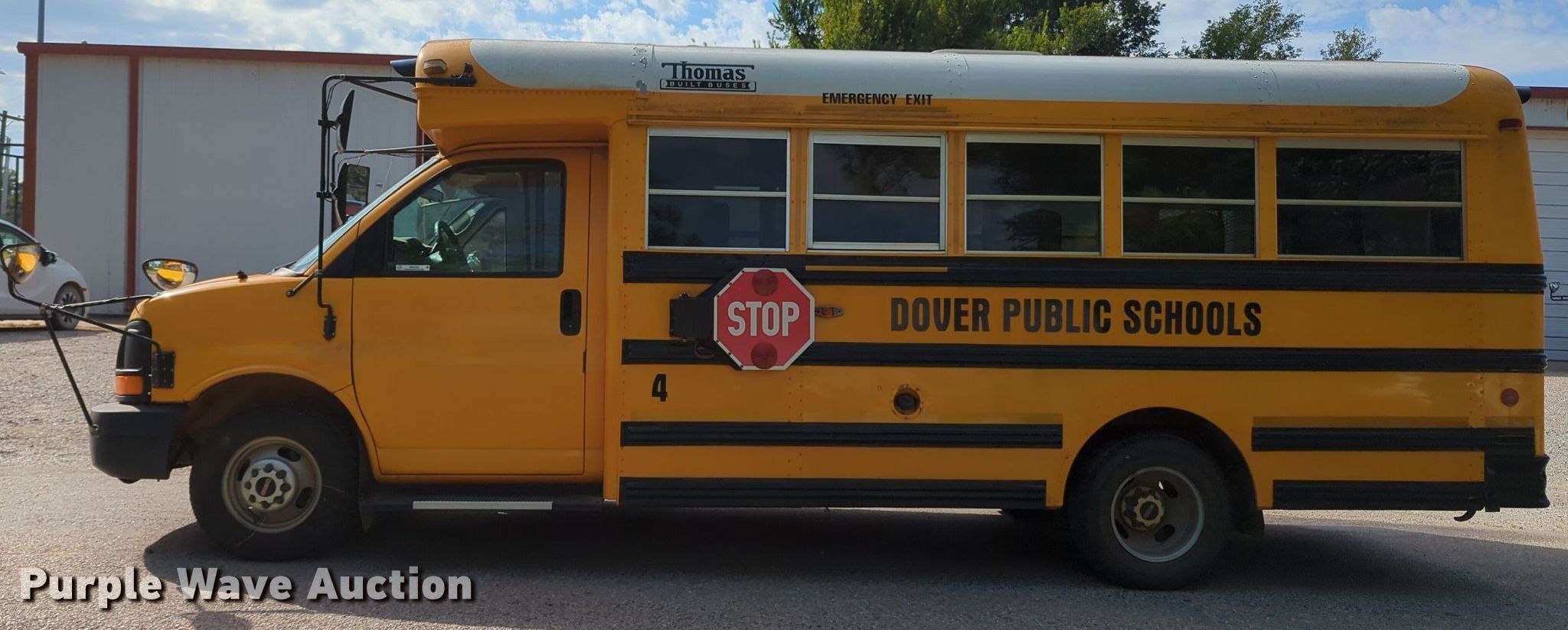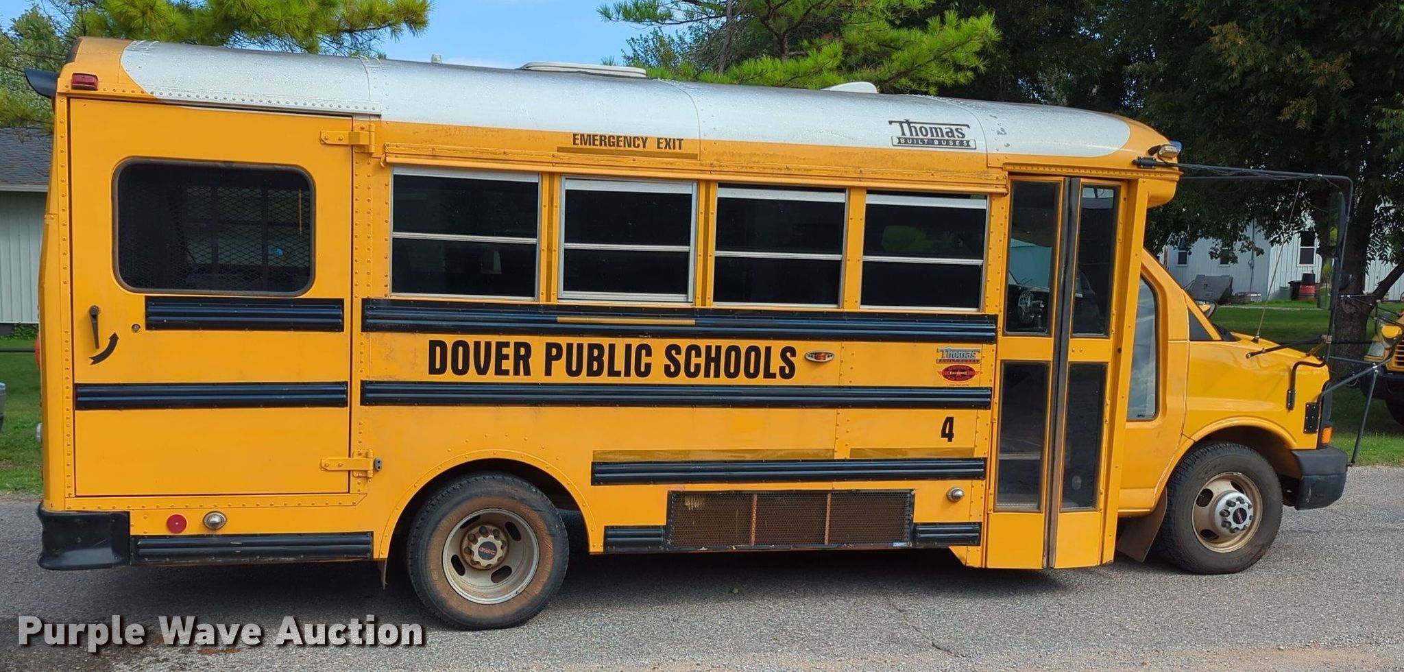 2005 Thomas Built shuttle bus. Miles: 90,248 on odometer, VIN: 1GDJG31U351252115. Engine Displacement: 6.0L, Cylinders: 8, Fuel type: Gas. Transmission Automatic. Chassis Axles: Single, Suspension: Spring, Brakes: Hydraulic. Interior AC, Heat, Heated mirrors, Adult seats: 7, Wheelchair lift. Tires Size: 225/75R16. Notes Dead battery. Oklahoma title. Title distribution may be delayed up to 14 days from verification of funds. Dover Public Schools. Dover, OK 73734