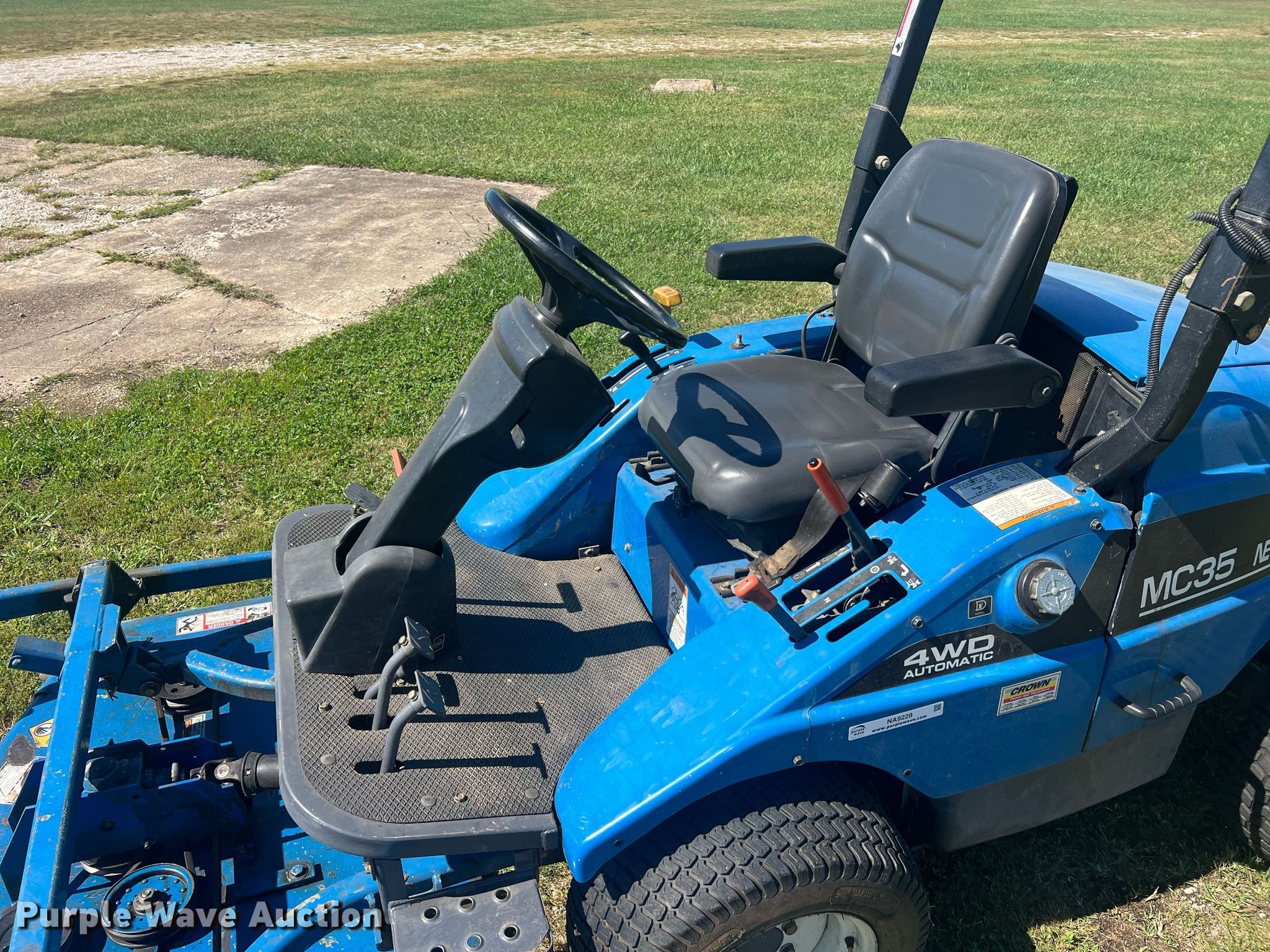 Purple Wave is selling a used Commercial Turf Mower in Missouri. This item is a New Holland MC35 lawn mower with the following: Hours: 1,628 on meter, Cutting width: 72", Serial: TF00157