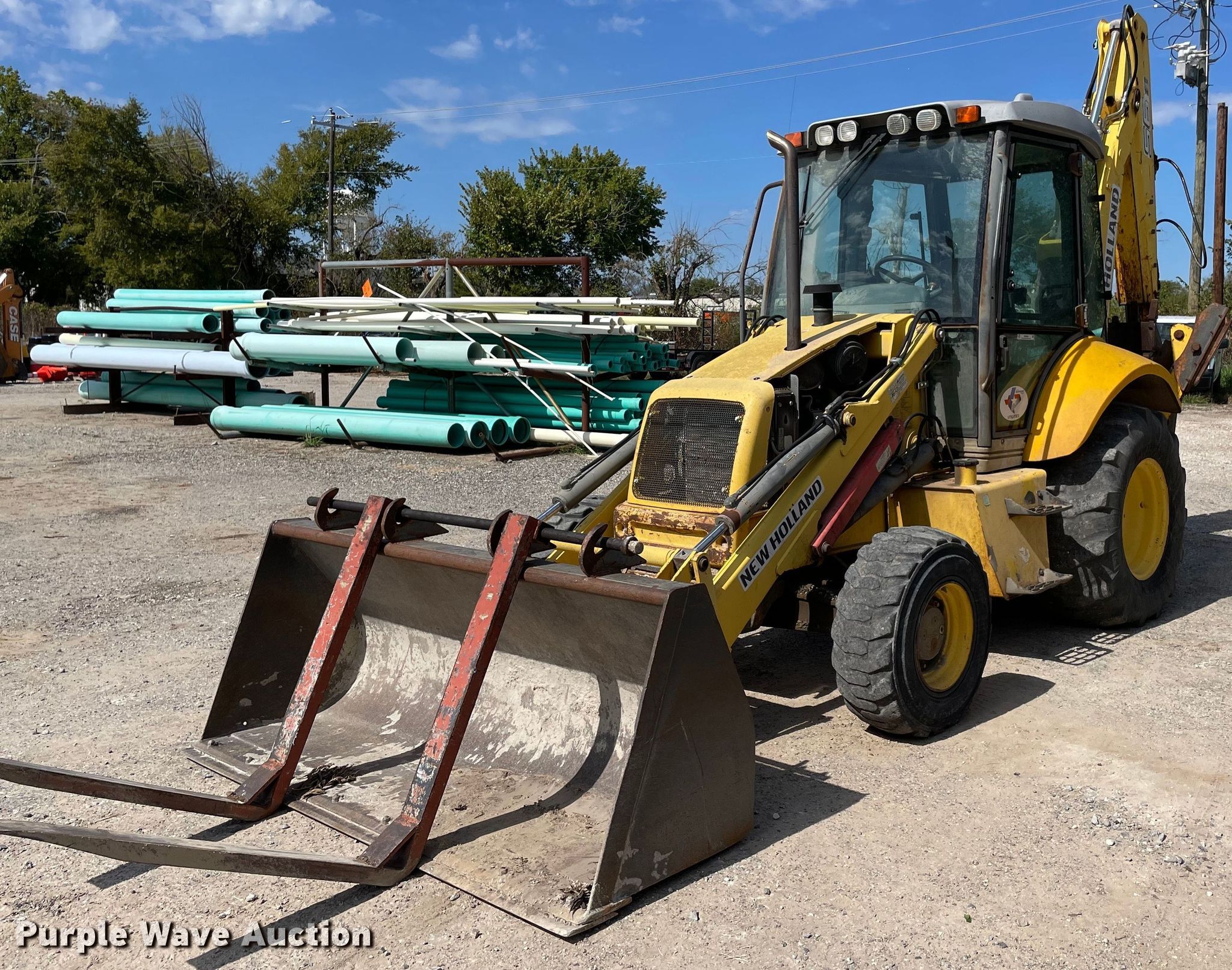 Purple Wave is selling a used Tractor Loader Backhoe in Texas. This item is a 2006 New Holland B95 backhoe with the following: Hours: 5,294 on meter, Serial: 31059428